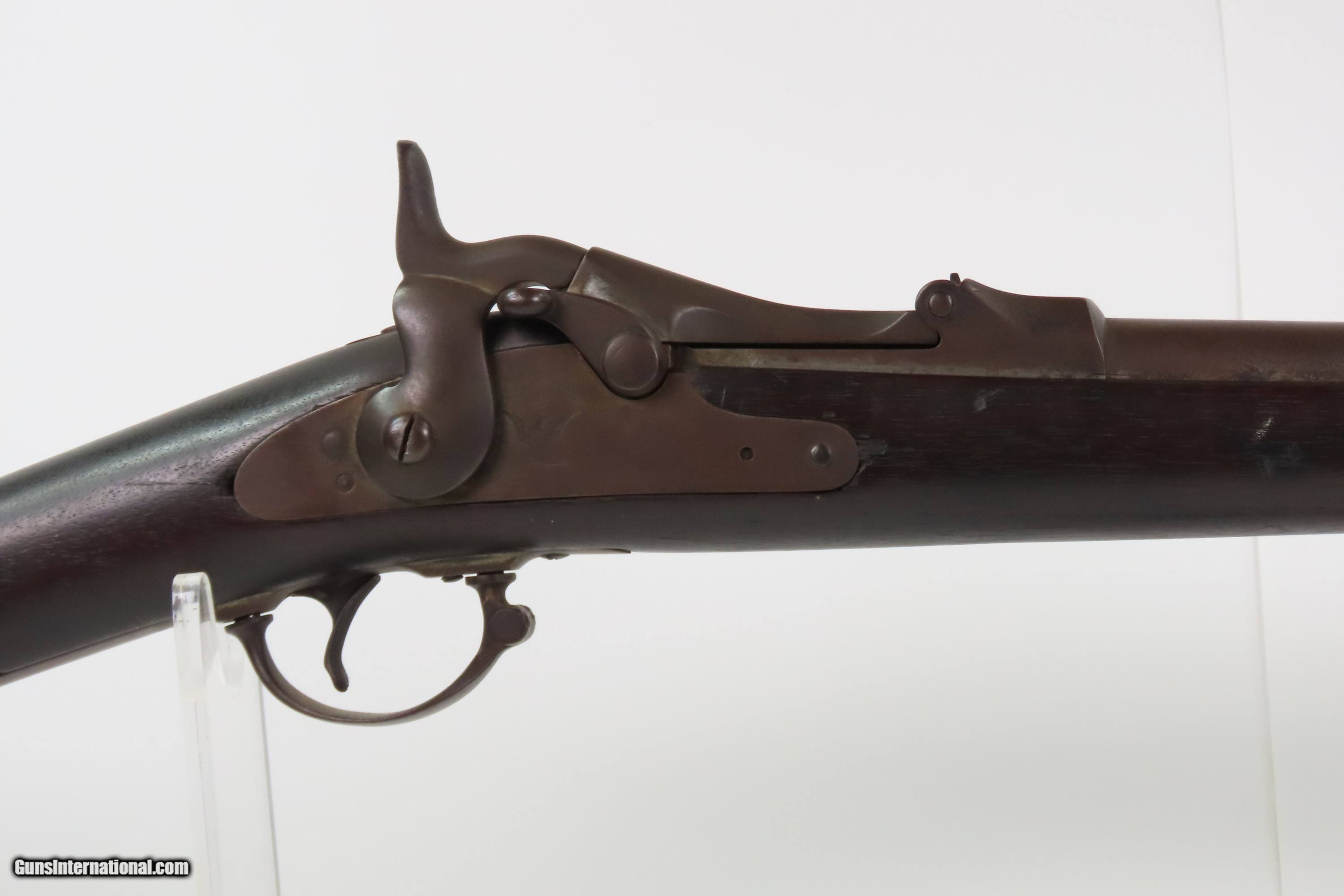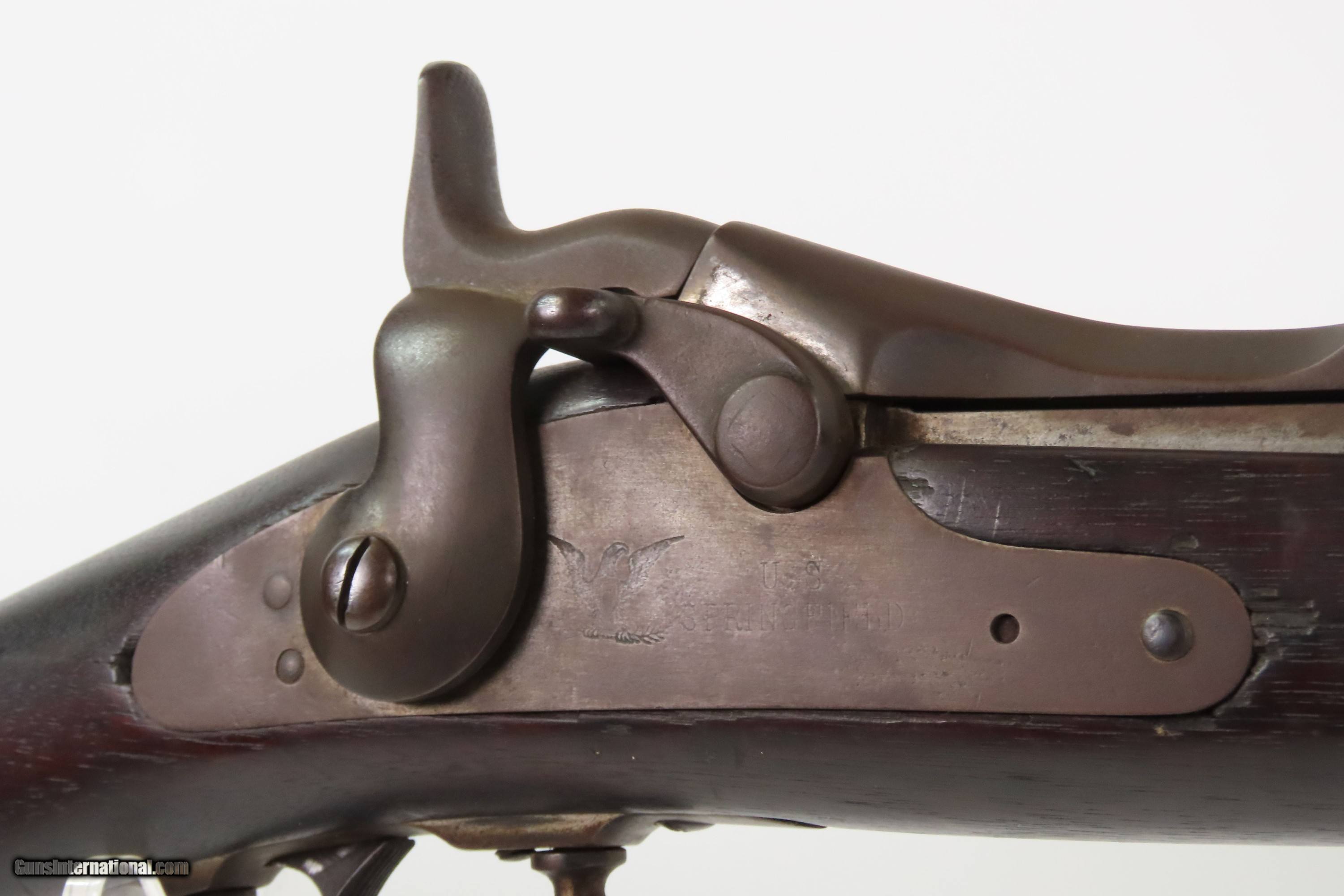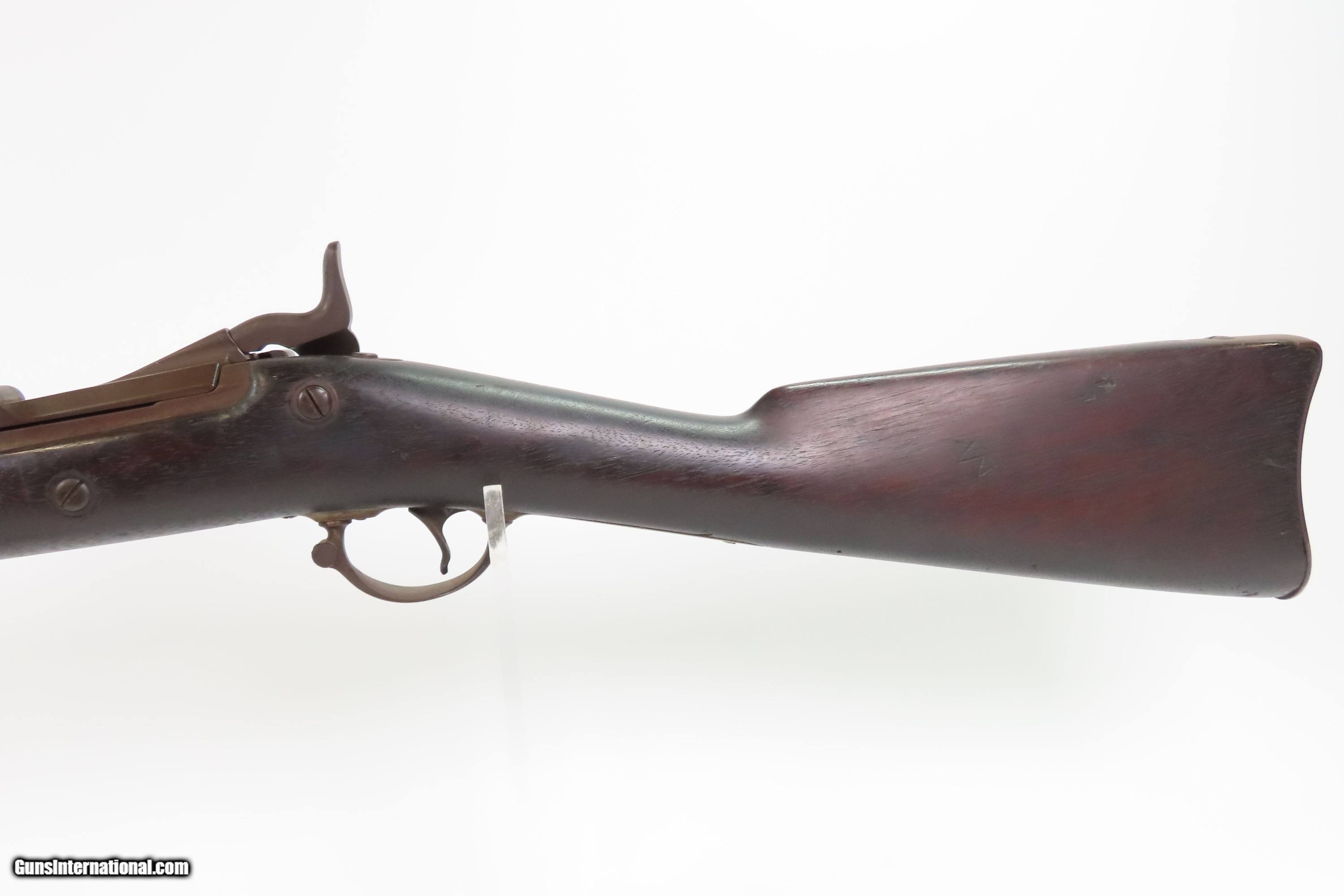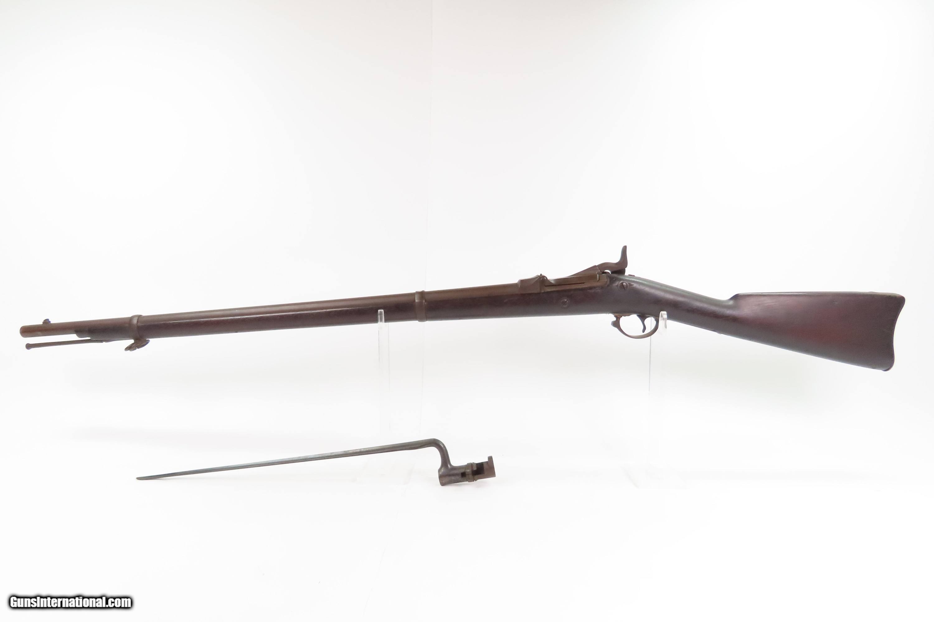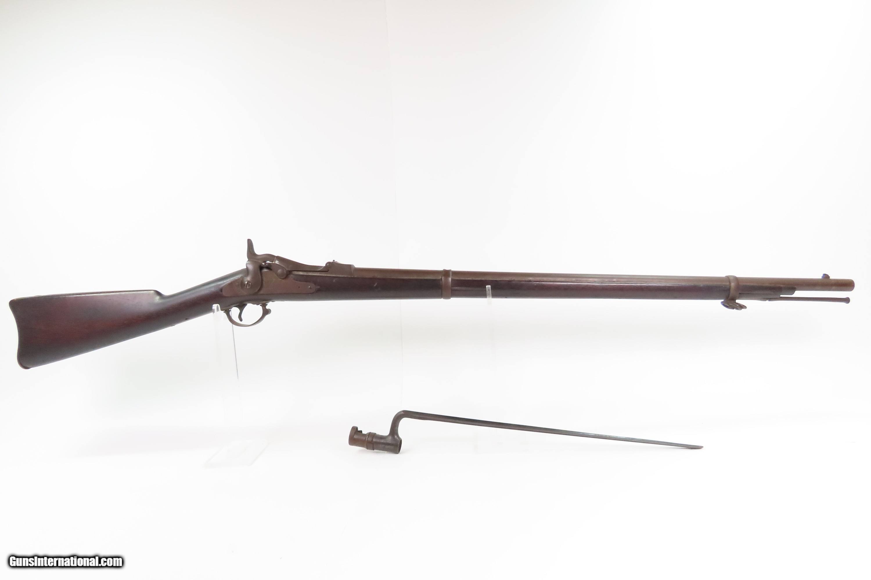 Description: Antique SPRINGFIELD ARMORY M1884 “Trapdoor” .45-70 GOVT CADET Rifle BAYONET INDIAN WARS Era WOUNDED KNEE Timeline Here Ancestry Guns presents an antique U.S. Springfield Model 1884 Trapdoor Cadet Rifle, made by the Springfield Armory. Manufactured circa August of 1890 nearing the end of the Indian Wars, this is a cadet rifle version of the U.S. Springfield Model 1884. The 1884 Cadet Model Trapdoor Rifle is identical to the Standard 1884 Infantry Rifle, from the butt plate up to the rear or lower barrel band. The obvious difference is the overall length of the barrel, and thus the rifle. The standard Infantry barrel length was about 31-5/8" whereas the barrel on a Cadet Rifle was just about 2 inches shorter coming in at about 29-5/8". After the Civil War, the War Department wanted a breech-loading rifle. To be specific, it wanted a breech-loading rifle that would chamber a self-primed, metallic cartridge. Amazingly, despite the adoption of the ill-fated Model 1882 Chaffee-Reese Bolt Action Magazine Rifle, new models of trapdoor rifles continued to be produced and used all the way through the mid-1890s, until finally, the Krag-Jorgensen was adopted. The U.S. continued to see unrest and conflict with the displaced Native Americans during this time, including the Wounded Knee Massacre on December 29th, 1890. Trapdoors continued to see use all the way through the Spanish American War. The overall condition is good. Strong action. Mixed gray-brown patinas. The bore is semi-bright with serviceable rifling. Solid stock, has been refinished and contains a few stable chips and cracks. A repaired chip is found near the receiver tang. Discernable markings. The forend cap is missing. Absent rear sight. The bayonet is good. The top of the barrel is drilled and tapped. Own the original! This is a legitimate antique and not a reproduction. Barrel is 29-5/8 inches. Caliber: .45-70 GOVT Overall condition as seen in photos. Very Fast. Very Safe. FREE SHIPPING WORLDWIDE. Delivered directly to your door by express mail! Guaranteed AUTHENTIC & Includes CERTIFICATE OF AUTHENTICITY. $1900 #259026 Antique: Yes Price: $1,900.00 Buy Now Pay with