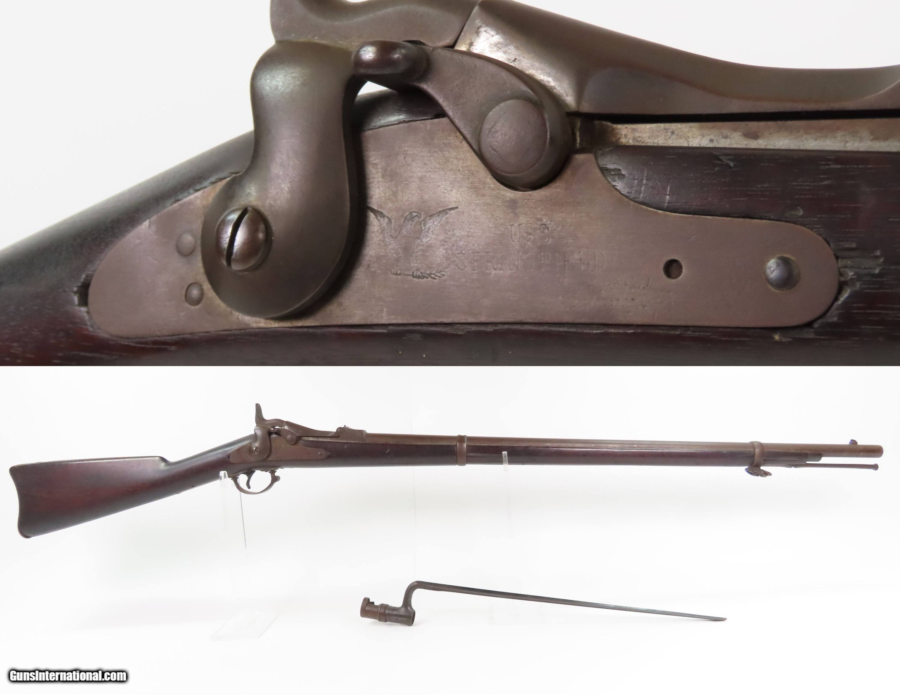Description: Antique SPRINGFIELD ARMORY M1884 “Trapdoor” .45-70 GOVT CADET Rifle BAYONET INDIAN WARS Era WOUNDED KNEE Timeline Here Ancestry Guns presents an antique U.S. Springfield Model 1884 Trapdoor Cadet Rifle, made by the Springfield Armory. Manufactured circa August of 1890 nearing the end of the Indian Wars, this is a cadet rifle version of the U.S. Springfield Model 1884. The 1884 Cadet Model Trapdoor Rifle is identical to the Standard 1884 Infantry Rifle, from the butt plate up to the rear or lower barrel band. The obvious difference is the overall length of the barrel, and thus the rifle. The standard Infantry barrel length was about 31-5/8" whereas the barrel on a Cadet Rifle was just about 2 inches shorter coming in at about 29-5/8". After the Civil War, the War Department wanted a breech-loading rifle. To be specific, it wanted a breech-loading rifle that would chamber a self-primed, metallic cartridge. Amazingly, despite the adoption of the ill-fated Model 1882 Chaffee-Reese Bolt Action Magazine Rifle, new models of trapdoor rifles continued to be produced and used all the way through the mid-1890s, until finally, the Krag-Jorgensen was adopted. The U.S. continued to see unrest and conflict with the displaced Native Americans during this time, including the Wounded Knee Massacre on December 29th, 1890. Trapdoors continued to see use all the way through the Spanish American War. The overall condition is good. Strong action. Mixed gray-brown patinas. The bore is semi-bright with serviceable rifling. Solid stock, has been refinished and contains a few stable chips and cracks. A repaired chip is found near the receiver tang. Discernable markings. The forend cap is missing. Absent rear sight. The bayonet is good. The top of the barrel is drilled and tapped. Own the original! This is a legitimate antique and not a reproduction. Barrel is 29-5/8 inches. Caliber: .45-70 GOVT Overall condition as seen in photos. Very Fast. Very Safe. FREE SHIPPING WORLDWIDE. Delivered directly to your door by express mail! Guaranteed AUTHENTIC & Includes CERTIFICATE OF AUTHENTICITY. $1900 #259026 Antique: Yes Price: $1,900.00 Buy Now Pay with