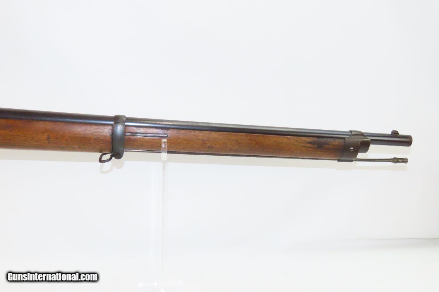Description: Antique SWISS Model 1871 VETTERLI STUTZER Bolt Action 11mm SNIPER Carbine High 12 Round Capacity with STECHER Double Set Triggers Here we present an antique Swiss Vetterli Model 1871 Bolt Action Military Sniper Carbine, made circa 1871/72 at the Cantonal Arsenal in Vaud, Switzerland. This rifle is the the Stutzer (carbine) variant of the 1871 rifle that was used to equip the Scharfschützen (sniper) companies of the army. The Stutzer carbines were equipped with a sensitive Stecher double set trigger action allowing a very low trigger pressure to fire the rifle and featured a shorter 30 inch barrel. The Vetterli rifles were a series of Swiss army service rifles in use from 1869 to 1889, when they were replaced with the Schmidt-Rubin rifles. The Vetterli rifles combined the American Winchester Model 1866's tubular magazine with a regular bolt featuring for the first time two opposed rear locking lugs. This type of bolt was a major improvement over the simpler Dreyse and Chassepot bolt actions. The Vetterli was also the first repeating bolt-action rifle to feature a self-cocking action and a small caliber bore. Due to the Swiss Federal Council's early 1866 decision to equip the army with a breechloading repeating rifle, the Vetterli rifles were, at the time of their introduction, the most advanced military rifles in Europe. Swiss inventor and gun maker Johann-Friedrich Vetterli designed this rifle in the late 1860s. The years leading up to the 20th Century were characterized by rapidly progressing small arms designs, especially those for bolt action rifles, but for a short period of time, the Vetterli could claim the title for most advanced. Modified Vetterlis were also used by the Italian Army. This Swiss military rifle held 12 rounds of 11mm centerfire cartridges, giving it a lot of firepower. The overall condition is very good. The action is strong with a smooth bolt. The bore is bright. The stock is solid with nice large checkering on the forearm. A very neat and early bolt action rifle! Own the original! This is a legitimate antique and not a reproduction. Barrel is 30 inches. Caliber: 11mm Centerfire Overall condition as seen in photos. Very Fast. Very Safe. FREE SHIPPING WORLDWIDE. Delivered directly to your door by express mail! Guaranteed AUTHENTIC & Includes CERTIFICATE OF AUTHENTICITY. ancestryguns $1325 #201739 SOLD Antique: Yes |