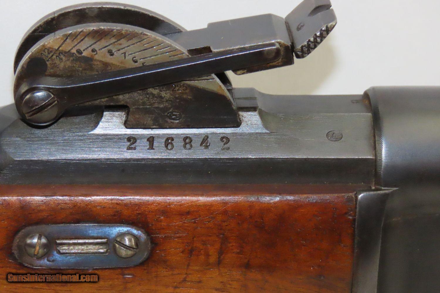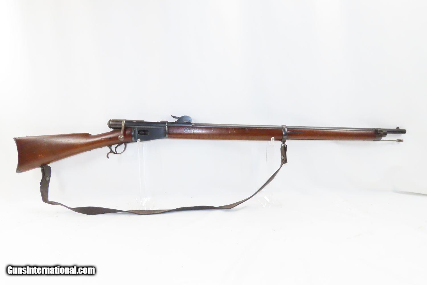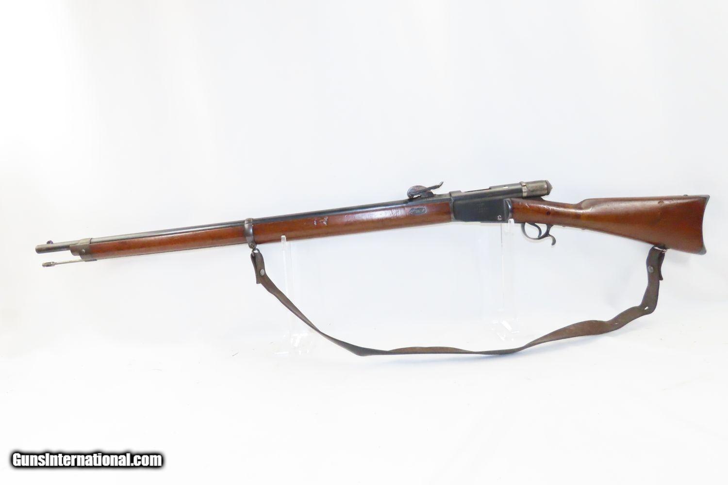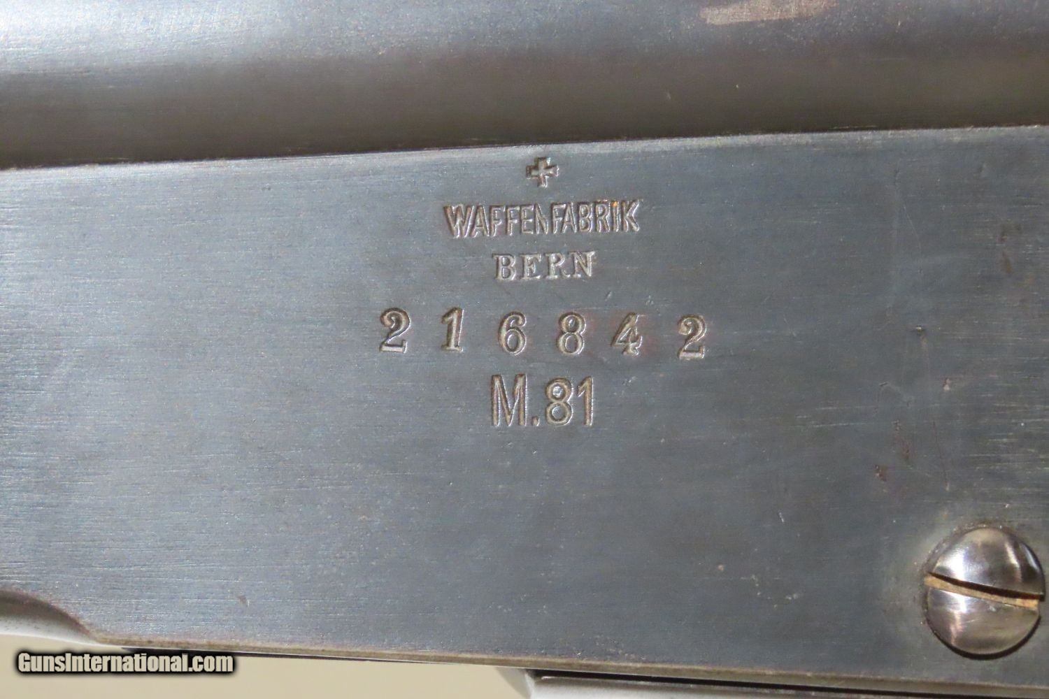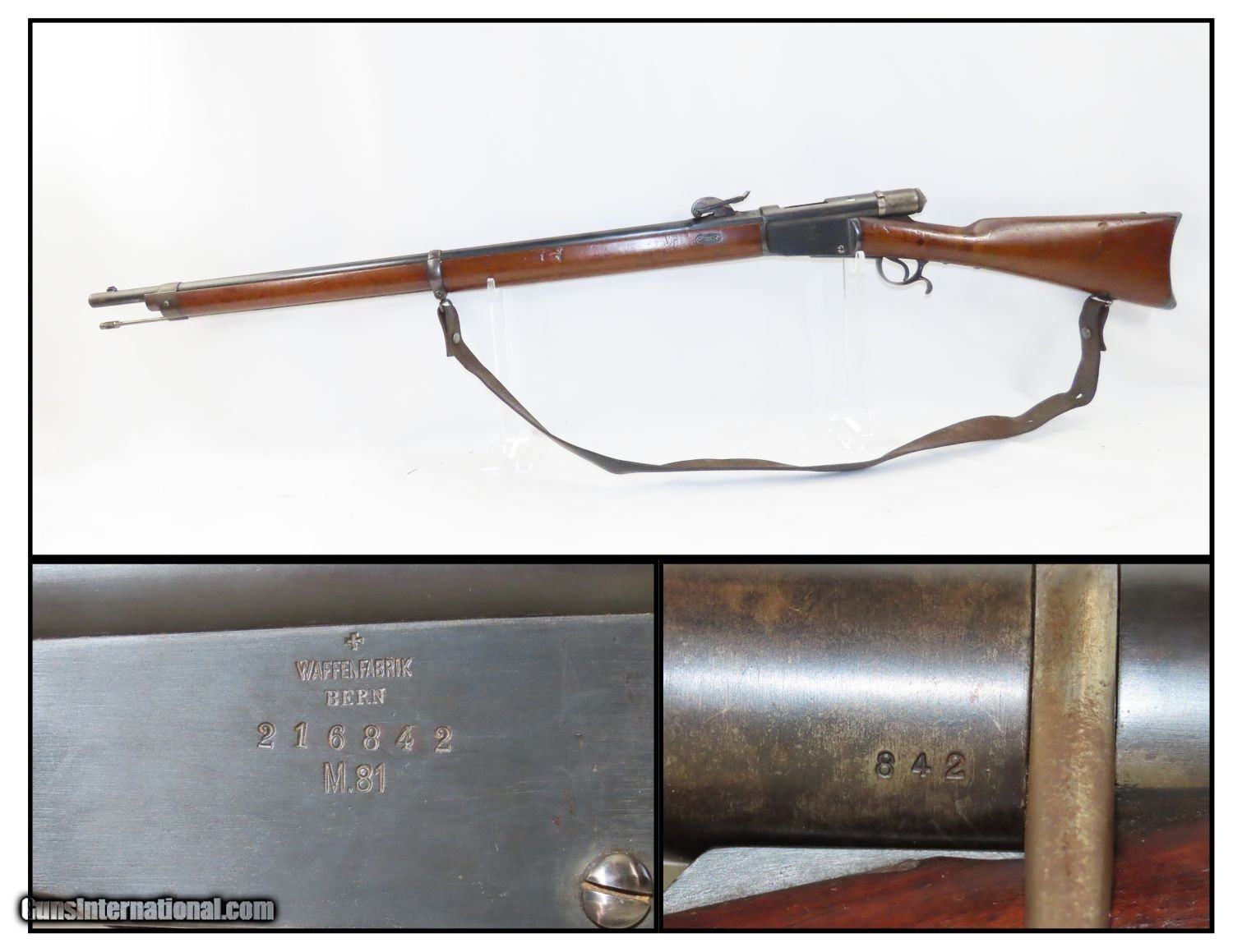 Description: Antique SWISS WAFFENFABRIK BERN Model 1881 VETTERLI 10.4mm MILITARY Rifle 12 Round Capacity Bolt Action Military Rifle Here we present an antique Swiss Waffenfabrik Bern Vetterli Model 1881 Bolt Action Military Rifle made circa 1881 in Bern, Switzerland. To accelerate the sluggish production of the Vetterli rifles, the federal authorities built a new arms factory in Bern, the Eidgenössische Waffenfabrik (W+F), in 1875. That factory produced the 1878 and 1881 variant of the Vetterli rifle. It featured around 25 improvements over the Model 1871 that included a new bayonet and lug, improved sights and a finger hook on the trigger guard. The total production of the Model 1878 and the 1881 totaled 125,000. This rifle is chambered in the .41 Swiss (officially the 10.4x38mm R Swiss Vetterli M69/81) and is a .415 inch (10.54mm) Swiss military rimfire rifle cartridge. The Vetterli rifles were a series of Swiss army service rifles in use from 1869 to 1889, when they were replaced with the Schmidt-Rubin rifles. The Vetterli rifles combined the American Winchester Model 1866's tubular magazine with a regular bolt featuring for the first time two opposed rear locking lugs. This type of bolt was a major improvement over the simpler Dreyse and Chassepot bolt actions. The Vetterli was also the first repeating bolt-action rifle to feature a self-cocking action and a small caliber bore. Due to the Swiss Federal Council's early 1866 decision to equip the army with a breechloading repeating rifle, the Vetterli rifles were, at the time of their introduction, the most advanced military rifles in Europe. Swiss inventor and gun maker Johann-Friedrich Vetterli designed this rifle in the late 1860s. The years leading up to the 20th Century were characterized by rapidly progressing small arms designs, especially those for bolt action rifles, but for a short period of time, the Vetterli could claim the title for most advanced. Modified Vetterlis were also used by the Italian Army. This Swiss military rifle held 12 rounds of 10.4mm Rimfire cartridges, giving it a lot of firepower. The overall condition is fine. Original finish. Excellent action. Bright bore throughout. The stock is solid all around with less than an expected amount of wear. The numbers match. The leather sling is in good shape. Own the original! This is a legitimate antique and not a reproduction. Barrel is 32-1/2 inches. Caliber: 10.4mm Rimfire (.41 Swiss) Overall condition as seen in photos. Very Fast. Very Safe. FREE SHIPPING WORLDWIDE. Delivered directly to your door by express mail! Guaranteed AUTHENTIC & Includes CERTIFICATE OF AUTHENTICITY. ancestryguns $1615 #210498 SOLD Antique: Yes |