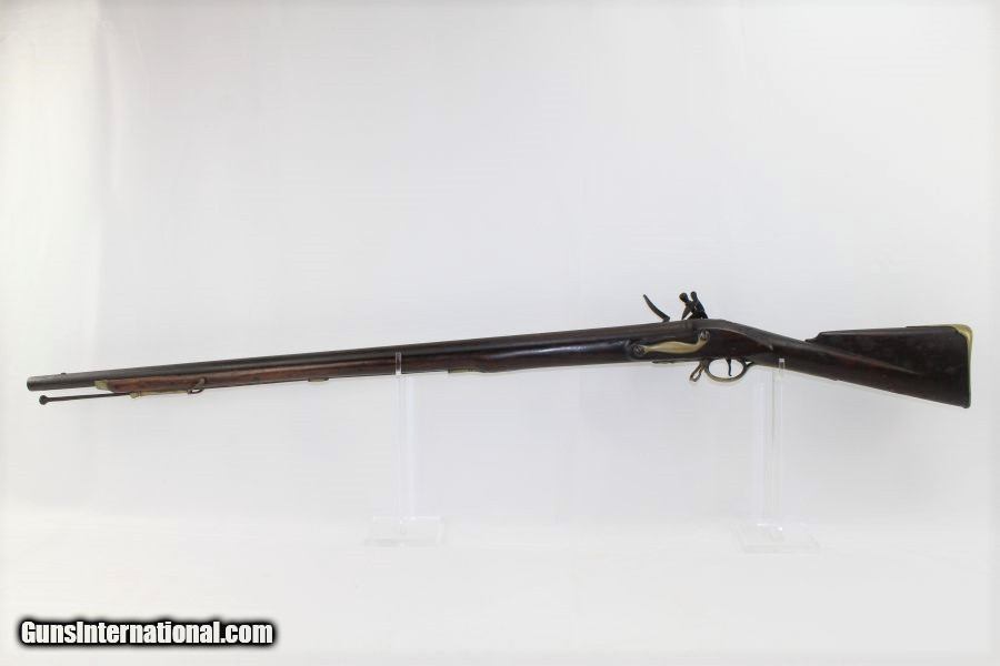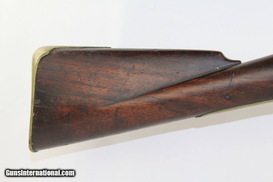 Description: BLAIR & SUTHERLAND Marked BROWN BESS Flint MUSKET Napoleonic War Period British Pattern 1793 Here we present an antique Brown Bess Pattern 1793 Flintlock Musket by Blair & Sutherland, made in England circa the late-18th Century. The Brown Bess was a British musket that was in use from the 1720s to the mid-19th Century and is perhaps most notable to Americans as the musket the British used during the Revolutionary War. This pattern of Brown Bess was the same that fought Napoleon Bonaparte in numerous iconic battles, as well as the United States and their American Indian Allies during the War of 1812. This pattern may also correctly be called the “India Pattern” since the Honorable East India Company was the entity responsible for this update to the gun that had been around since 1722. When war with France loomed on the horizon, the British Board of Ordnance diverted these muskets from the EIC contract to supply the war effort. The success of this model can be gauged by the fact that between 1795 and 1815, nearly 3,000,000 gun were produced. Although the Birmingham gun trade was responsible for the majority of the production, the London gun trade played a part, through gun makers such as Ezekial Baker, William Parker, Thomas Reynolds, and Durs Egg. According to the London proof-house records, they and others in London were responsible for producing 845,477 muskets. The lock is marked with the royal cypher, a crown over “G.R.”, standing for Georgius Rex or King George with a much smaller crown and broad arrow. “B&S” is marked in small letters just under that. The tail of the lock is marked “TOWER”. The breech end of the barrel is marked “IW”, possibly for John Whately. The inside of the lock is marked “Crown/3”. The overall condition is very good. The iron parts have an even, dark plum color. The tint of age and verdigris can be seen on the brass. The markings are clear. The stock is in great shape. The bore is smooth and dark. The action is excellent. Here is a great example of a scarce and desirable British Brown Bess Flintlock Musket with great relevance to the history of the United States as well as Europe! Own the original! This is a legitimate antique and not a reproduction. Barrel is 39 inches. Caliber: .75 Overall condition as seen in photos. Very Fast. Very Safe. FREE SHIPPING WORLDWIDE. Delivered directly to your door by express mail! Guaranteed AUTHENTIC & Includes CERTIFICATE OF AUTHENTICITY. ancestryguns $4850 #8429 SOLD Antique: Yes |