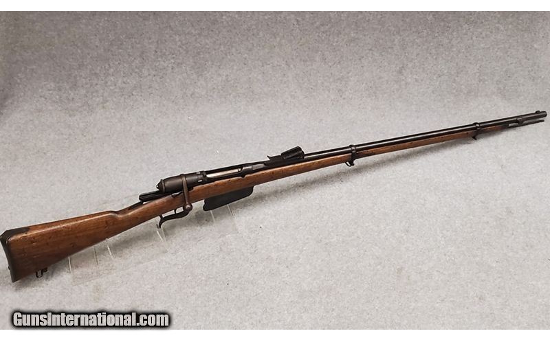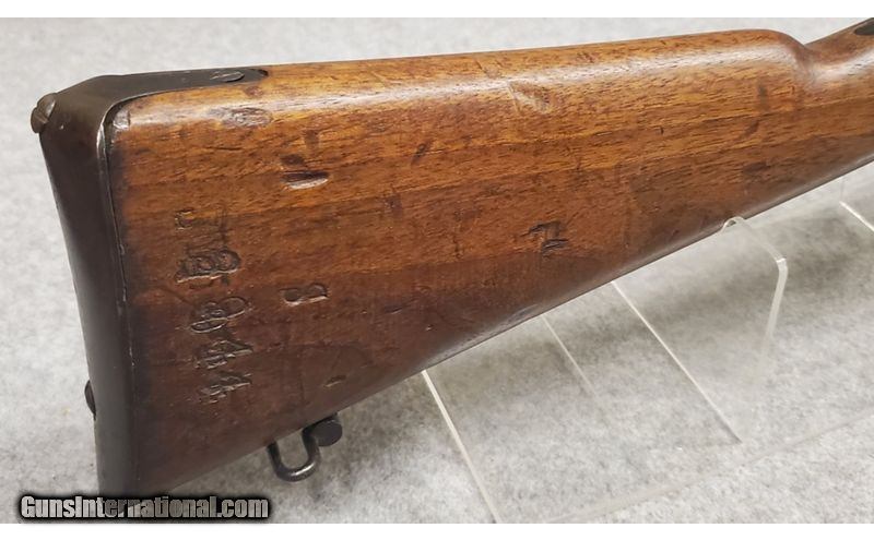 Description: The Vetterli rifles were a series of Swiss army service rifles in use from 1869 to 1889, when they were replaced with Schmidt–Rubin rifles. Modified Vetterli's were also used by the Italian Army. With a regular bolt featuring for the first time two opposed rear locking lugs. This novel type of bolt was a major improvement over the simpler Dreyse and Chassepot bolt actions. The Vetterli was also the first repeating bolt-action rifle to feature a self-cocking action and a small caliber bore. Due to the Swiss Federal Council's early 1866 decision to equip the army with a breech-loading repeating rifle, the Vetterli rifles were, at the time of their introduction, the most advanced military rifles in Europe. The Vetterli was the replacement for the Eidgenössischer Stutzer 1851, an Amsler-Milbank metallic cartridge conversion from previous Swiss muzzle-loading rifles. .41 Swiss SOLD Antique: Yes Chambers: 10.4×47mmR Metal Condition: Good Wood Condition: Good Bore Condition: Good Barrels: 34 Fore End: Good Butt Pad: Good Weight: 7lbs 9oz Sights: Open Sights Item Location: Berlin |