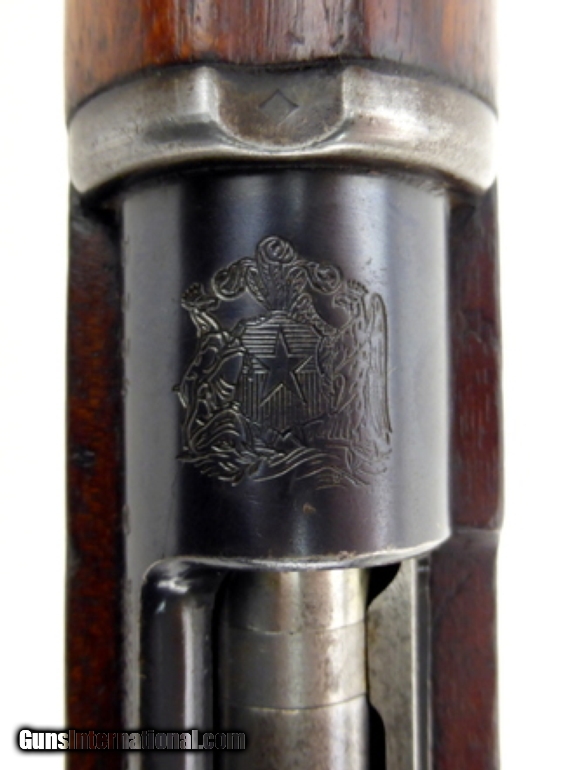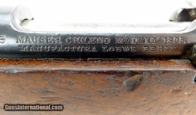 Chilean model 1895 in 7x57 Mauser. Excellent bore with strong rifling. Non matching serial numbers. Stock has an 1895 dated cartouche and is good with dents and dings. Good-very good overall condition.