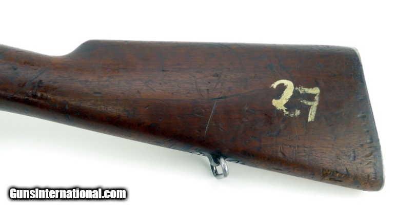 Description: Chilean model 1895 in 7x57 Mauser. Excellent bore with strong rifling. Non matching serial numbers. Stock has an 1895 dated cartouche and is good with dents and dings. Good-very good overall condition. SOLD Antique: Yes |
