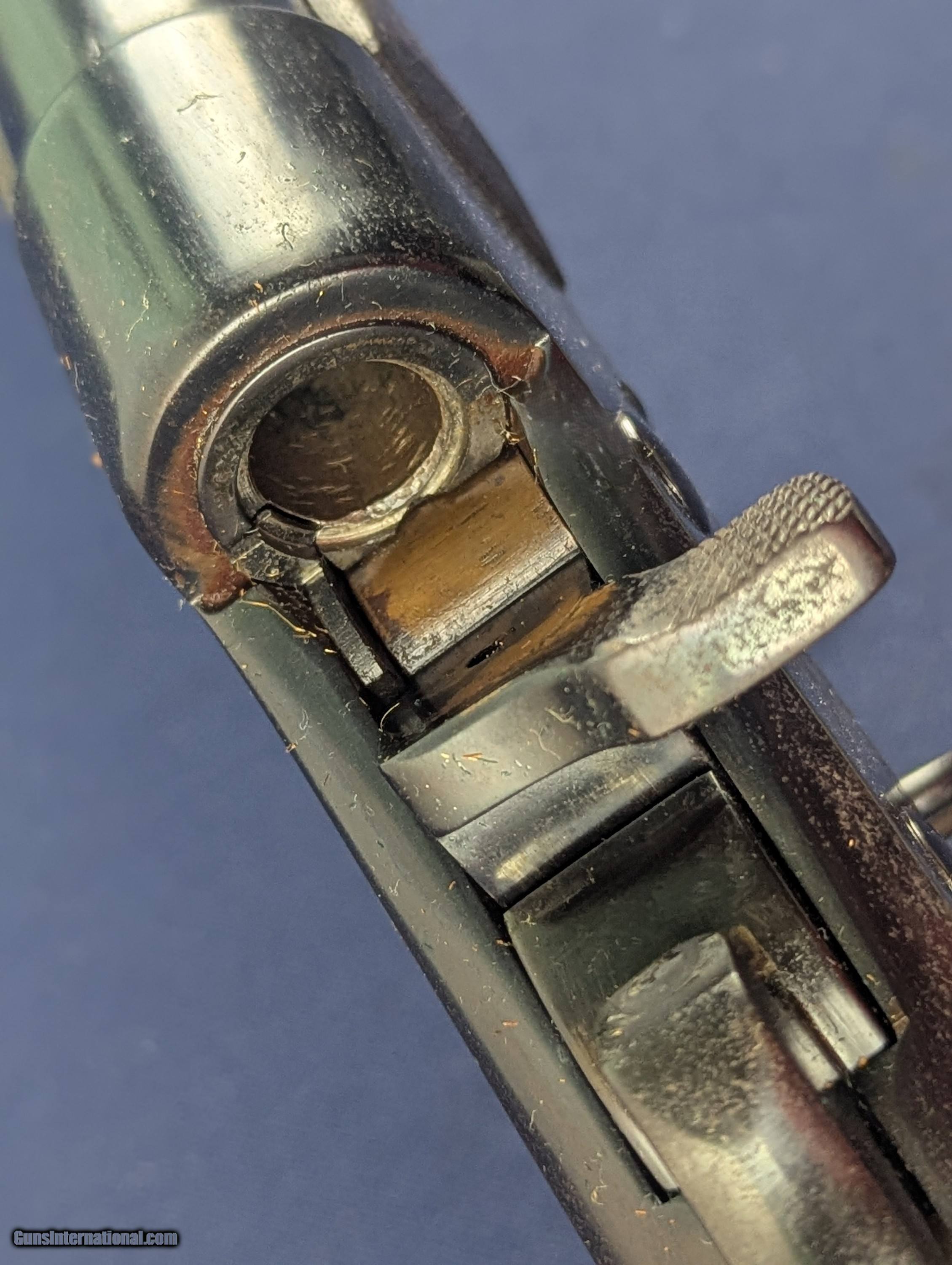 In the early 1870s, New York made a significant purchase of Remington rolling blocks. According to comparative historical sources: An initial order of approximately 15,000 rifles (with bayonets) to arm the New York militia. A follow?up acquisition of about 4,500 rifles and 1,500 saddle-ring carbines in 1873. The total number often cited: “19,450 rifles in two orders” for New York. The state of New York chose these rifles rather than waiting for the U.S. Army standard. The NYSM wanted a modern breech?loading rifle to replace muzzle-loaders or conversions; the Rolling Block offered a robust, simple action. Because the U.S. Army adopted other systems (e.g., the trapdoor Springfield) the state militia could pick a different path. The NY contract examples were chambered in .50-70 Government. They typically had three barrel bands and a 36″ barrel length (for the rifle version) in contrast to some other contract variants. Hammer and breechblock lever modifications The NY contract rifles feature an unusually high hammer spur (very tall hammer) and a large, horizontally-projecting breechblock lever (spur) on the right side. Both the hammer spur and the breechblock lever have “shield?shaped checkering” (as opposed to simple cross-hatch checkering on most standard models). Safety mechanism (half-cock/locking bolt).