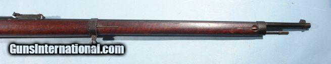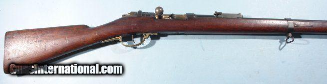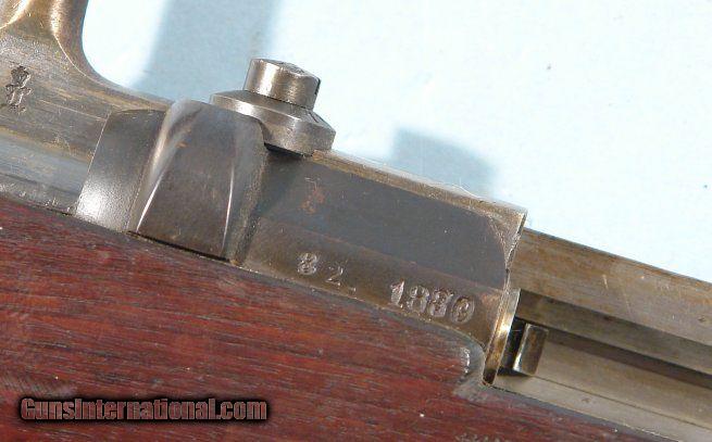 Description: GERMAN MAUSER MODEL 1871 ST. DENIS ARSENAL CONVERSION 6.5X53 DAUTETEAU INFANTRY RIFLE CA. 1895. 32” barrel engraved at the breech “ST. DENIS”. Surplus Model 1871 Mausers converted for use by the French Navy at St. Denis. Were apparently eventually sold to Uruguay. All original and with matching serial numbers. Excellent plus to near mint with all the blue and stock finish. Mint bore and perfect working order. SOLD Antique: Yes |