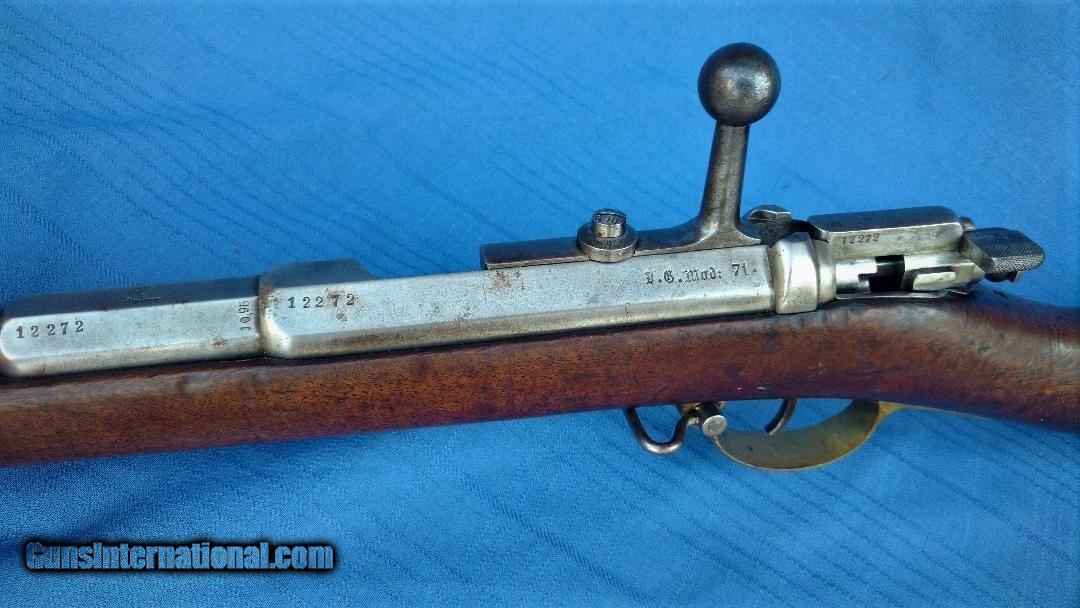 Description: HERES THE FIRST GERMAN CARTRIDGE MILITARY RIFLE MADE . MODEL 71 . THIS IS A VERY NICE ORIGINAL EXAMPLE ! ALL NUMBERS MATCH. BORE AND MECHANICS ARE VERY GOOD. ORIGINAL SIGHTS. CORRECT MILITARY INSPECTOR NUMBERS ARE ALL THERE. THESE EARLY GERMAN MODELS HAD EVERY PART ON THE GUN NUMBERED EVEN THE SCREWS ! 100 % ORIGINAL MODEL 71 . PLEASE REVIEW MY PHOTOS AND PLEASE EMAIL ME WITH ANY QUESTIONS ? 3 DAY INSPECTION AS ALLWAYS. THANKYOU FOR LOOKING , LITTLE JO SOLD Antique: Yes Manufacturer: GERMANY Model: 71 Serial Number: 12272 |