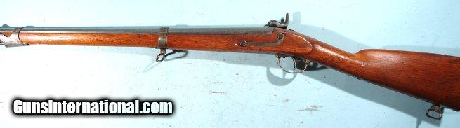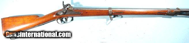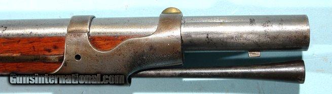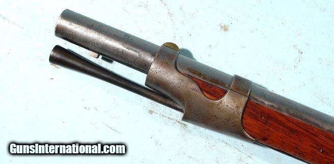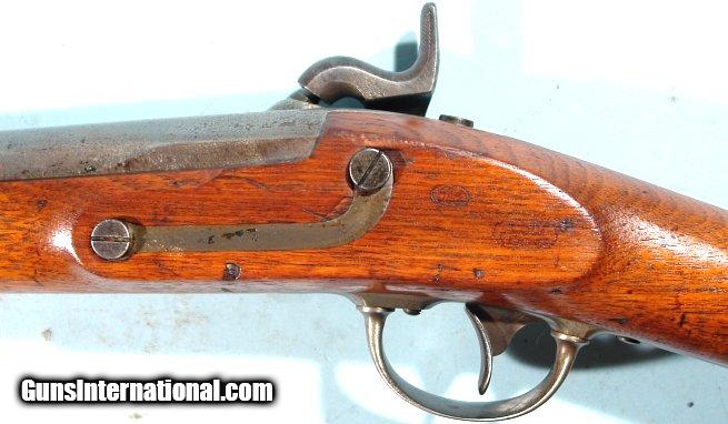 Description: MEXICAN WAR SPRINGFIELD U.S. MODEL 1847 ARTILLERY MUSKETOON DATED 1847. .69 cal. smoothbore 26” barrel with bayonet lug on underside of muzzle and “V/P/EAGLEHEAD” proofs at the breech. Has the original swivels and ramrod. All original, complete and matching with 1847 dated lock and barrel. Fine overall with the original crisp grey patina on the metal and stock with two extra nice U.S. Govt. Inspector’s cartouches. Only a small handful of 1847 dated Artillery Carbines are known and most are altered Sappers and Miner’s Musketoons. Scarce example made as an Artillery Model and original and correct in every respect. SOLD Antique: Yes |