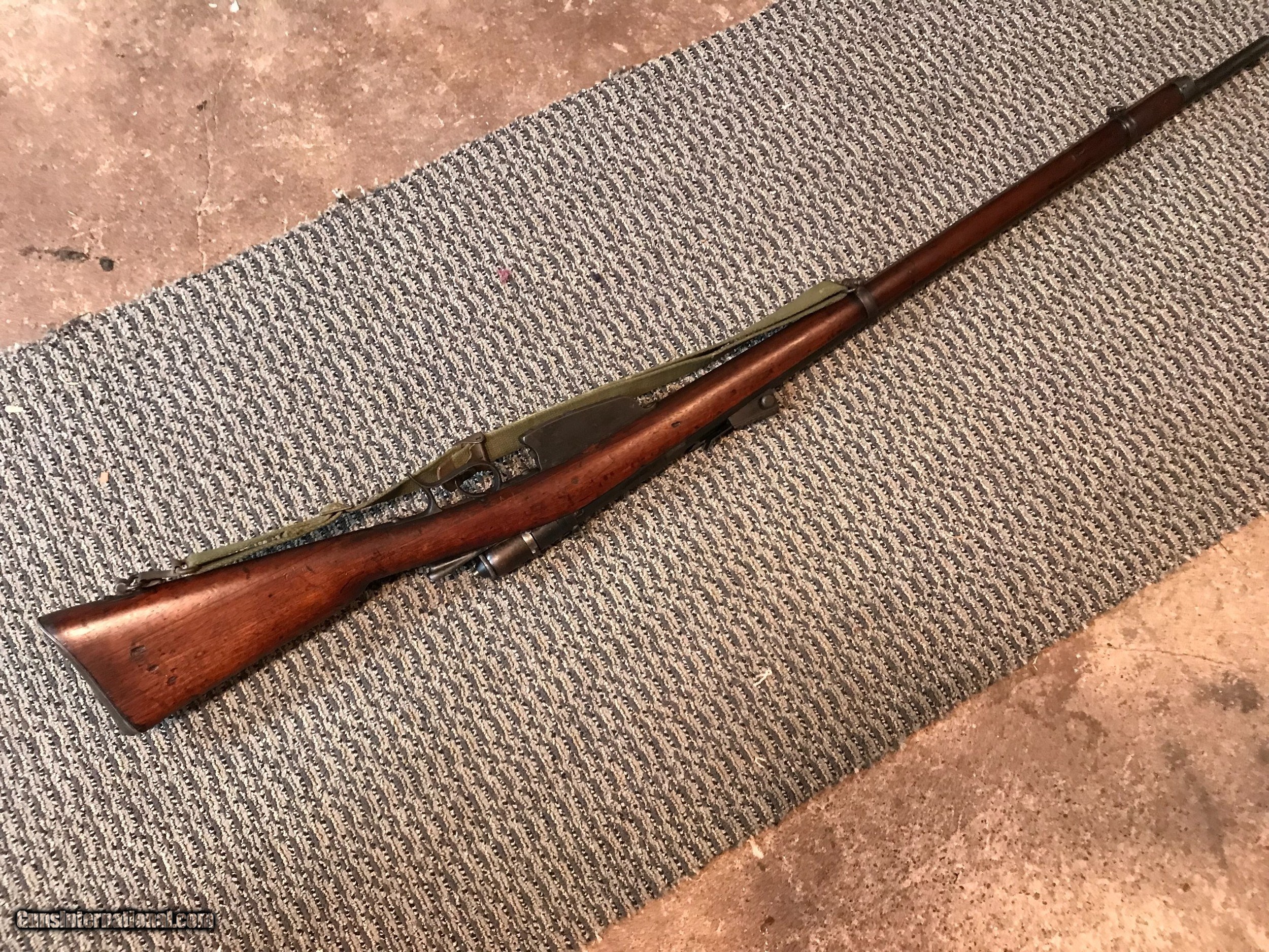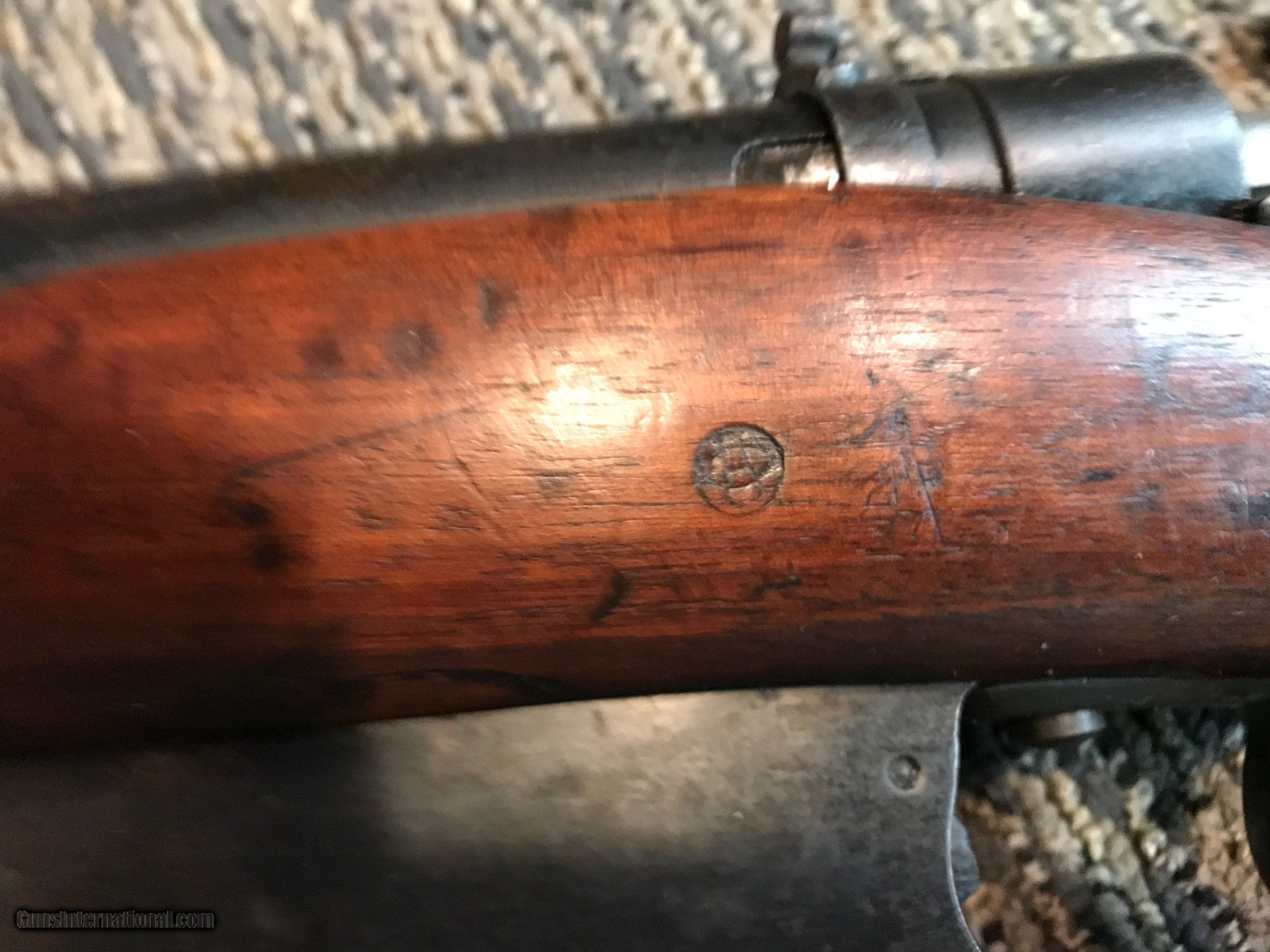 Description: NICE ORIGINAL ITALIAN ANTIQUE BRESCIA VETTERLI 6.5x52mm MODEL 1870/87/15 I believe INFANTRY RIFLE 1888 . Cleaning rod is not there just a rod. Bore is clean and nice with full lands and groves. Bolt , fireing pin and all are good but I can't seam to remove the bolt from the rifle. The gun retains most of its original finish with the buttstock faded , the rest is still shiny but original. I called a deaer was told theyre a bitch sometimes I would just leave it alone. No clip . Sling is good not rottedand adjustable. Lots of info on stock and barrel. Gun has not been taken apart. Ships direct to buyer . Big gun will cost. SOLD Antique: Yes Rifle Caliber: 6.5x52mm Mannlicher-Carcano |