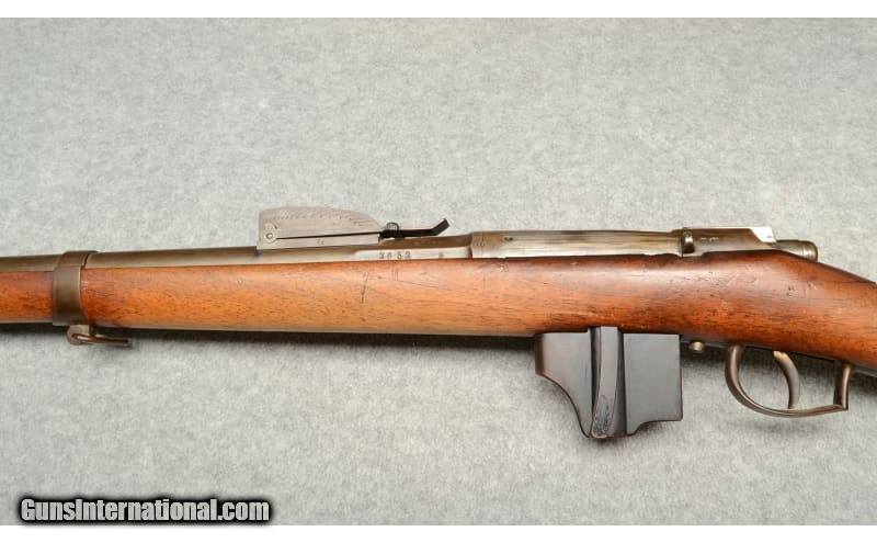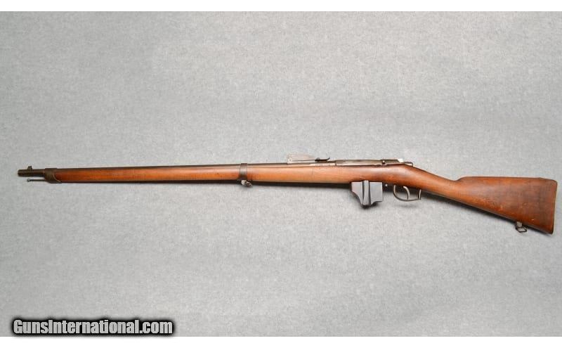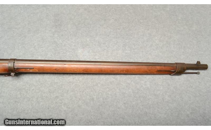 Description: This Dutch Infantry Rifle was made by Stevens in Maastricht in the Netherlands, and is actually dated 1885. The model M-71 was a single shot 11mm rifle that was converted to a bolt-action magazine rifle with a capacity of four rounds in 1891. SOLD Antique: Yes Metal Condition: Excellent Wood Condition: Excellent Bore Condition: Excellent Barrels: 32 Triggers: Factory Weight: 6 lbs Sights: Factory Item Location: Columbus, OH |