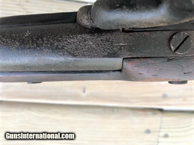 Description: Robbins & Lawrence Windsor Vt. 1856 Civil War Rifle cut to a Carbine, as was issued to the Georgia 8th Regt. ( Rome Light Guards ) Floyd County Georgia. They were part of the Army of Northern Virginai CSA. The rifle/carbine came out of a home in Ackworth Ga. Floyd County GA. in 1998 which was the home of the Rome Light Guards Co A of the 8th Ga. Infantry. The lock has the Crown & Winsor VT 1856 markings. The overall metal condition is not good, was heavly rusted from the attic, the action all works fine, the barrel is rifled and has been cut from a full rifle.The stock has been relieved of a center section for making it lighter or easy to grab from a saddle scabbard ???. There are initals on the side of the stock LMB and a large 8, there is a number 27 on the stock rear and another 8 by the butt tang. The muster roll of Co. A, 8th Regiment Georgia Volunteer Infantry Army of Northern Virginia C.S.A. list a (L. Beal as corporal July 16,1861, page 917 #935, wounded at Wilderness Campaign Va. May 6, 1864. Absent wounded, October 31, 1864. No later record.The stock markings seem to somewhat align with these Muster Roll Records and other markings for a possible identity of a CSA Period soldier coming from Floyd County Georgia where the gun was found. Documents show many Georgis regiments receiving Robbins & Lawrence guns and indicate that the milita company known as Rome Light Guards ( later to be Company A of the Georgia Infantry ) were armed with "Windsor Enfields" of this same kind. Also check, Muster Roll pages 916-923 Floyd Co. Ga. Feel free to ask any questions. Shipped Priority $50 with a signature required at delivery. This ia antique before 1898 so no FFL is Required. Feel free to make a reasonable offer. SOLD Rifle Caliber: .50 Manufacturer: Robbins & Lawrence Model: 1856 Condition: fair Metal Condition: fair Wood Condition: good Bore Condition: ok Action: percussion Manufacture Date: 1856 |