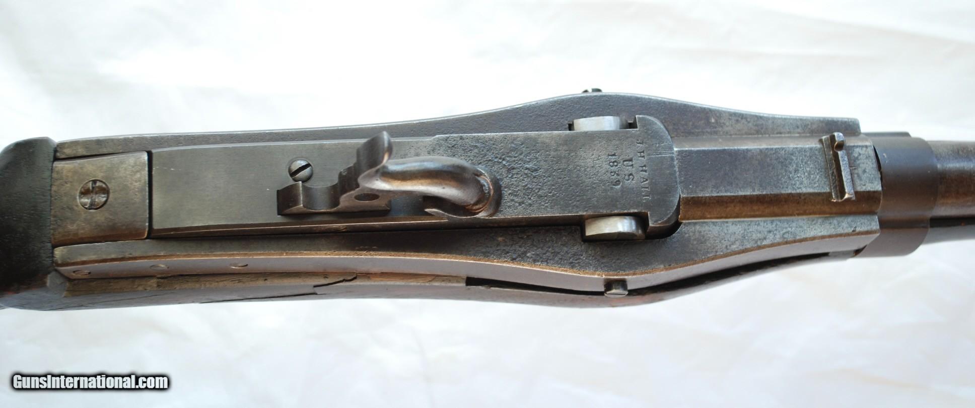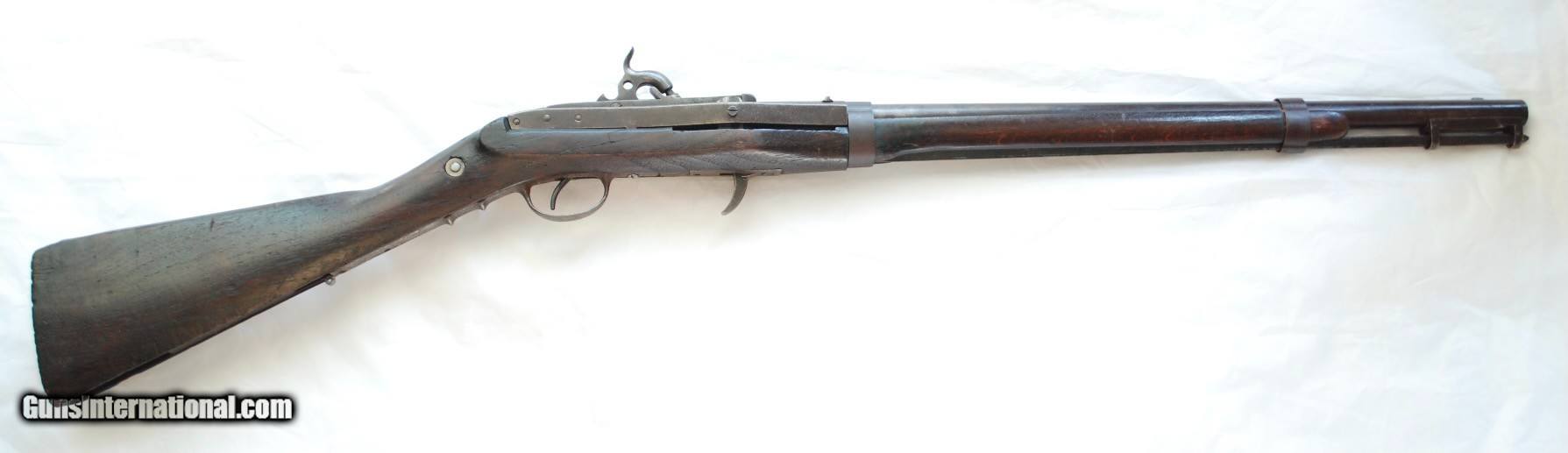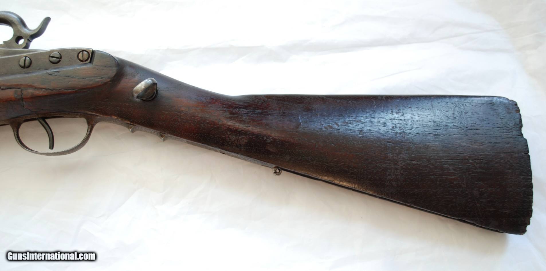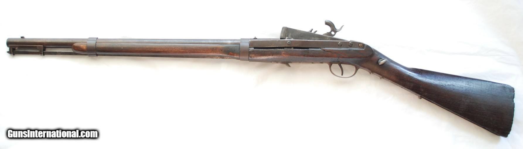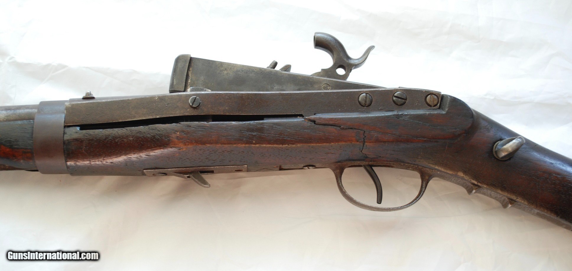 Description: This revolutionary gun was the first American breech loading rifle adopted for military service, also the first one to have interchangeable parts. As scarce as the rifles are, the carbines are scarcer, especially the ones that feature an integral bayonet. Hall rifles were used during Mexican American war, Indian wars and to a smaller extend in Civil war. The gun for sale is in good everall condition, stock has a usual crack on the left side of the receiver, Action works fine with a two stage hammer. Rear barrel band is loose. The gun is missing a butt plate and a patchbox cover that was integral with trigger guard but the price refletcs that. No license needed to buy xcept NJ residents. Thanks, check my other listings. SOLD Antique: Yes |