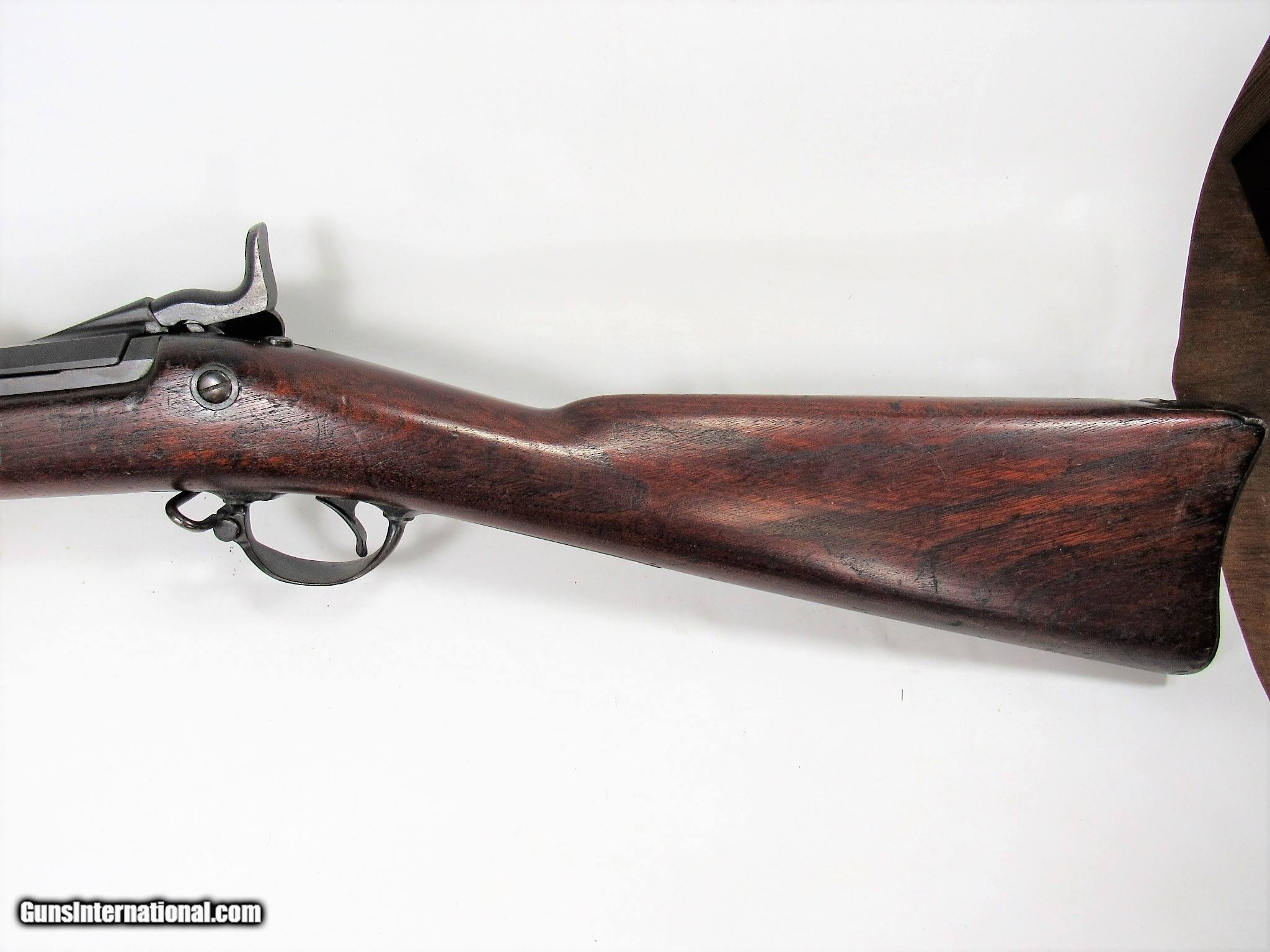 Description: SPRINGFIELD 1884 TRAP DOOR 45-70. NICE OLD REBLUE, NICE BORE AND GOOD SOLID WOOD. ANTIQUE SOLD Antique: Yes Rifle Caliber: .45-70 Government |