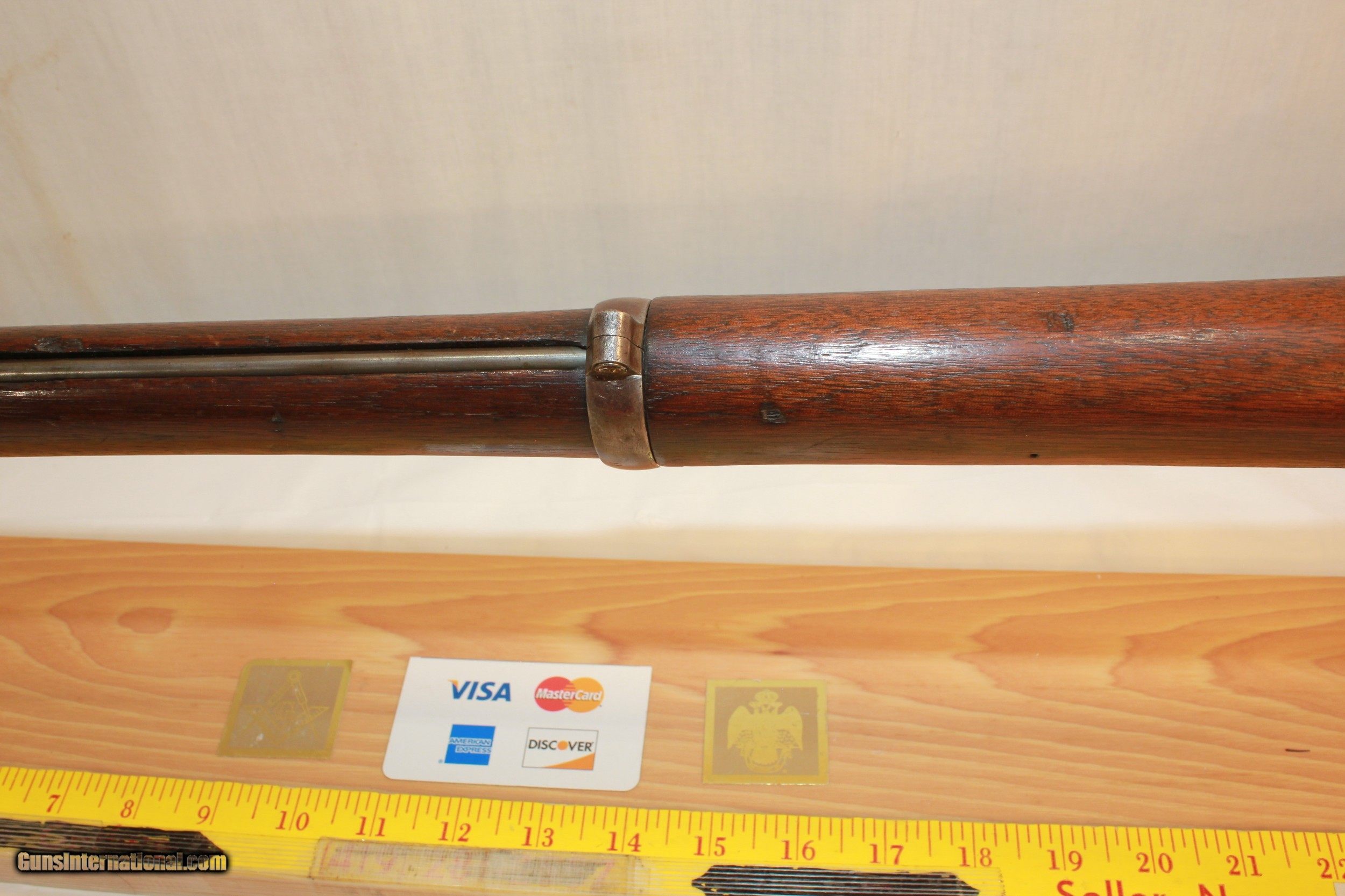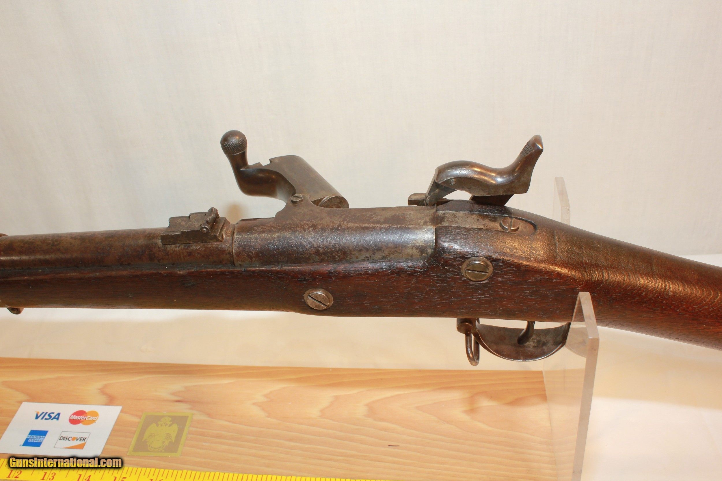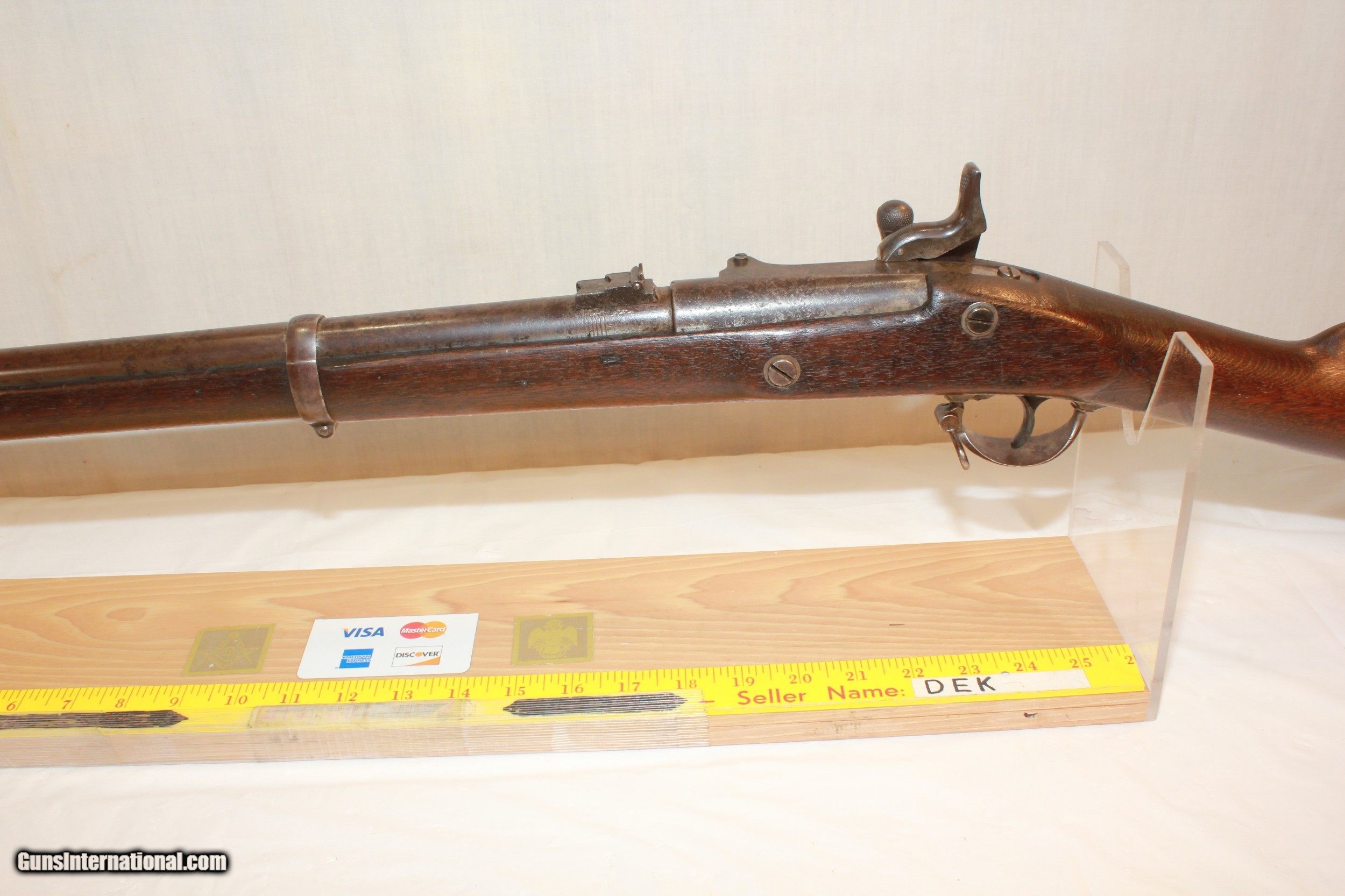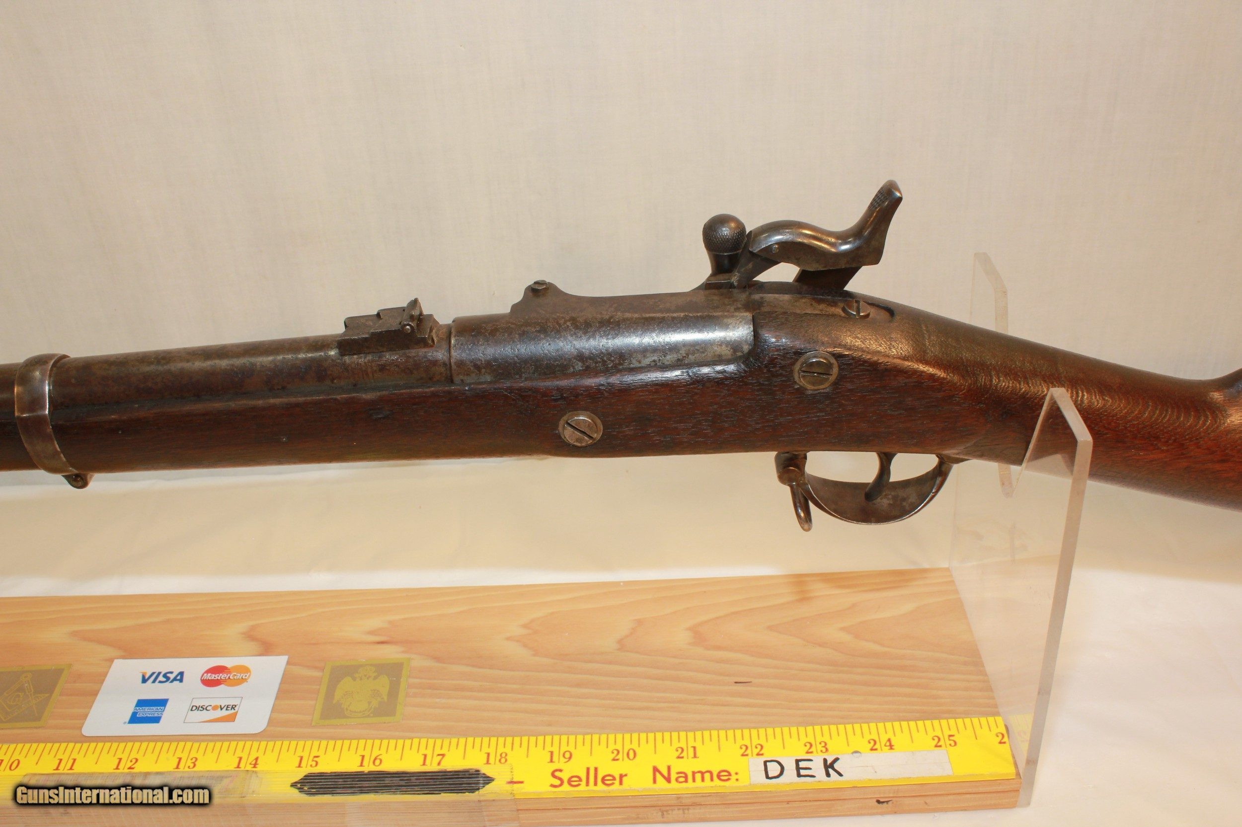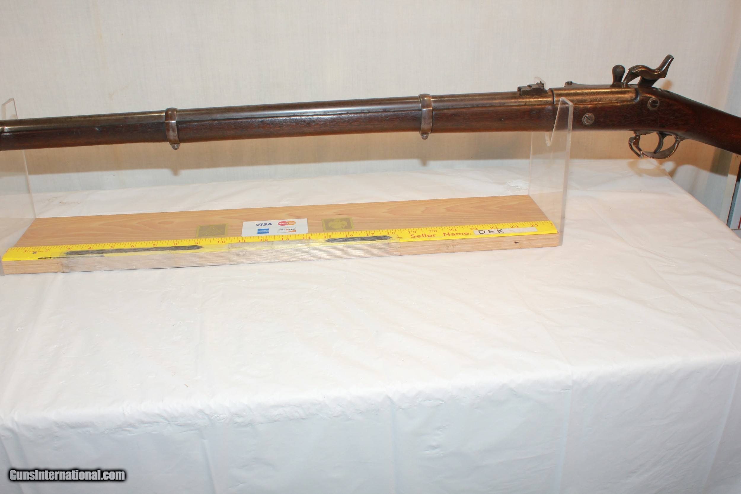 Description: This is a conversion of the Civil War Springfield Musket for the 58 Caliber centerfire Cartridge. The bore of this gun is smooth indicating that it was made into a foragers gun. It will accept 20 gauge cartridges, but it is not recommended for modern ammunition. Thes guns were originally converted in civilian shops and were used by some militias units in New Jersey, Georgia, Pennsylvania and Rhode Island. The English designed breech swings to the right side of the gun for loading and unloading of the ammunition. It has a 37 inch barrel and a Springfield 1864 lock. It retains the original Springfield sights. The wood is sound with the usual dings and scratches for a 150+ year old gun. There were a total of 5020 of these Springfields converted by this method. This is an antique so no paperwork is required. $50.00 Shipping via Priority Mail. SOLD Antique: Yes |