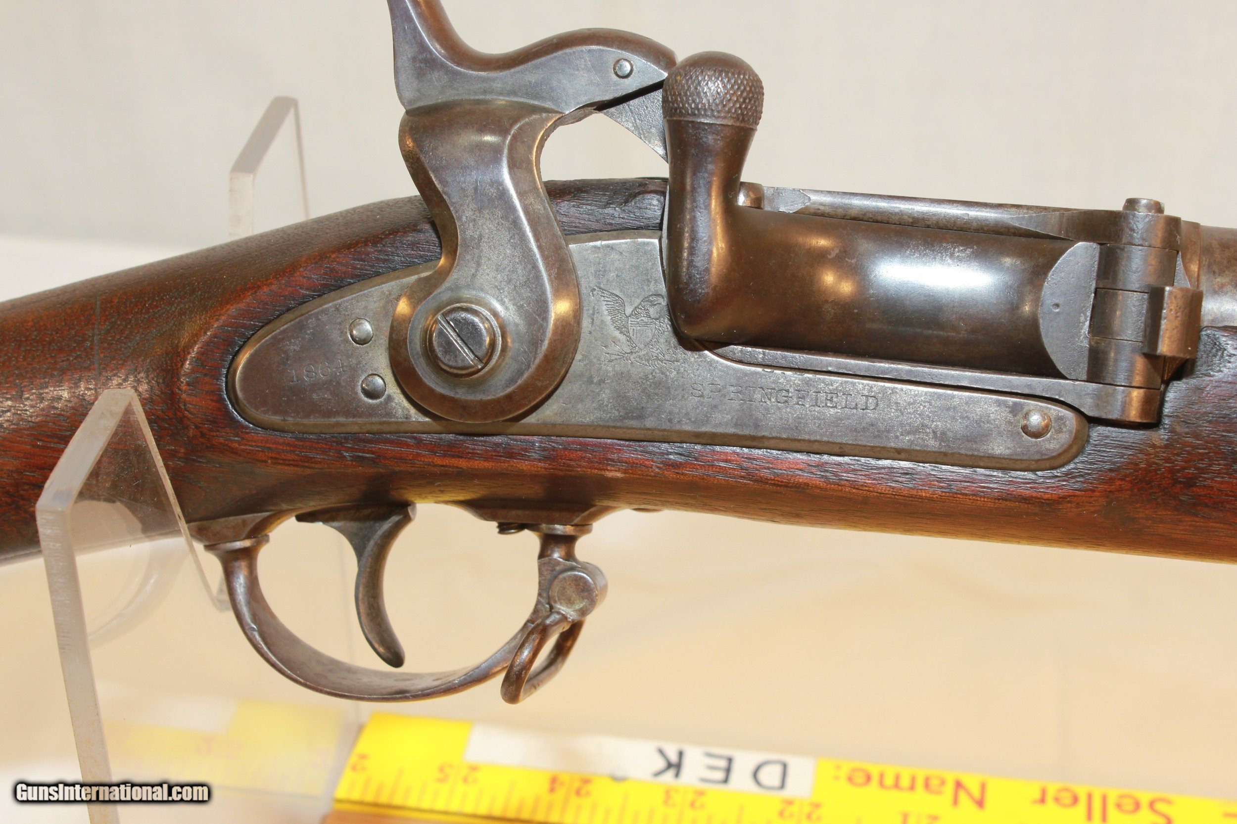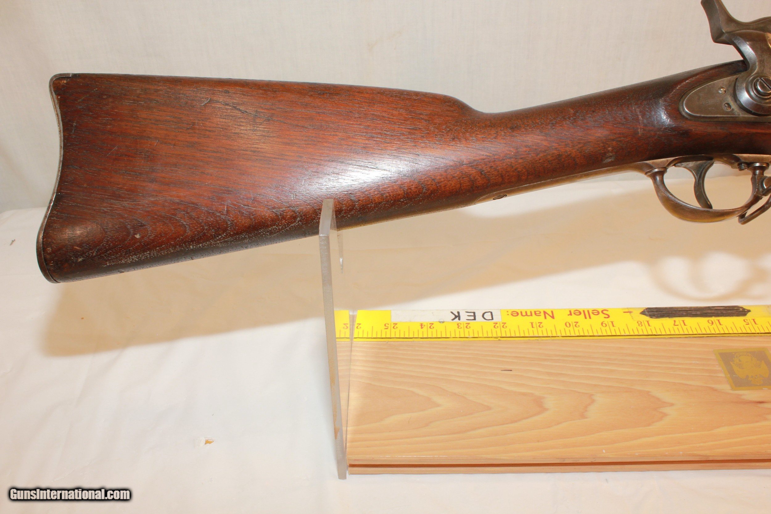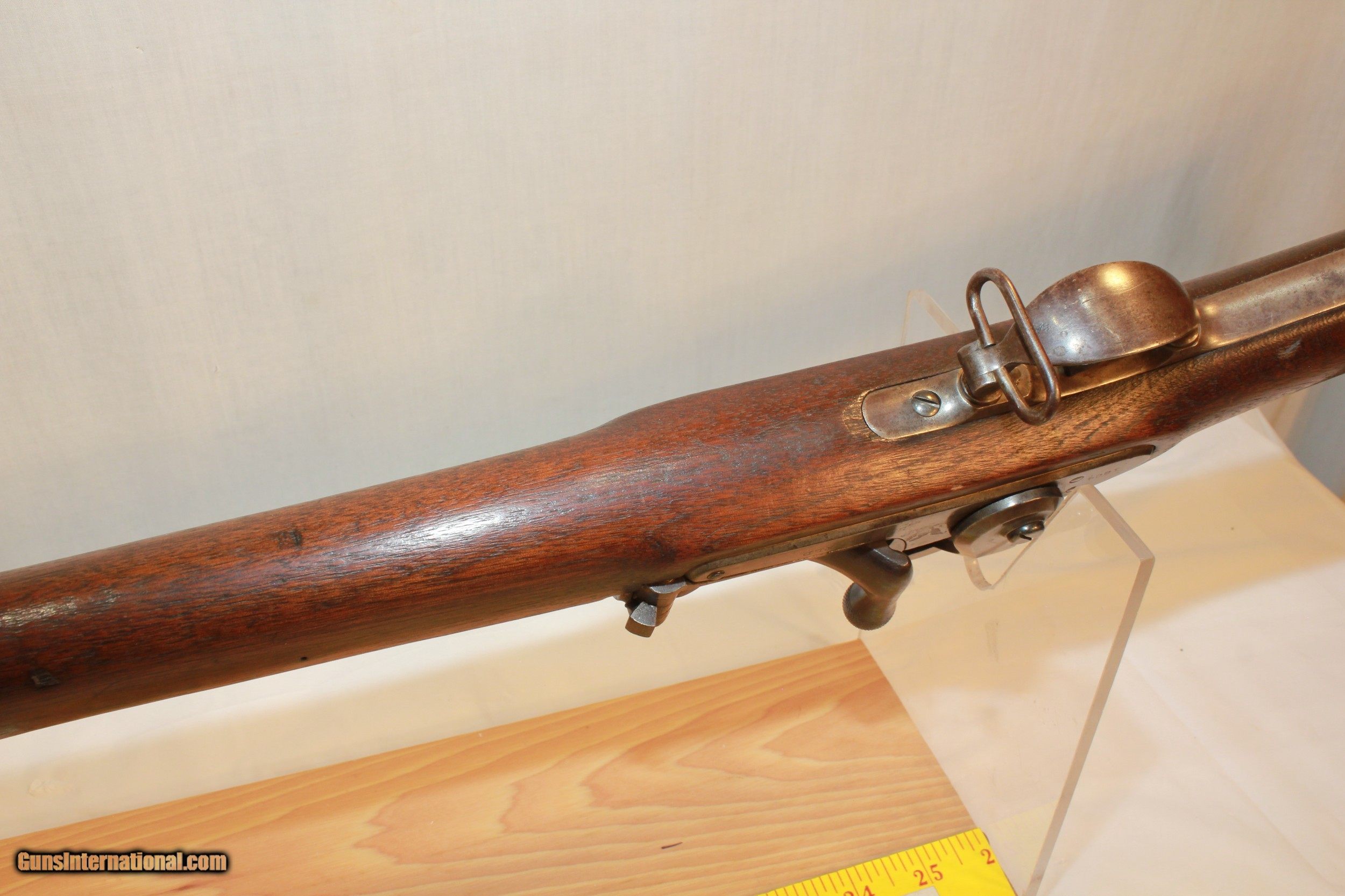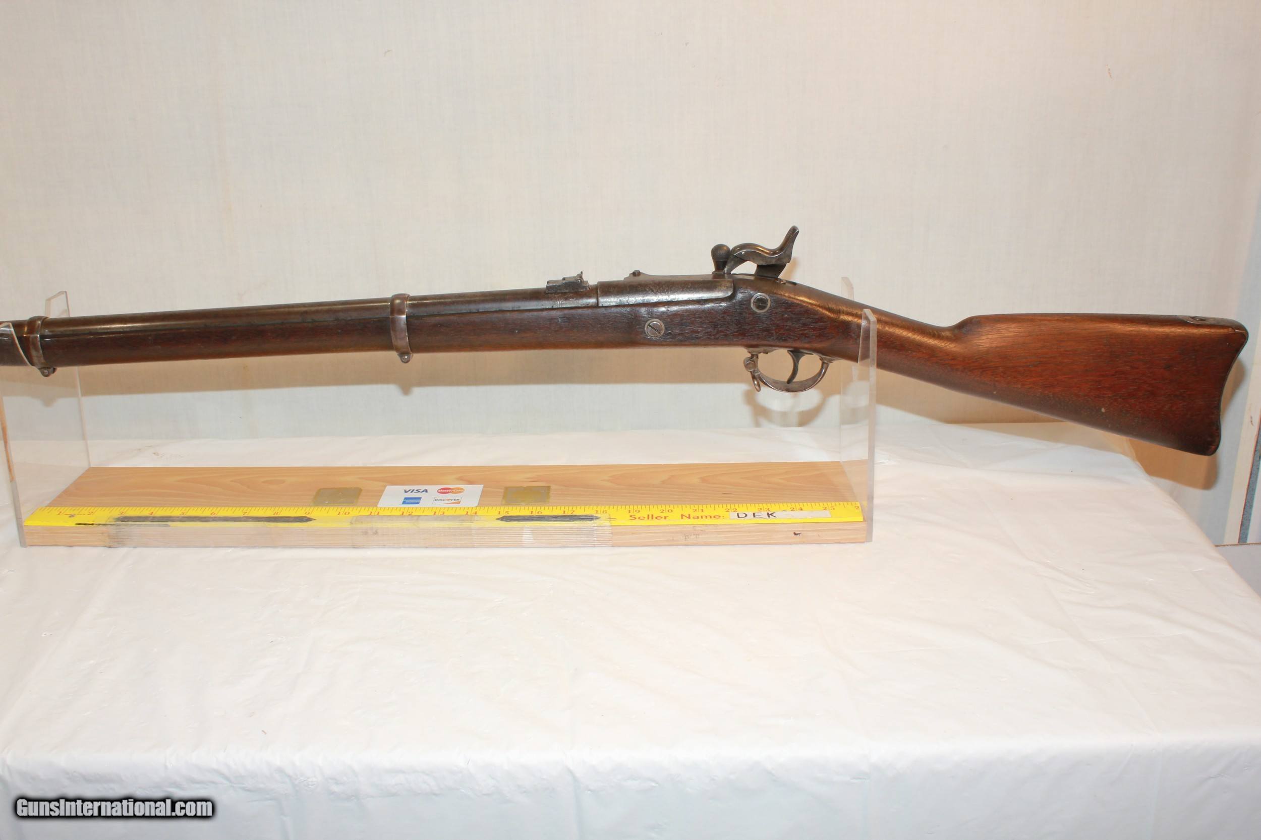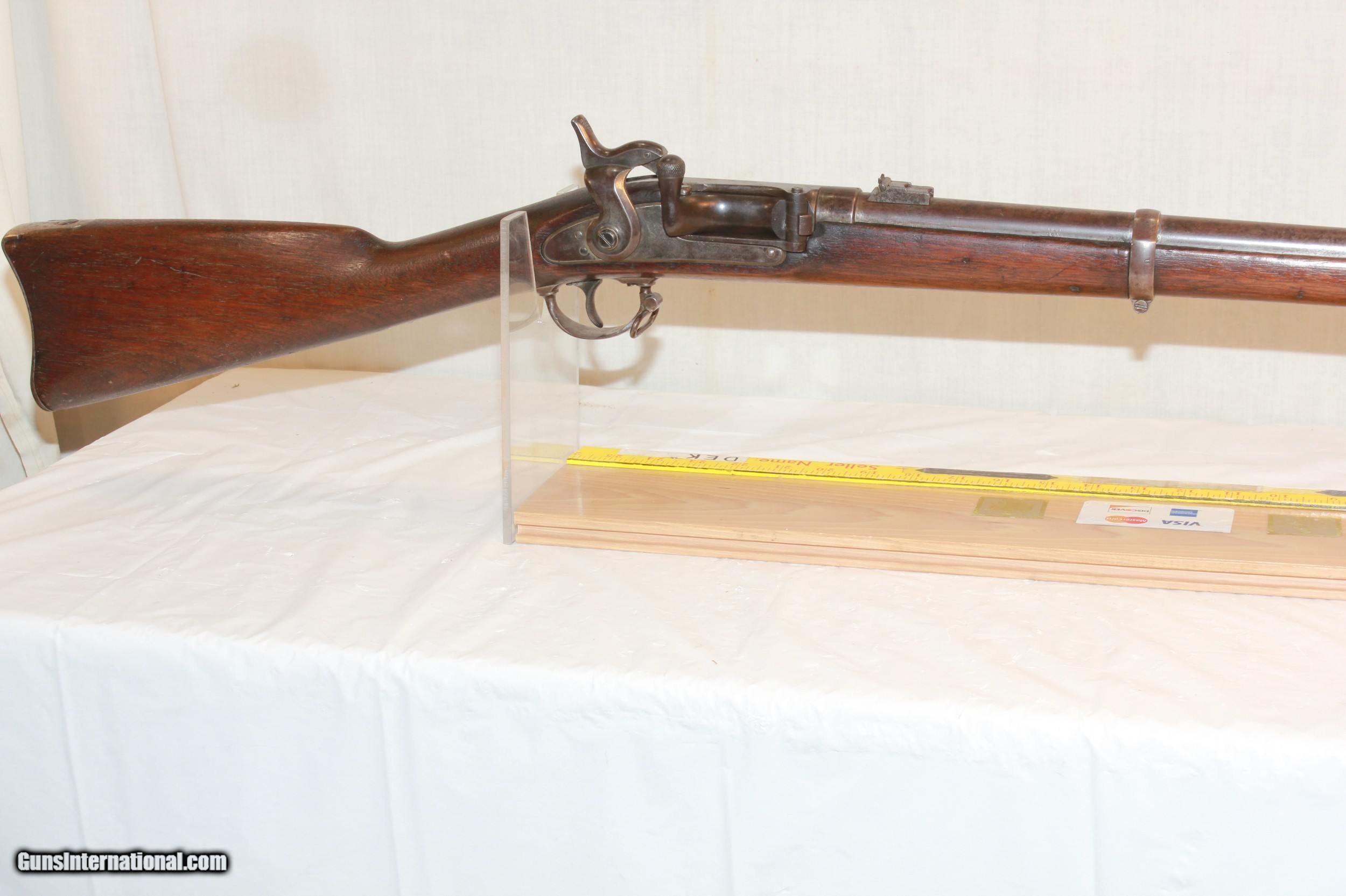 Description: This is a conversion of the Civil War Springfield Musket for the 58 Caliber centerfire Cartridge. The bore of this gun is smooth indicating that it was made into a foragers gun. It will accept 20 gauge cartridges, but it is not recommended for modern ammunition. Thes guns were originally converted in civilian shops and were used by some militias units in New Jersey, Georgia, Pennsylvania and Rhode Island. The English designed breech swings to the right side of the gun for loading and unloading of the ammunition. It has a 37 inch barrel and a Springfield 1864 lock. It retains the original Springfield sights. The wood is sound with the usual dings and scratches for a 150+ year old gun. There were a total of 5020 of these Springfields converted by this method. This is an antique so no paperwork is required. $50.00 Shipping via Priority Mail. SOLD Antique: Yes |