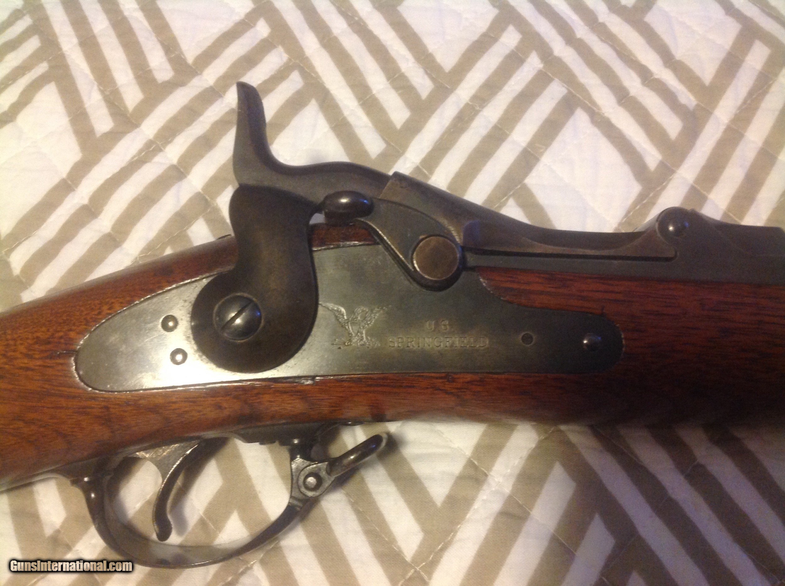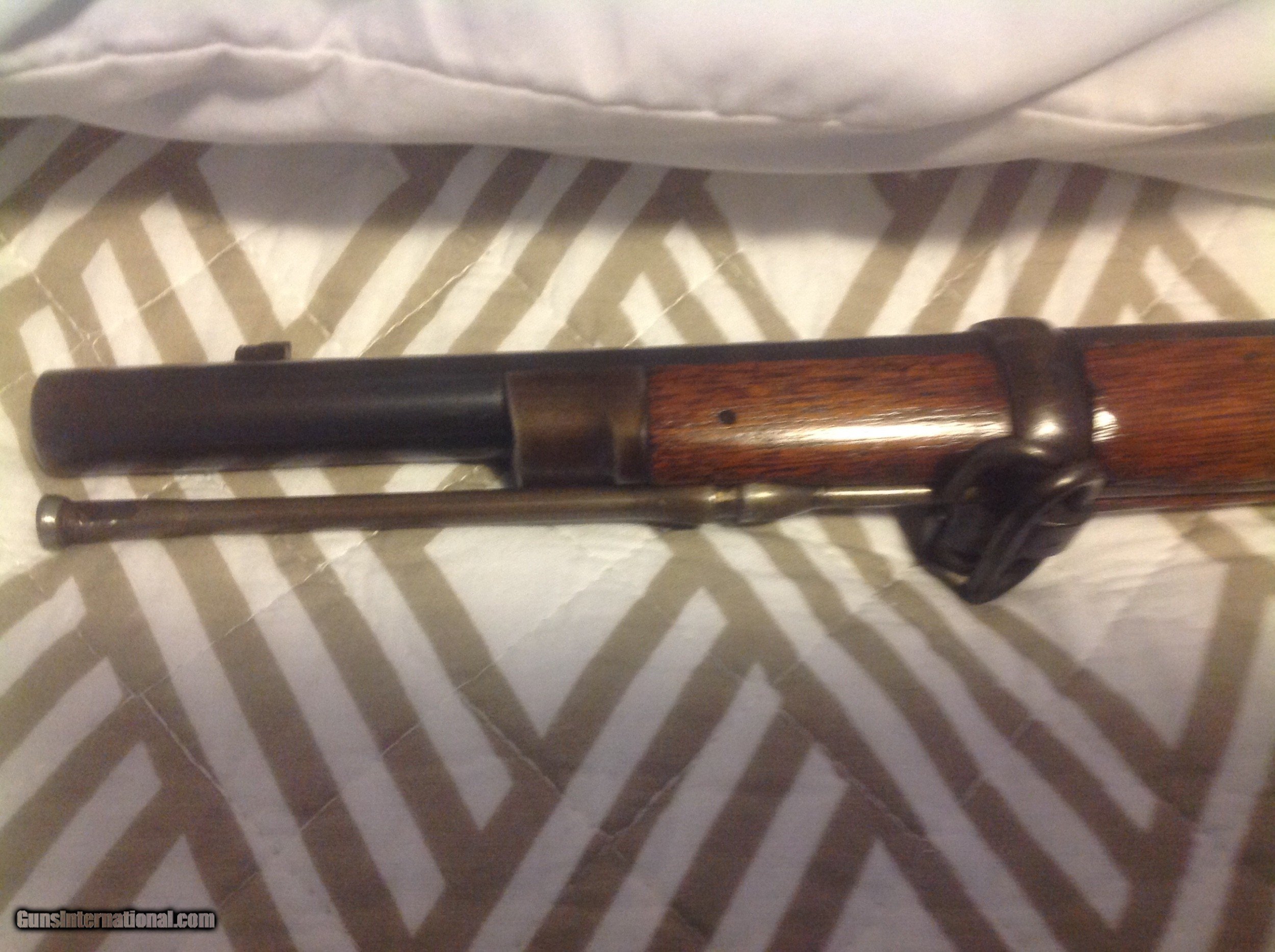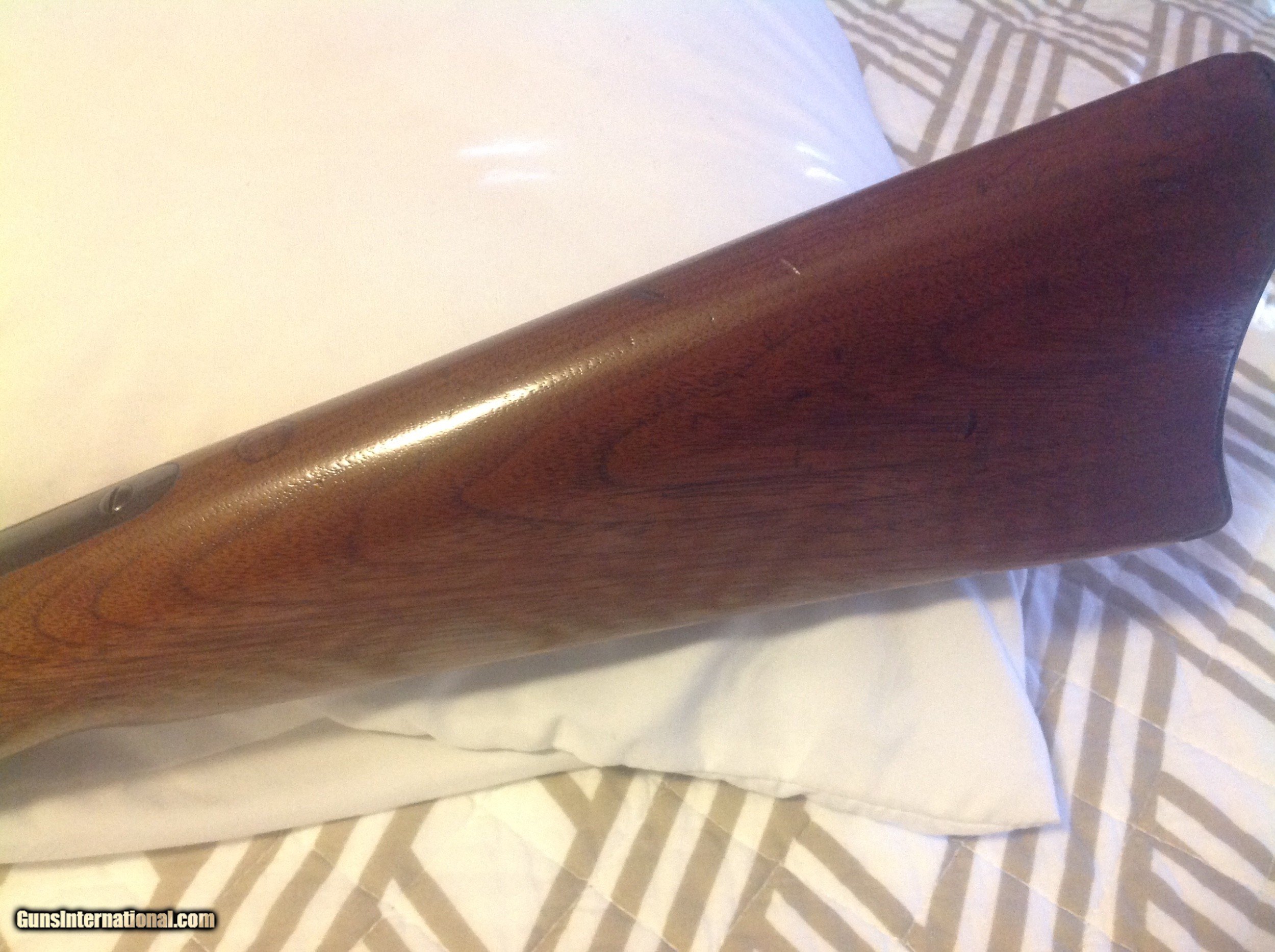 Description: Springfield Model 1878 Trapdoor 45/70 with triangular bayonet with scabbard.This rifle retains 95% of the original bluing. Super good bore,all wood in great shape. The inspectors cartouche is clear and readable. There is also an issue stamp on the stock for the Detroit Armory. This rifle is in excellent condition. SOLD Antique: Yes |
