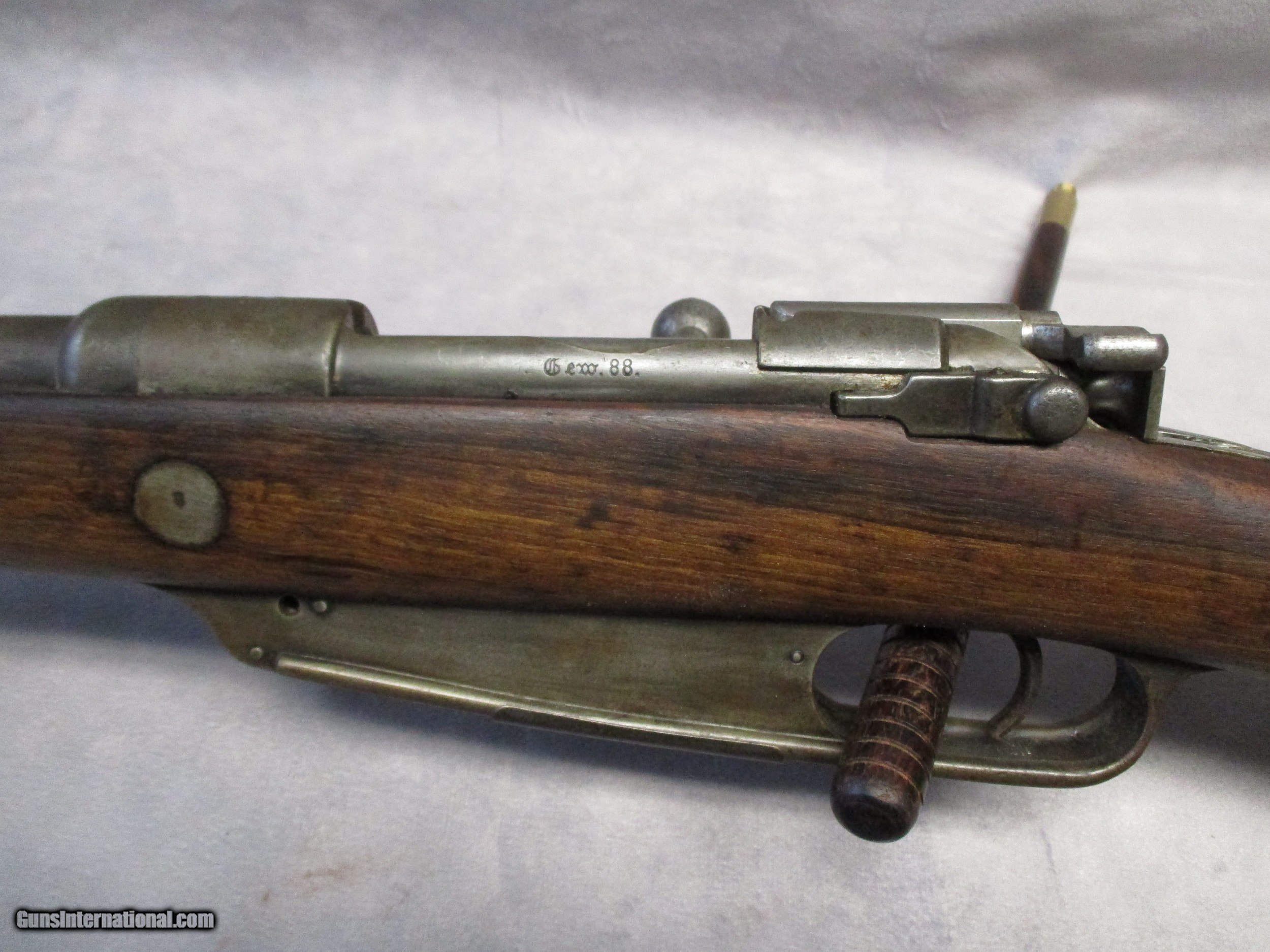 Description: The Gewehr 1888 or Commission Model 1888 as it is more commonly known, was Germany’s only military rifle of the 19th Century that was NOT designed by Paul Mauser, designer of the legendary M1896 Broomhandle semi-auto pistol and the Gewehr 1898 rifle. The Commission Model 1888 was in fact designed by the German Rifle Commission. Previously, Paul Mauser had designed the Model 1871 single-shot bolt-action rifle for the then Prussian Military, which adopted in 1871. In 1884, Mauser redesigned the rifle with a tube fed magazine, creating the Model 1871/84, which was adopted by the German Army in that year. In 1886, the French became the first country to adopt smokeless powder for use in a military cartridge and rifle, creating the M1886 Lebel rifle and its 8x50mmR Lebel cartridge. Germany new they had to follow suit quickly. Unfortunately, Paul Mauser was busy, designing a rifle to fulfill a Turkish contract. In 1887, he received a contract for 500,000 rifles and 50,000 carbines from the Turkish Government (technically the Ottoman Empire at that time) chambered for Mauser’s last black powder cartridge, the 9.5x60mmR Turkish. The German government, unwilling to wait, set up the German Rifle Commission to design both a new rifle and cartridge to replace the M71/84 and the 11x60mmR cartridge it used, both of which were obsolete by that time. Sadly, during the design process, the Commission appropriated several of Mauser’s design features from his previous rifles without paying the man the royalties he was owed for the patents he held. Paul Mauser ultimately proceeded with his own design, the Model 1889 Belgian Mauser chambered for the 7.65x53mm Belgian cartridge. The supreme irony to all this is that the Ottoman Empire ended up using both the M89 Belgian Mauser AND the Commission Model 1888 rifle during World War I, with both rifles being chambered for their respective cartridges, complicating their ammunition supply. For the 1888 rifle, the Commission developed the 8x57mm Patrone 88 cartridge, also known as the 8x57 I, where the “I” stands for “Infanterie” or “Infantry” in English. This used a 0.318” diameter, 227 grain, round-nosed bullet backed by 42.4 grams of smokeless powder in a “rimless” case 57mm in length. Paul Mauser was not involved in the process in any way. Eventually, when the Mauser Gewehr 1898 rifle was created, the Patrone ’88 was redesigned as the 8mm S-Patrone. Here, the “S” stands for “Spitsgeschoss”, or “Pointed Projectile”. This version featured a 0.323” diameter, 153 gr, spitzer bullet backed by a more-powerful variant of the smokeless powder which combined the original nitrocellulose with nitroglycerin, resulting in a 38 percent higher muzzle velocity. While early 1888 rifles where not safe to shoot with the new round, many examples produced after 1895 where rechambered to shoot the S-Patrone and these have the letter S stamped onto the top of the receiver. The rear sights on these rifles have been altered to account for the new trajectory. Finally, many rifles were altered to use the new Gewehr 98 rifles stripper clip instead of the original Mannlicher style clips. These rifles are known as the Model 88/05, the “05” indicating the year 1905, when the stripper clip modification occurred. It is this version of the ’88 that the Turks used alongside their M89 Belgian Mausers. The Commission rifle is unique among most military bolt action rifles in that it has a shroud around the barrel, similar in appearance to the shroud used on the Remington Model 8 and 81 semi-auto rifles. This feature was not used on any of Paul Mauser’s military rifles. The rifle shown here is one of the Turkish examples. This is easily verified by looking at the rear sight markings where the numbers are given as Arabic numerals. Most of the parts are non-matching which is typical for these rifles. The receiver has the “S” stamp of course. The bluing has turned to a patina for the most part. A cleaning rod is present. There is some light pitting in various places which is understandable for a rifle that saw hard service, especially during the Great War. The barrel has been counterbored as can be seen in the photos. There is some pitting in the bore, but the rifling is still well-defined. Overall, the rifle should provide some decent accuracy. Only jacketed bullets should be used. Please note that the Guns International “Rifle Caliber’s” box for the entry listing system only gives “8x57 IS” and “8x57 JS” as options. BOTH of these are wrong. Over the years, the “I” in 8x57 I was bastardized to a “J”. There are many explanations for why this occurred with the most common story being that “I” and “J” were used interchangeably at the time. There is no “IS” or “JS”. For this rifle’s entry, I have chosen to use the “JS” option, but it should be clear that this rifle is chambered for the later 8x57 S used in the Mauser 1898 action. SOLD Rifle Caliber: 8x57mm JS Manufacturer: Erfurt Imperial Arsenal Model: Commission Model 1888 Serial Number: 6129 Bore: Rifled, 4 grooves Condition: Good Barrel Type: Shrouded, counterbored Action: Bolt action Triggers: Single Stock: Wood, straight grip Fore End: Wood Butt Pad: Metal plate LOP: 13.0 inches (330 mm) Finish: Patina Weight: 8.5 lbs. Sights: V-notch ladder rear sight, Inverted-V front sight post, sight radius 24.0 inches (610 mm) Manufacture Date: 1891 |
