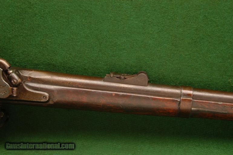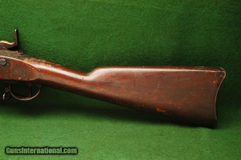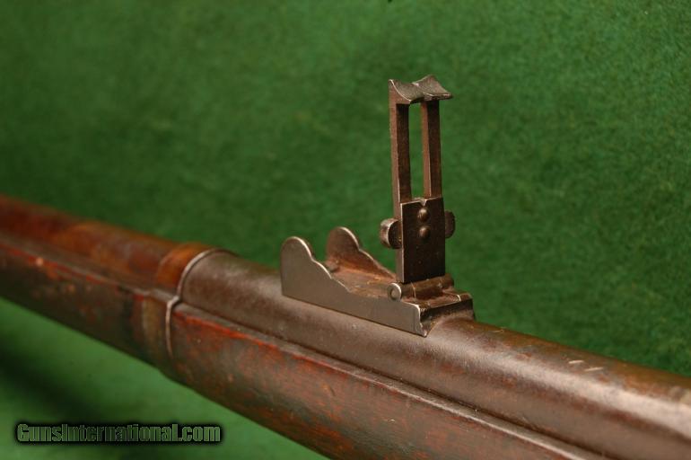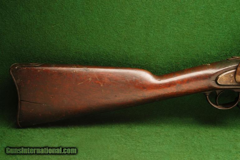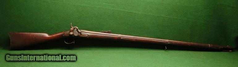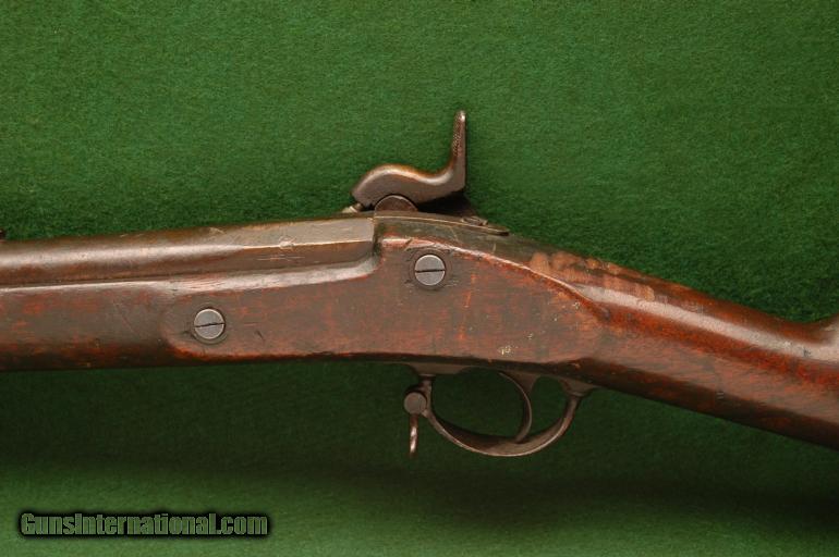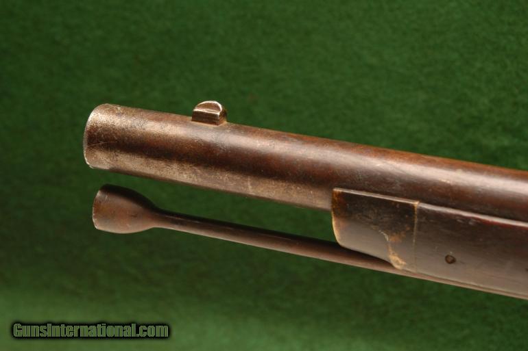 Description: U.S. Harpers Ferry Model 1855 Rifle .58 Caliber 40" Barrel, 3 Lands and Grooves Condition: Antique Fine. Wood and metal show significant patina. Significant crack to toe of buttstock, easily seen in pictures. Bore is somewhat dark, but shows no pitting deep enough to prevent shooting. Action sports a Maynard Tape Primer feed. Hammer and sear function properly. SOLD Antique: Yes |