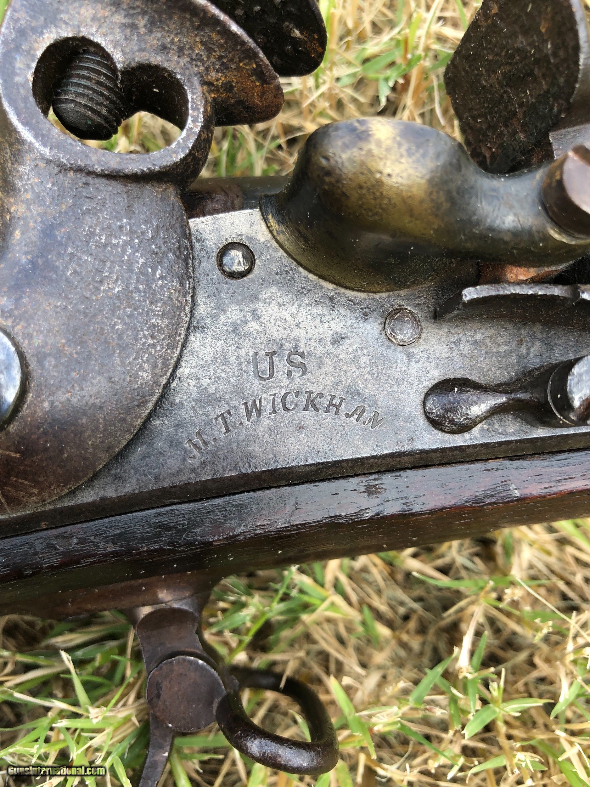 Description: Here l present a lovely .69 caliber 1816 Springfield Contract Flintlock Musket. History: The M1795 was the very first weapon manufactured by the United States, after the war of 1812, they continued to improve on the design, and what became known as the Model 1816 was born. The easiest way to distinguish a mode 1816 ls the brass pan, forward facing barrel band springs, and straighter “non-comb like” stock. This musket was very similar to the French Charleville m1777, as we grew fond of them from the Revolutionary War. This weapon would have been common ln the Texas Revolution with Alamo defenders, onto the Mexican-American War, and throughout the Texas-Indian Wars & American Indian Wars The lock reads “U.S. / M.T. WICKHAM” in an arch in front of the cock and vertical “PHILLA / 1828” behind the cock. Barrel plug has matching 1828. Barrel is marked “LS/US” above sunken “P”. The markings remain clean and visible and the arm appears to be original flint in every respect. The lock is mechanically fine with strong springs. Buttplate has “US”. Proper button tip ramrod. Both sling swivels. Present left flat cartouche. A very good Wickham 1816 Contract musket. Condition: The metal surfaces are an oxidized brown with gray undertones along the barrel and triggerguard, more moderate on the buttplate. The walnut stock rates very good overall with only slightly rounded edges, ample dents, chips, drying cracks and handling marks from the years and a small ''8'' in front of the buttplate tang. No major signs of damage or repair that would need to be noted. Own an original! FREE SHIPPING (USPS Priority 2-3 day) to lower 48 states. l accept Checks, Money Orders, PayPal (2.9% Fee). Thanks for looking and have a blessed day. SOLD Antique: Yes |