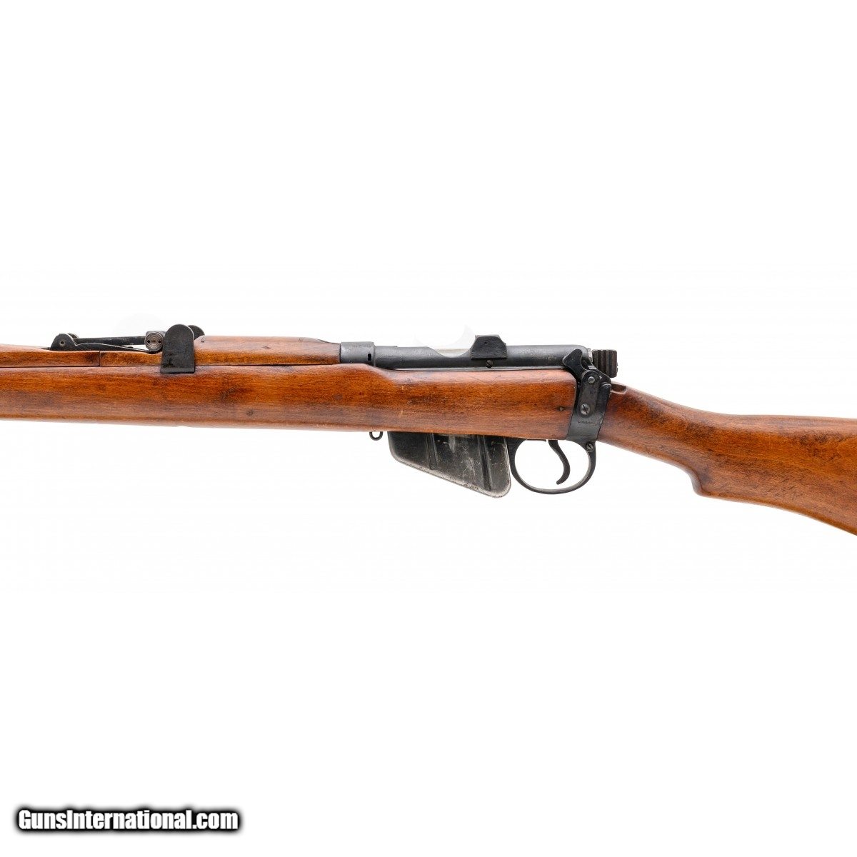 Description: " Serial No. 56705, made in 1943, .303 British, 25.25"" round barrel. Bore is bright and shiny with handsome rifling visible. Serial numbers are matching where marked. Bayonet lug has been removed. Socket is marked ""Crown/G.R/1943/Sht.I.E/III*"" with England stamped on the opposite side. Stock is very good with light handling marks. Action is smooth and functions correctly. SOLD Curio/Relic: Yes |
