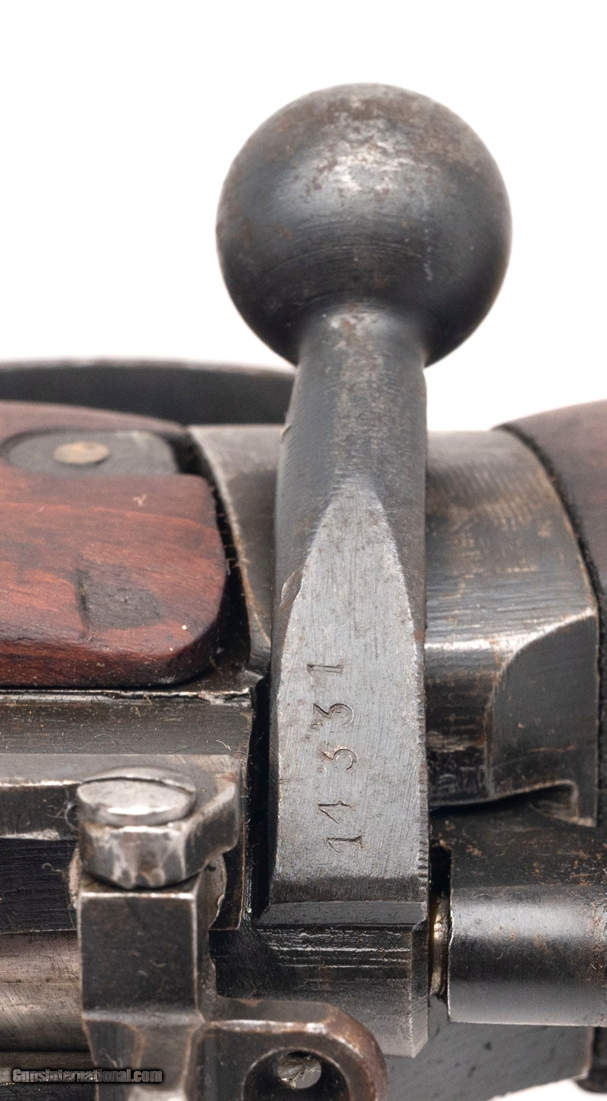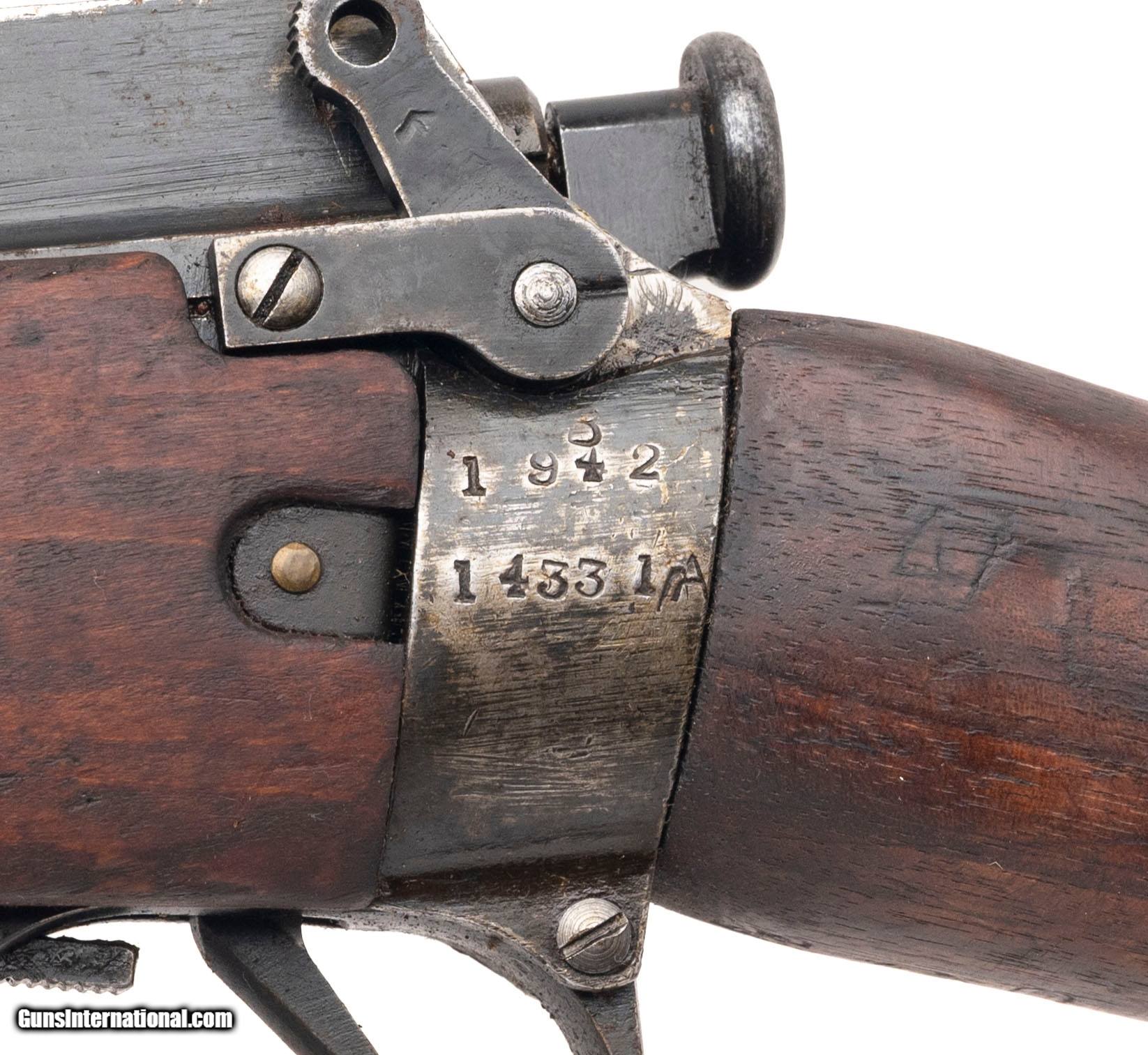 Description: "Serial No. 14331a, manufactured in 1942, chambered in .303 British with a 25"" round barrel. The bore is bright and shiny with strong rifling. Serial numbers on the bolt and receiver are matching; the magazine is non-matching. Metal surfaces show thinning to a grey patina with high-edge wear and scattered areas of oxidation. The stock exhibits expected handling marks and impressions from wartime service. Action is smooth and functions correctly. A solid, honest example of a WWII-era Enfield rifle. Curio/Relic: Yes Price: $695.00 Contact Seller |