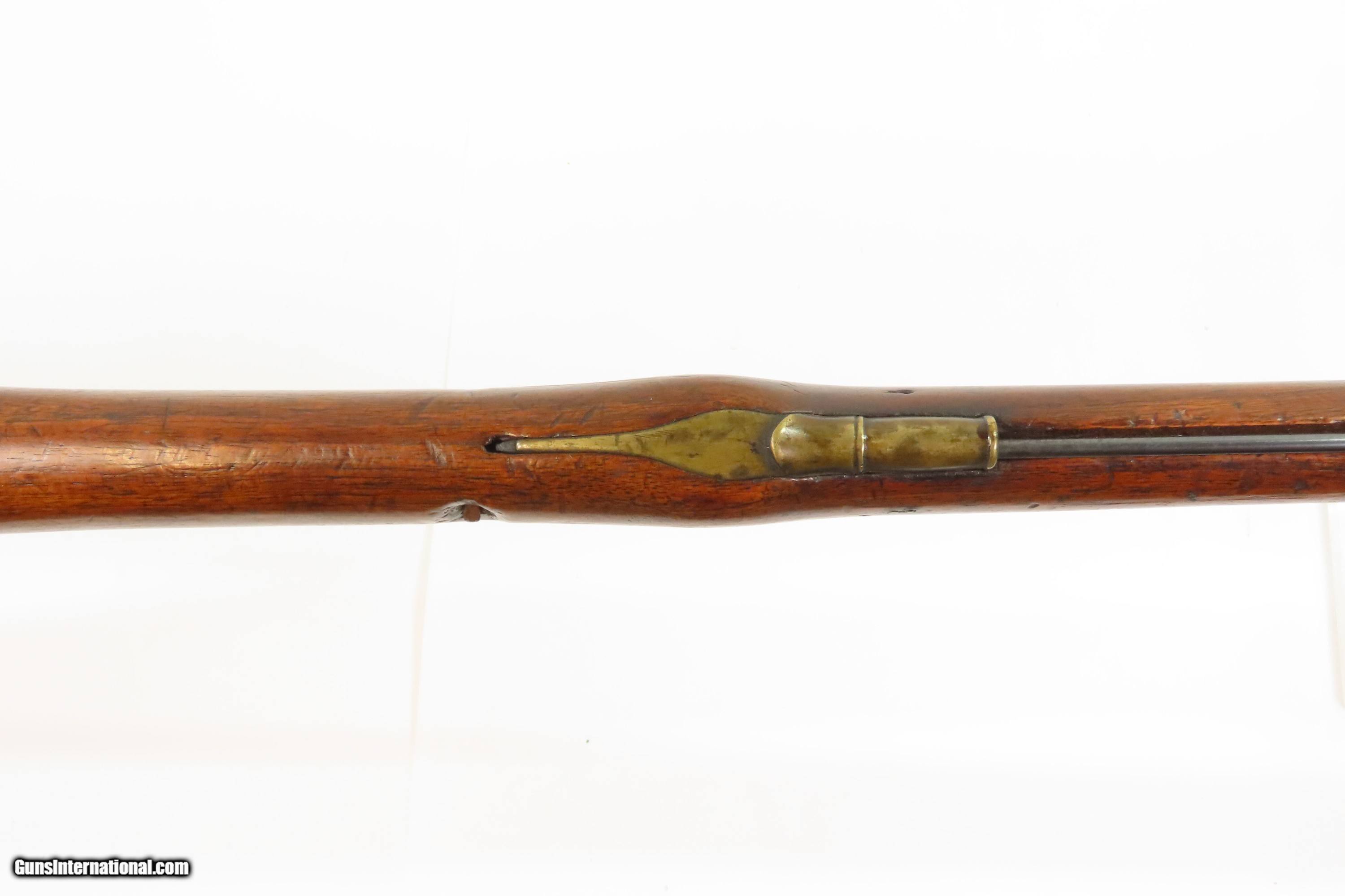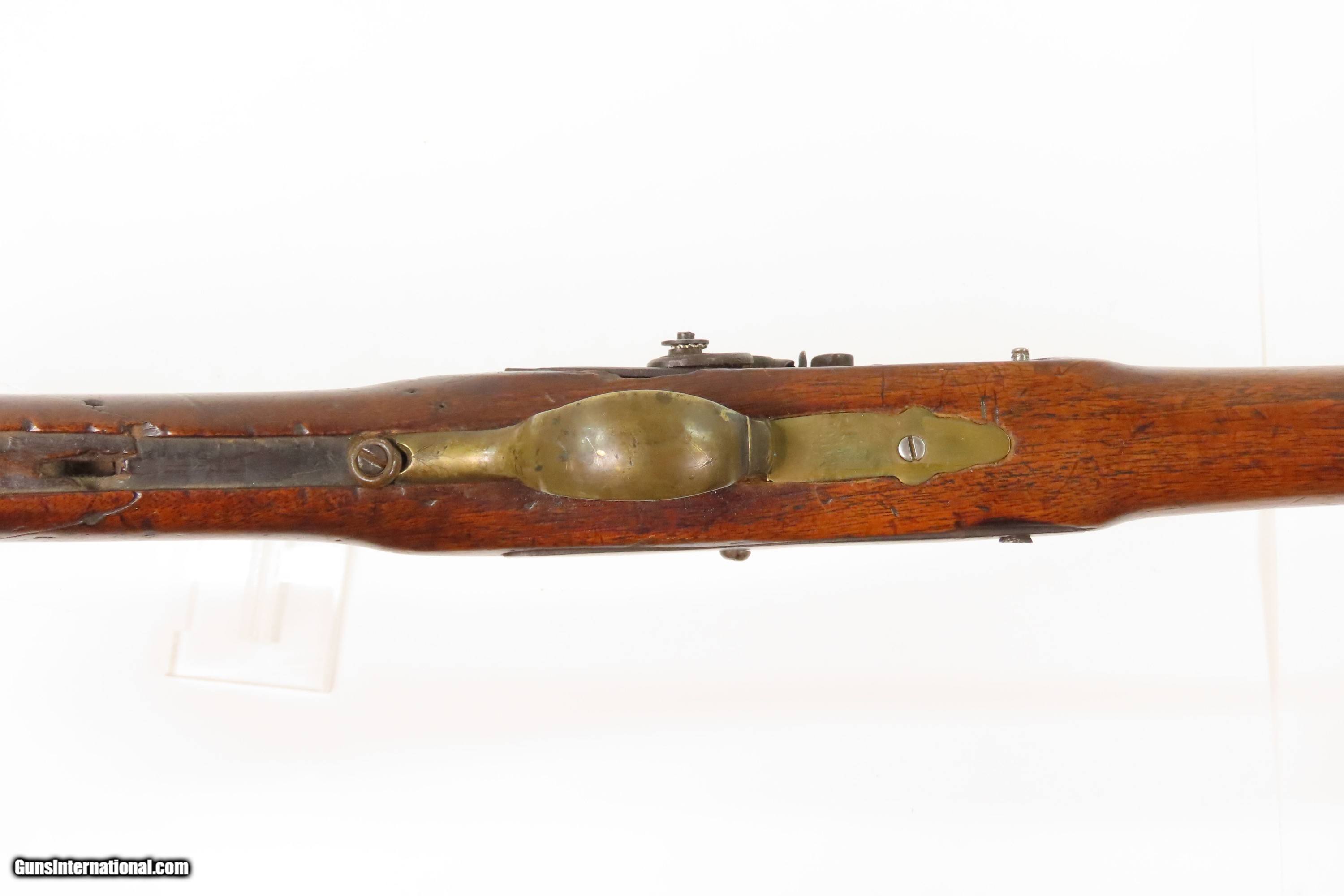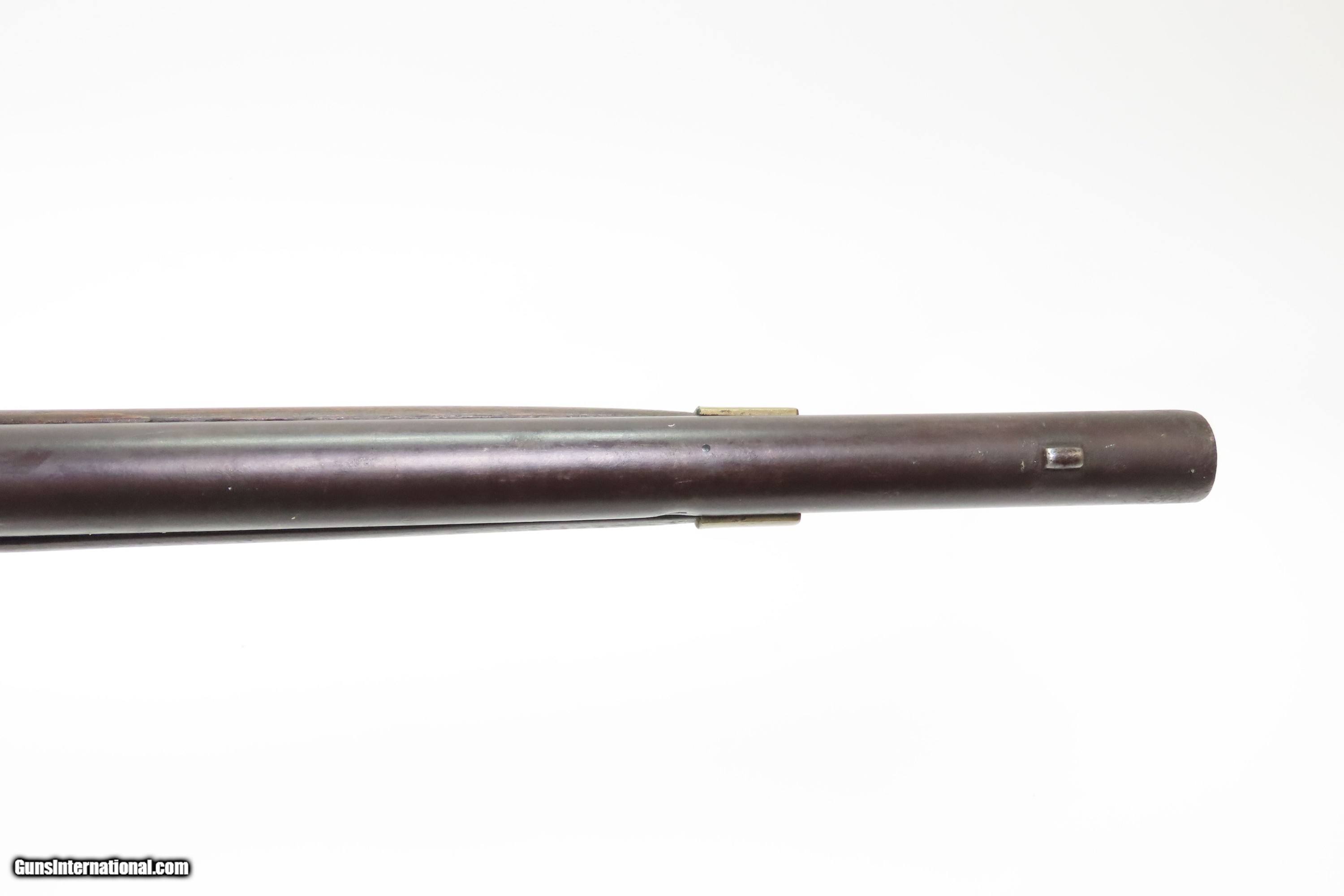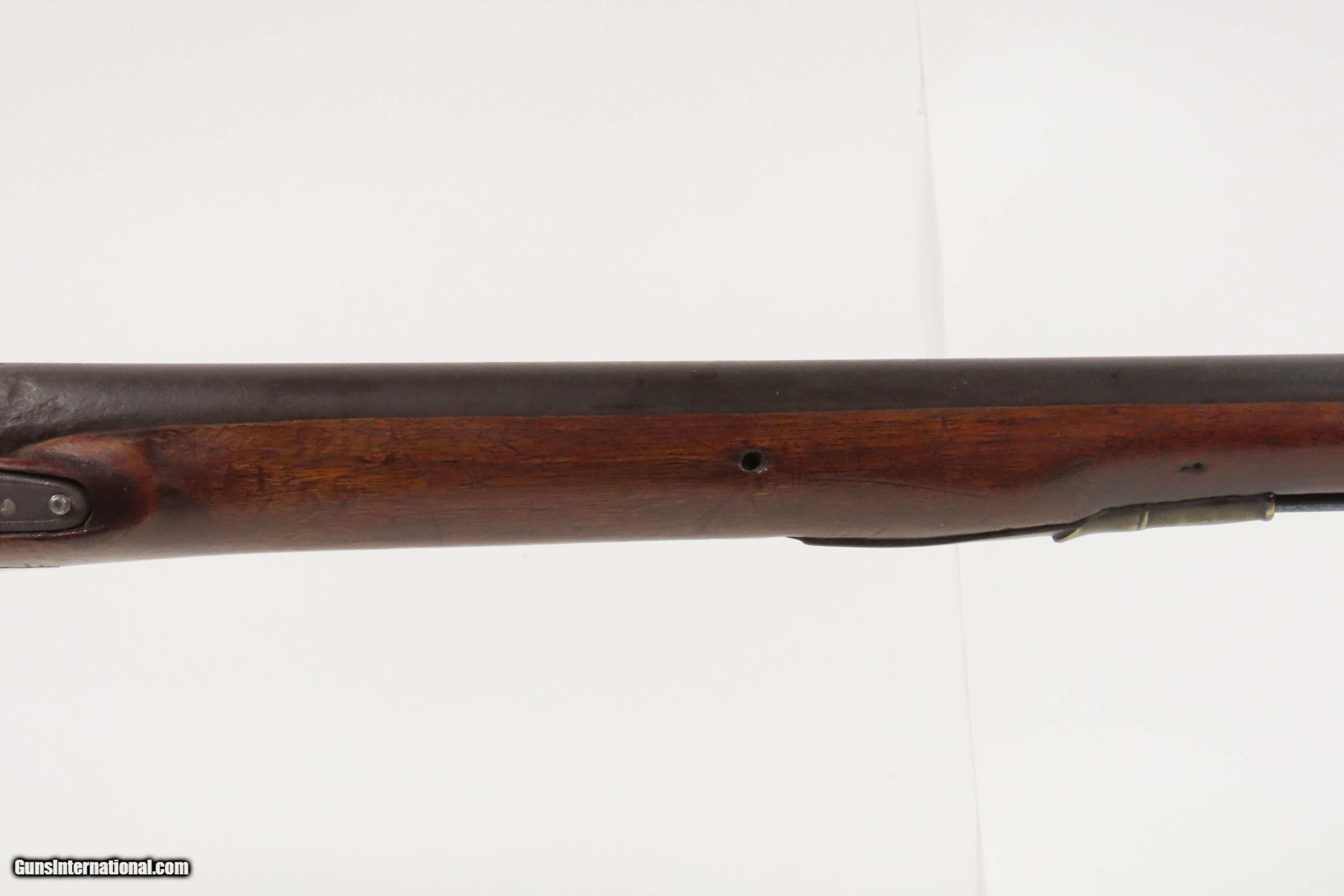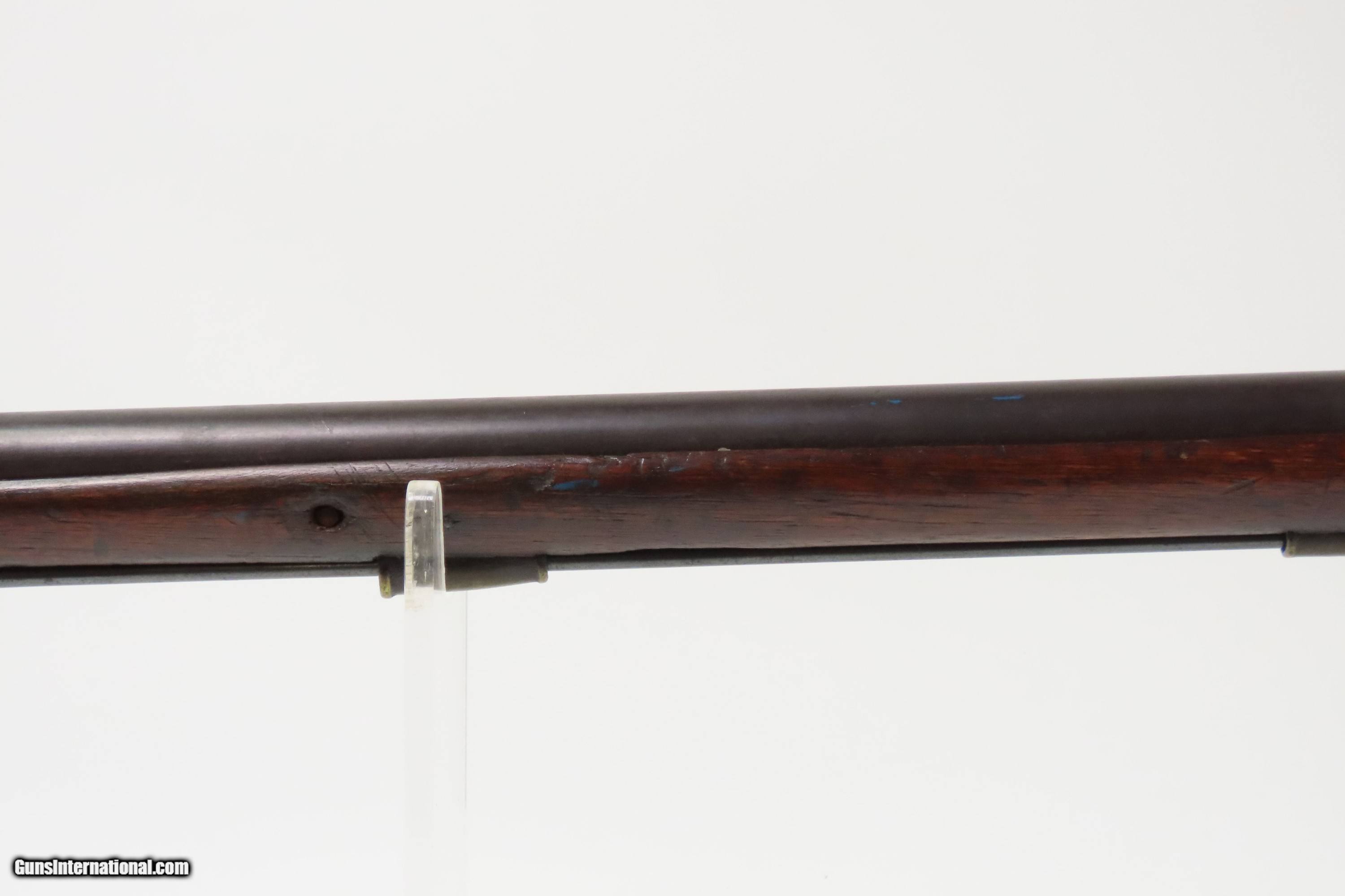 Description: BRITISH Antique India Pattern BROWN BESS .70 Percussion Conversion MUSKET BRITISH MILITARY Pattern Napoleonic Wars Musket Here we present an antique English India Pattern Brown Bess Percussion Conversion Musket made circa 1795 to 1815. This pattern is the same that fought Napoleon Bonaparte in numerous iconic battles, as well as the United States and their American Indian Allies during the War of 1812. This pattern may also correctly be called the “India Pattern” since the Honorable East India Company was the entity responsible for this update to the gun that had been around since 1722. When war with France loomed on the horizon, the British Board of Ordnance diverted these muskets from the EIC contract to supply the war effort. The success of this model can be gauged by the fact that between 1795 and 1815, nearly 3,000,000 guns were produced. Although the Birmingham gun trade was responsible for the majority of the production, the London gun trade played a part, through gun makers such as Ezekial Baker, William Parker, Thomas Reynolds, and Durs Egg. According to the London proof-house records, they and others in London were responsible for producing 845,477 muskets. The overall condition is good. Original brown patina. Good bore for its age. The action does not function as the hammer does not cock and there is no spring tension. The buttstock has been shortened, but overall remains in good shape. A portion of the trigger guard is missing. The barrel retaining screw is missing. Markings are worn. Own the original! This is a legitimate antique and not a reproduction. Barrel is 41-3/8 inches. Caliber: .70 Percussion Overall condition as seen in photos. Very Fast. Very Safe. FREE SHIPPINGWORLDWIDE. Delivered directly to your door by express mail! Guaranteed AUTHENTIC & Includes CERTIFICATE OF AUTHENTICITY. ancestryguns $1200 #250382 SOLD Antique: Yes |