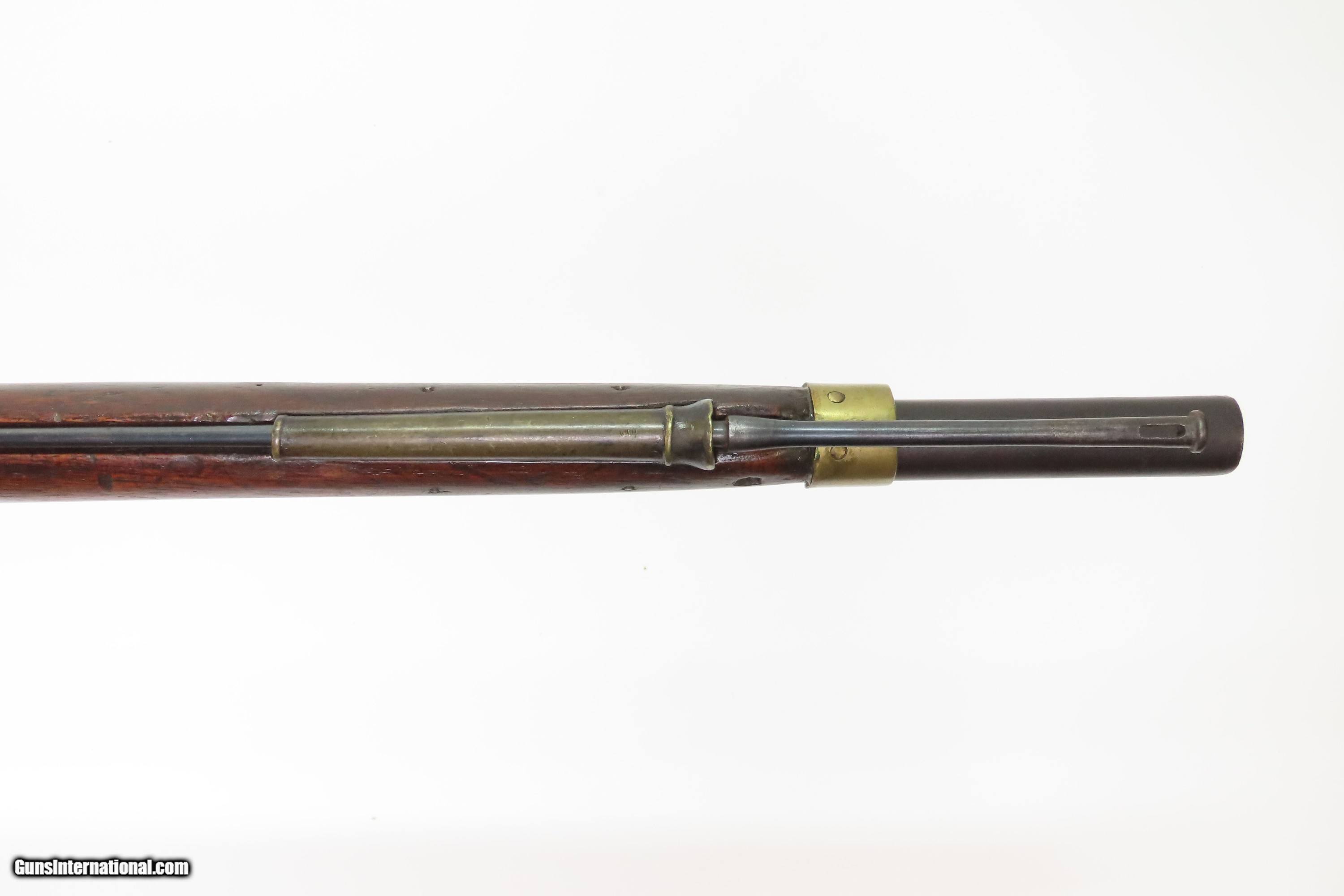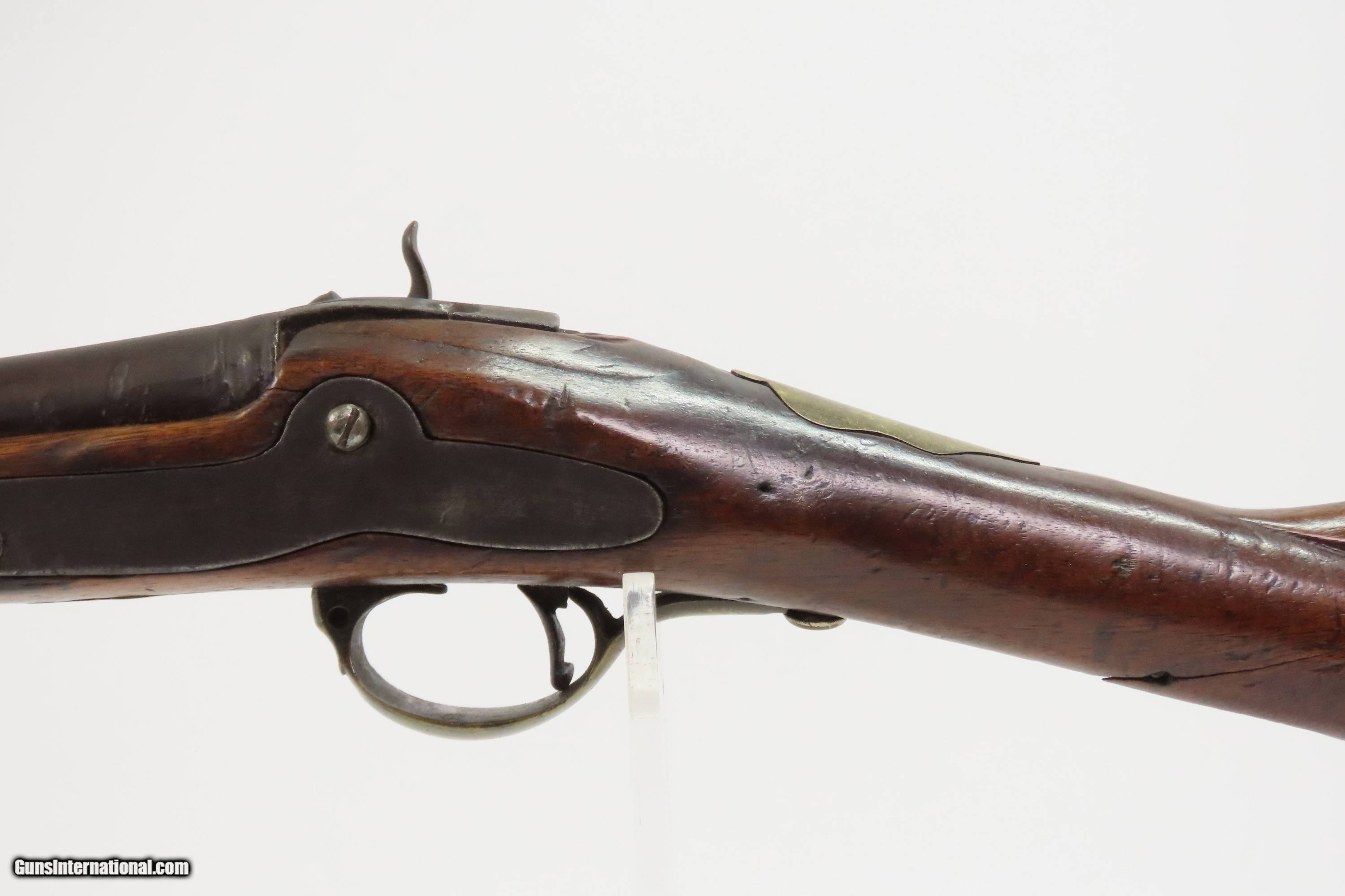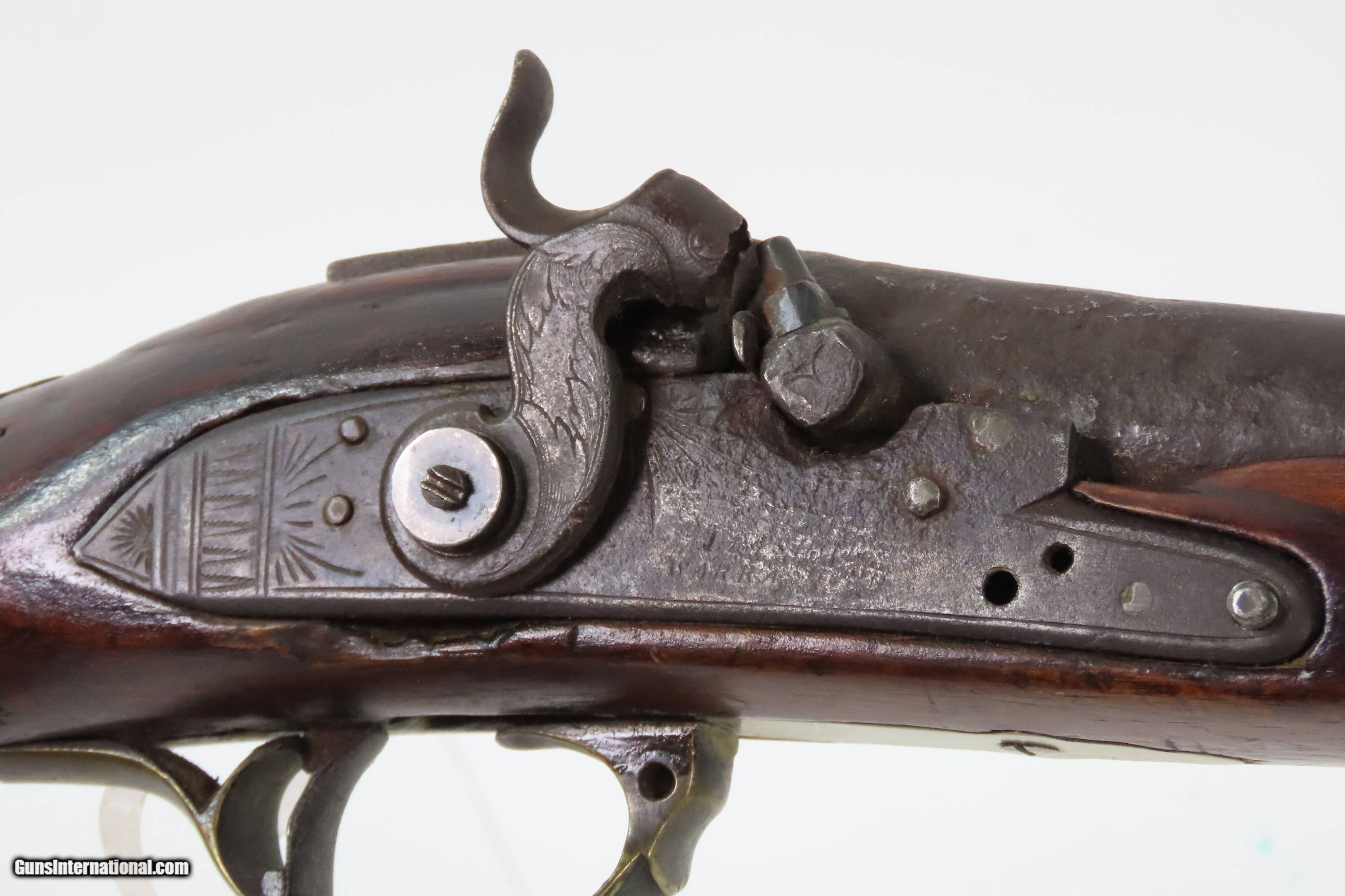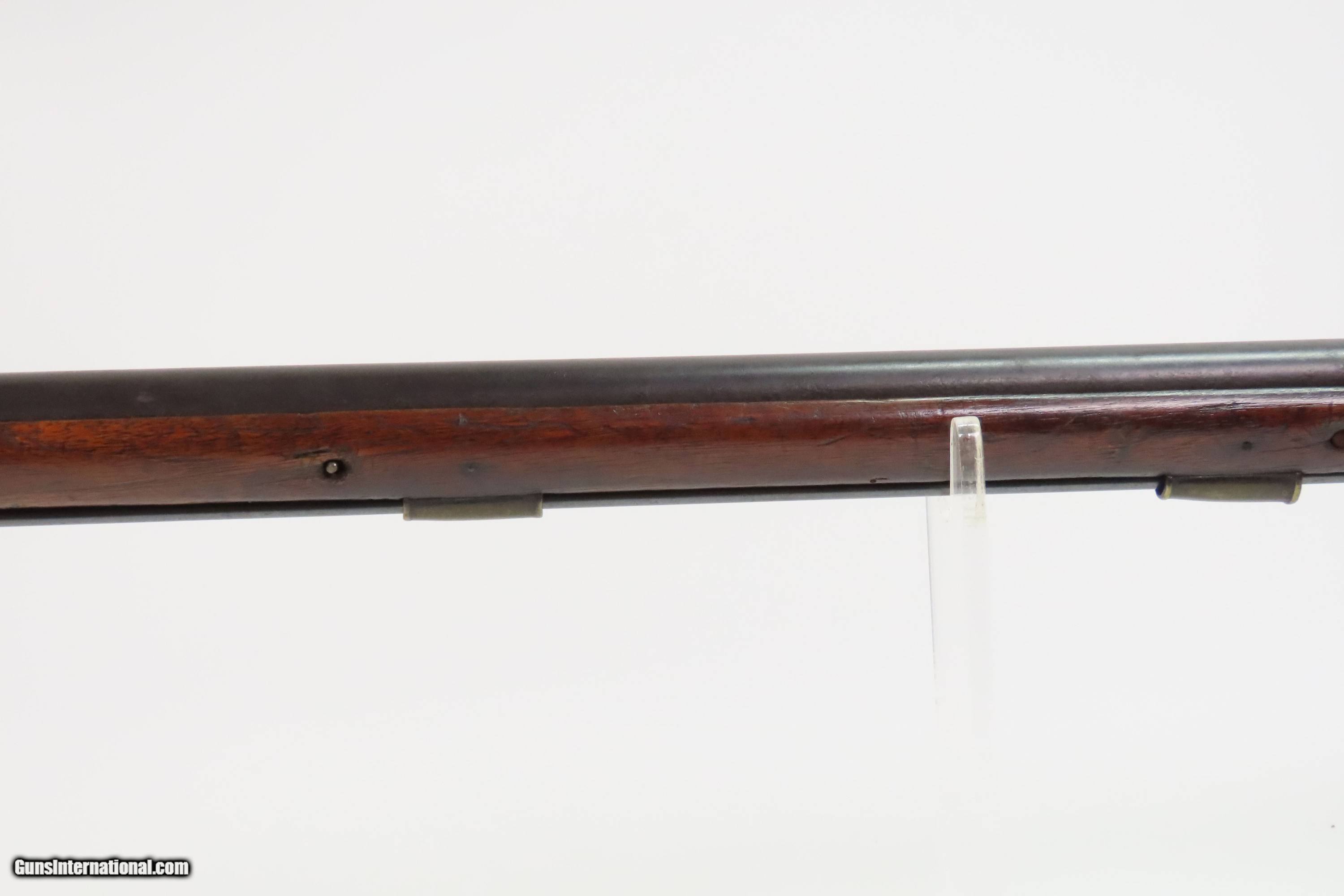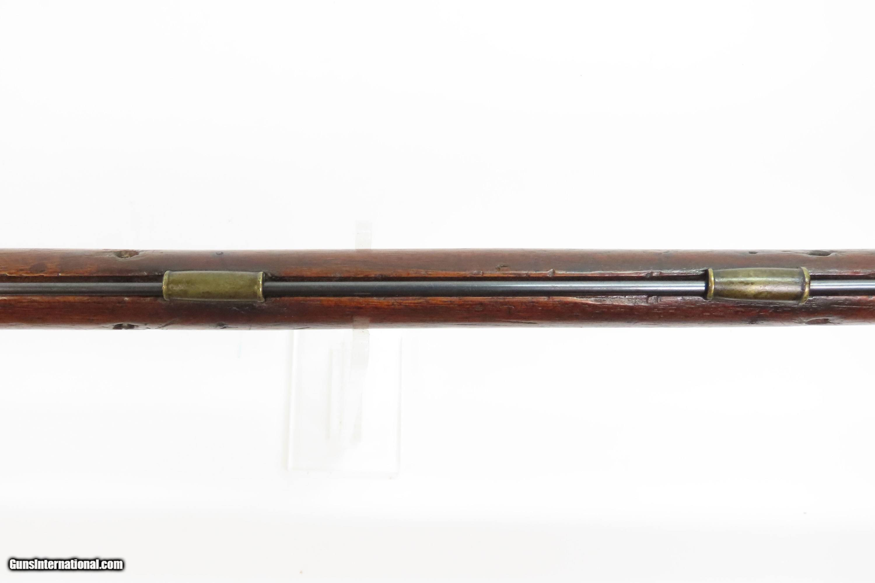 Description: BRITISH Antique India Pattern BROWN BESS .70 Percussion Conversion MUSKET BRITISH MILITARY Pattern Napoleonic Wars Musket Here we present an antique English India Pattern Brown Bess Percussion Conversion Musket made circa 1795 to 1815. This pattern is the same that fought Napoleon Bonaparte in numerous iconic battles, as well as the United States and their American Indian Allies during the War of 1812. This pattern may also correctly be called the “India Pattern” since the Honorable East India Company was the entity responsible for this update to the gun that had been around since 1722. When war with France loomed on the horizon, the British Board of Ordnance diverted these muskets from the EIC contract to supply the war effort. The success of this model can be gauged by the fact that between 1795 and 1815, nearly 3,000,000 guns were produced. Although the Birmingham gun trade was responsible for the majority of the production, the London gun trade played a part, through gun makers such as Ezekial Baker, William Parker, Thomas Reynolds, and Durs Egg. According to the London proof-house records, they and others in London were responsible for producing 845,477 muskets. The overall condition is good. Original brown patina. Good bore for its age. The action does not function as the hammer does not cock and there is no spring tension. The buttstock has been shortened, but overall remains in good shape. A portion of the trigger guard is missing. The barrel retaining screw is missing. Markings are worn. Own the original! This is a legitimate antique and not a reproduction. Barrel is 41-3/8 inches. Caliber: .70 Percussion Overall condition as seen in photos. Very Fast. Very Safe. FREE SHIPPINGWORLDWIDE. Delivered directly to your door by express mail! Guaranteed AUTHENTIC & Includes CERTIFICATE OF AUTHENTICITY. ancestryguns $1200 #250382 SOLD Antique: Yes |