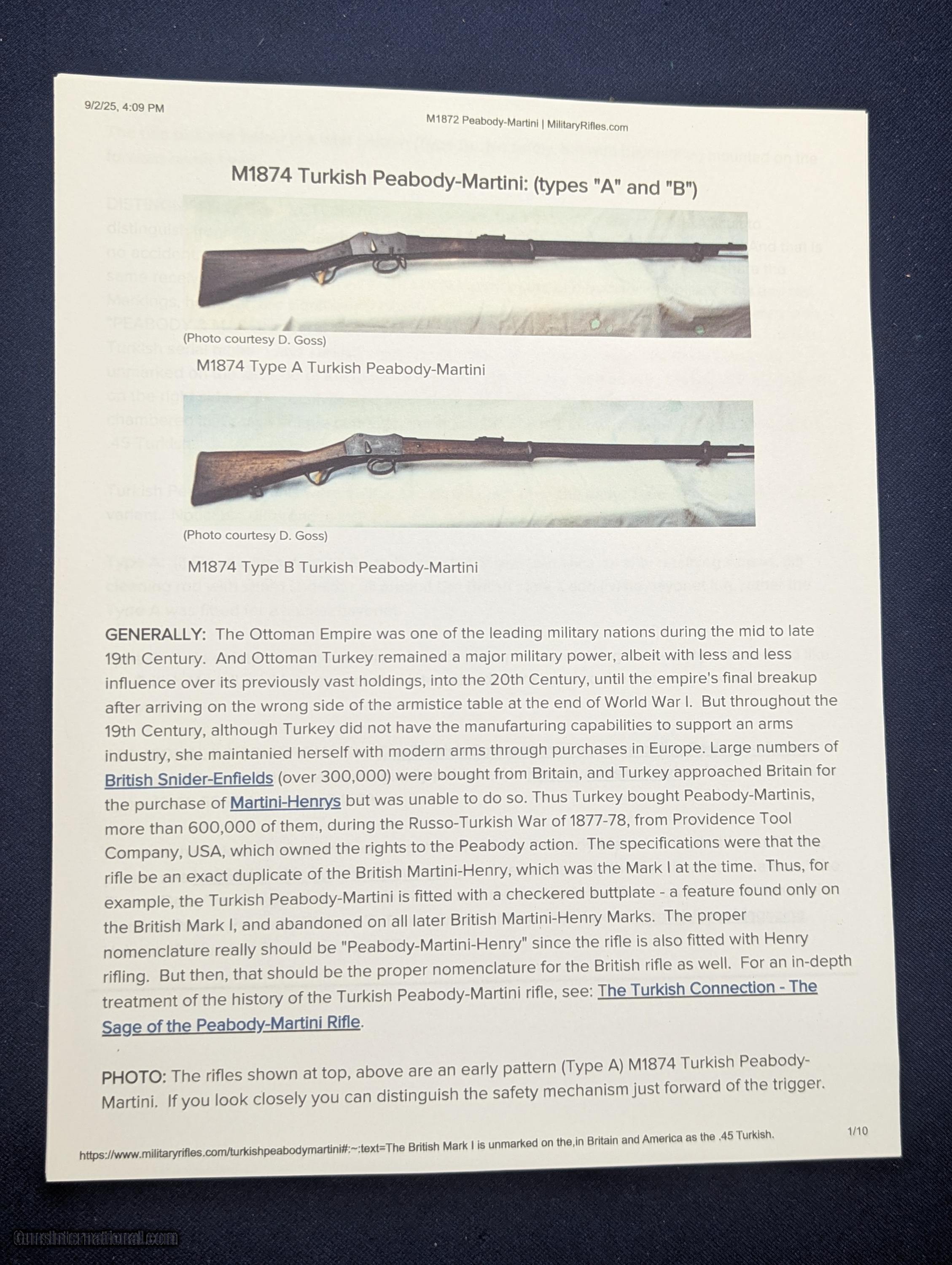 New Addition Historic Turkish Peabody-Martini Military Rifle W/British Mkgs