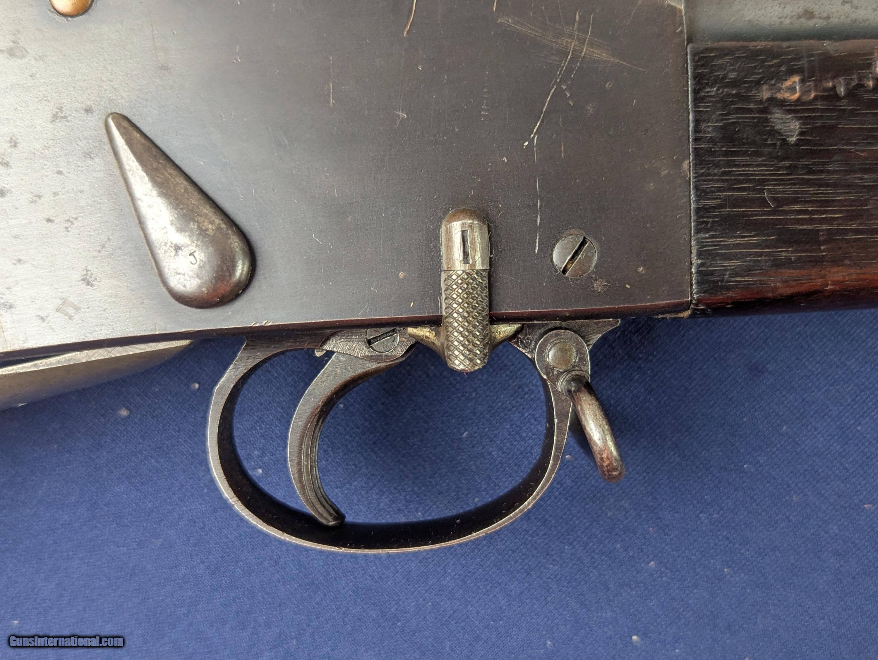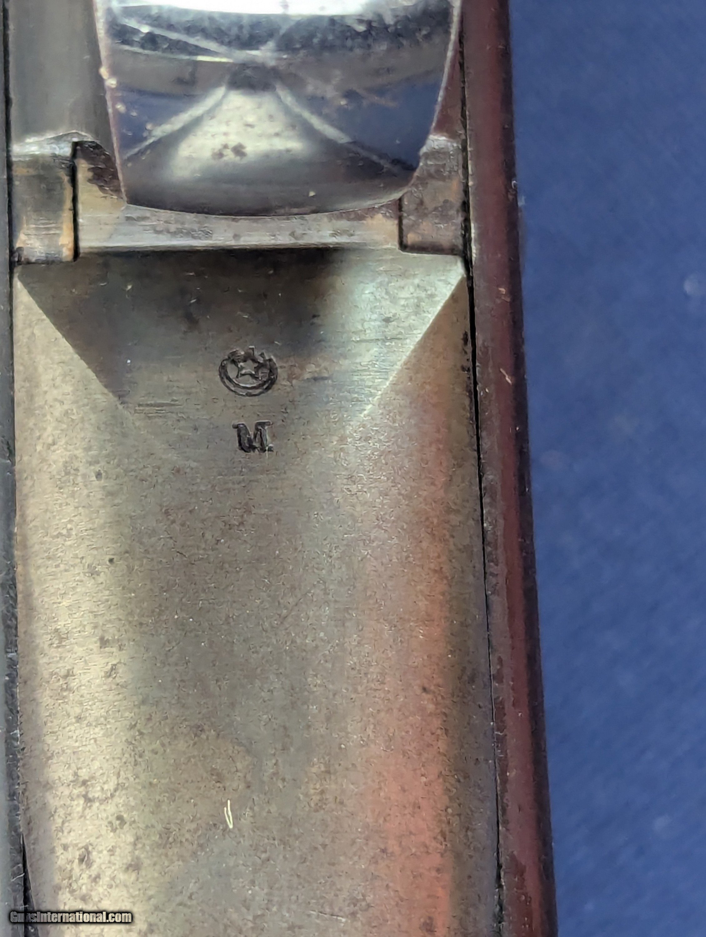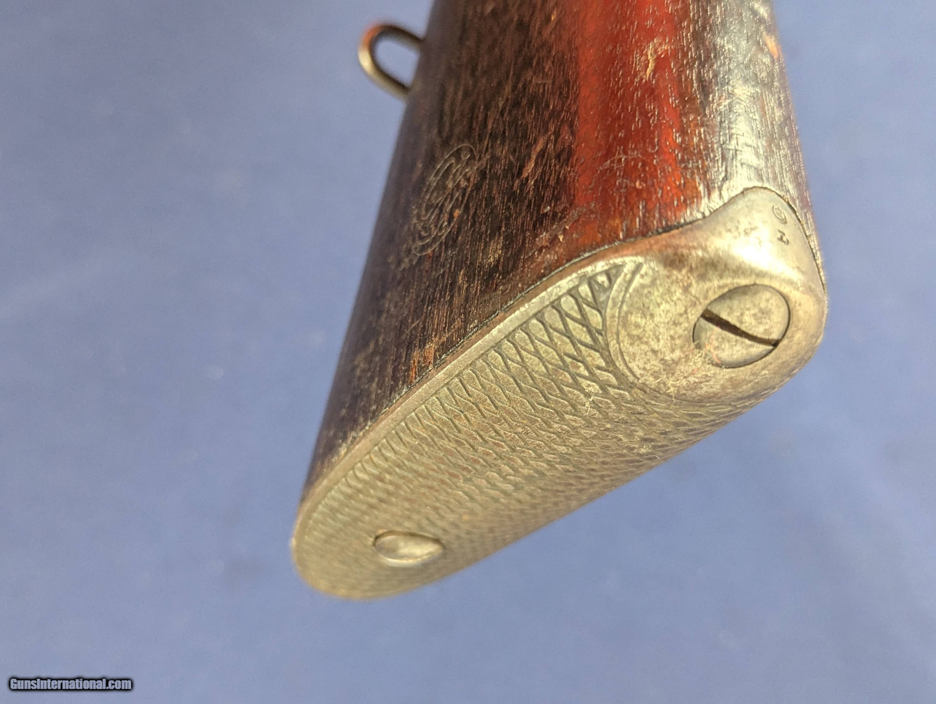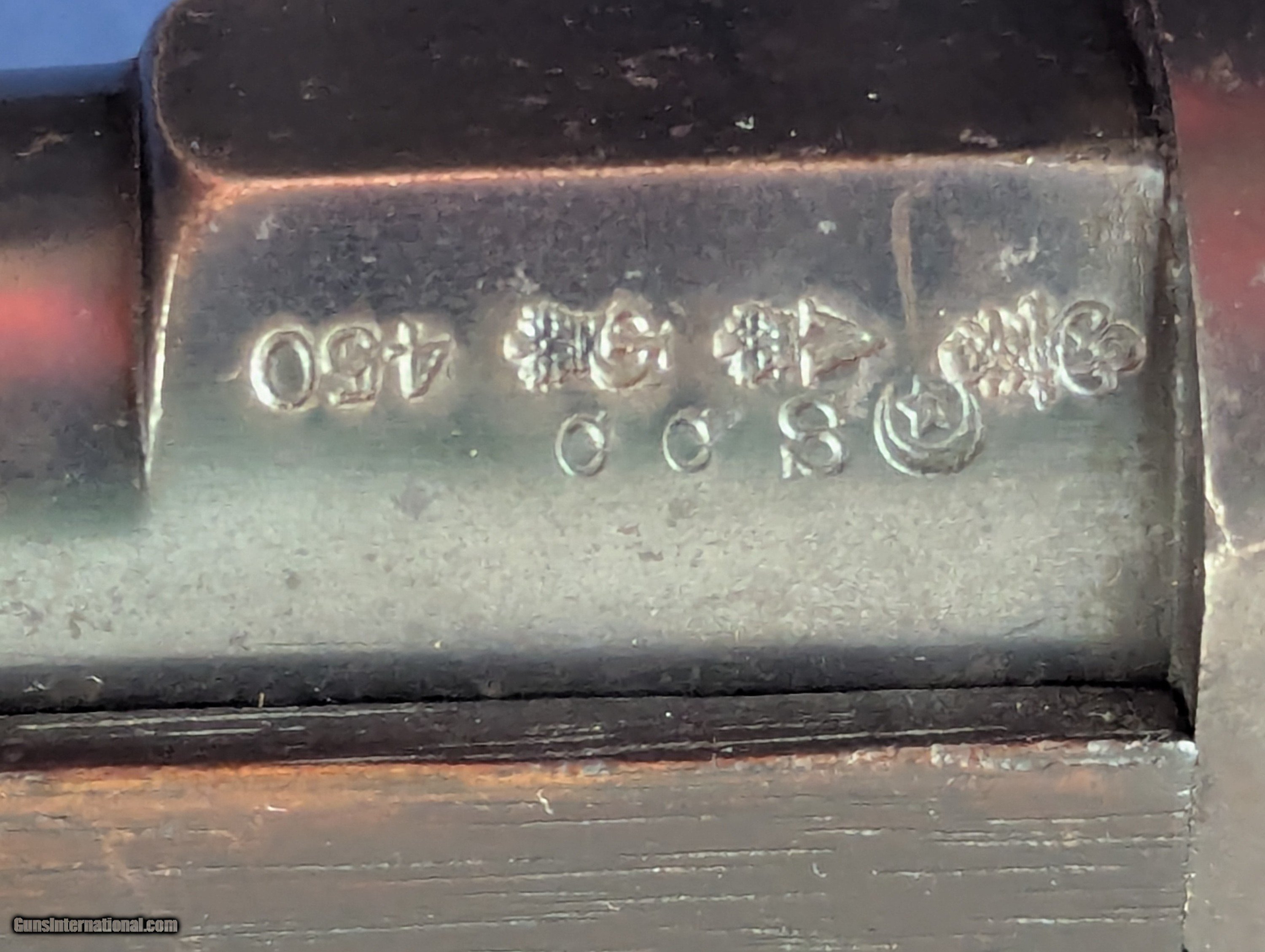 Description: New Addition Historic Turkish Peabody-Martini Military Rifle Offered here for sale and just acquired is this classic historic Peabody-Martini military rifle made by Providence Tool Co, USA. This unusually marked Martini is a Turkish Model 1874 Peabody-Martini which collectors term as a "Type A" Model. It has both British and Turkish markings overall and is original and untouched. In the early 1870s, the Ottoman Empire wanted to modernize its infantry small arms. They were interested in the British service rifle, the Martini?Henry, but for various diplomatic or contractual reasons were unable to procure enough from Britain. The Providence Tool Co. (of Providence, Rhode Island, USA) acquired the contract (or subcontract) to produce what are often called Peabody?Martini rifles for Turkey. Winchester had held earlier rights but sold/transferred the contract to Providence Tool in 1873. The contract called for a large number of rifles – some 600,000 were ordered. Turkey was to receive rifles built to very similar specifications to the British Martini?Henry Mk I, but chambered for a Turkish design cartridge. What makes the Turkish Model 1874 Peabody?Martini distinct is that these rifles mimic the British Martini?Henry Mk I very closely in external form, but differ in a few respects: FeatureTurkish Peabody?Martini (esp. 1874 “Type A”)British Martini?Henry Mk IAction / Falling blockSame basic action: falling block of the Enfield / Martini style, Peabody?Martini version by Providence Tool. Caliber / CartridgeChambered in 11.3×59R (or sometimes cited as 11.3×55R) “.45 Turkish” cartridge — a black powder rimmed cartridge distinct from the British .577?450. Barrel, sights, buttplateSame general layout; checkered buttplate (which the Turks copied from the British Mark I). Rear sights graduated in Turkish numerals. Stocked black walnut etc. Three sling swivels. MarkingsOn the left side of the receiver: “PEABODY & MARTINI PATENTS / MAN’FED by PROVIDENCE TOOL CO. PROV. R.I. U.S.A.” On the right side: Turkish inspection marks. Because Turkey explicitly wanted a rifle that looked like the British Martini?Henry Mk I, they specified that the design should match it closely, including external features: checkered buttplate, sling swivel locations, safety (in early models), etc. Thus many external “British style” attributes appear. But the rifles were manufactured in the USA, with Turkish inspection, and with Ottoman markings added, so they are hybrids: design echoing British, manufacture American, service Turkish. However THIS SPECIMEN CARRIES BRITISH INSPECTOR MARKINGS AS WELL AND ALTHOUGH CHAMBERED FOR .45 TURKISH CATRIDGE IT IS STAMPED “.450”. These rifles were used in the Russo?Turkish War (1877–78) among others. They remained in Turkish / Ottoman arsenals for many decades, including through World War I in certain units (reserve, rear line, etc.). The large contract with the Ottoman Empire was very important for Providence Tool Co. But because Turkey defaulted on payments (delays, non?payment), Providence Tool had serious financial trouble.These financial strains are among the reasons the company eventually ceased production of the Peabody?Martini rifles (by circa 1879) and later went under. This specimen again is ALL ORIGINAL and although overall there are many storage/use marks the rifle retains the large majority blue on barrel and receiver, the markings are sharp on metal and the inspectors cartouches in wood are beautiful. Excellent bore. The rifle also comes with a muzzle cover with British markings. For the British arms collector and especially the Martini collector this is a very fine arm with sports BOTH British ands Turkish markings. An untouched specimen it should be a welcome addition in any collection. Thanks for your bid. Shipping for this item is $42 however final shipping amount is based upon geographical area. Handling is $18.00 for longarms only. We gladly accept money orders, bank checks and personal checks. Credit card orders (VISA AND MASTER CARD ONLY) charged 3.95% additional for use. PLEASE CALL DALIA AT 203-257-5256 TO GIVE CREDIT CARD INFORMATION. Also, please view our at hansenguns. Click on "Online Catalog" and see All OF OUR ITEMS LISTED CONSECUTIVELY on or search online on that site with the ID “lope”...... OFFERED ONLINE AND AVAILABLE IN OUR RETAIL GALLERY IN SOUTHPORT, CT. 244 Old Post Road 06890. Visit us also on Facebook at ://facebook/hansenguns/?fref=ts. We also own and/or operate Hansen Cartridge Co. and the Ruger Collectors Assc.(RCA). Hansen & Hansen wishes to expedite each order received, however we ship 80-100 items weekly, therefore orders paid by money orders or bank checks are cleared for shipping 5-7 days after deposited funds show in our account. Shipping date is scheduled ONLY AFTER VERIFICATION TAKES PLACE AND FFL/C&R IS RECEIVED (IF APPLIES). This is 5-7 days after WE receive order by mail - NOT customer date mailed and postmarked and after credit card funds are posted. Credit card orders exceeding $500 must be cleared through customer’s bank before shipping. Personal checks are accepted but orders are held UP TO 3 WEEKS after deposit of funds before items released for shipping. IF you have special instructions or require overnight or expedited shipping please advise at time of ordering and we will gladly prioritize shipping FOR AN ADDITIONAL CHARGE. THIS IS OUR POLICY and we encourage buyers to PLEASE READ AND UNDERSTAND OUR POLICY BEFORE . We would be pleased to answer ANY questions by phone (our toll free number is 1-800-571-7337 or e-mail cwlopiaol SOLD Antique: Yes Rifle Caliber: .45 |