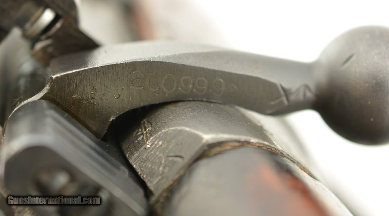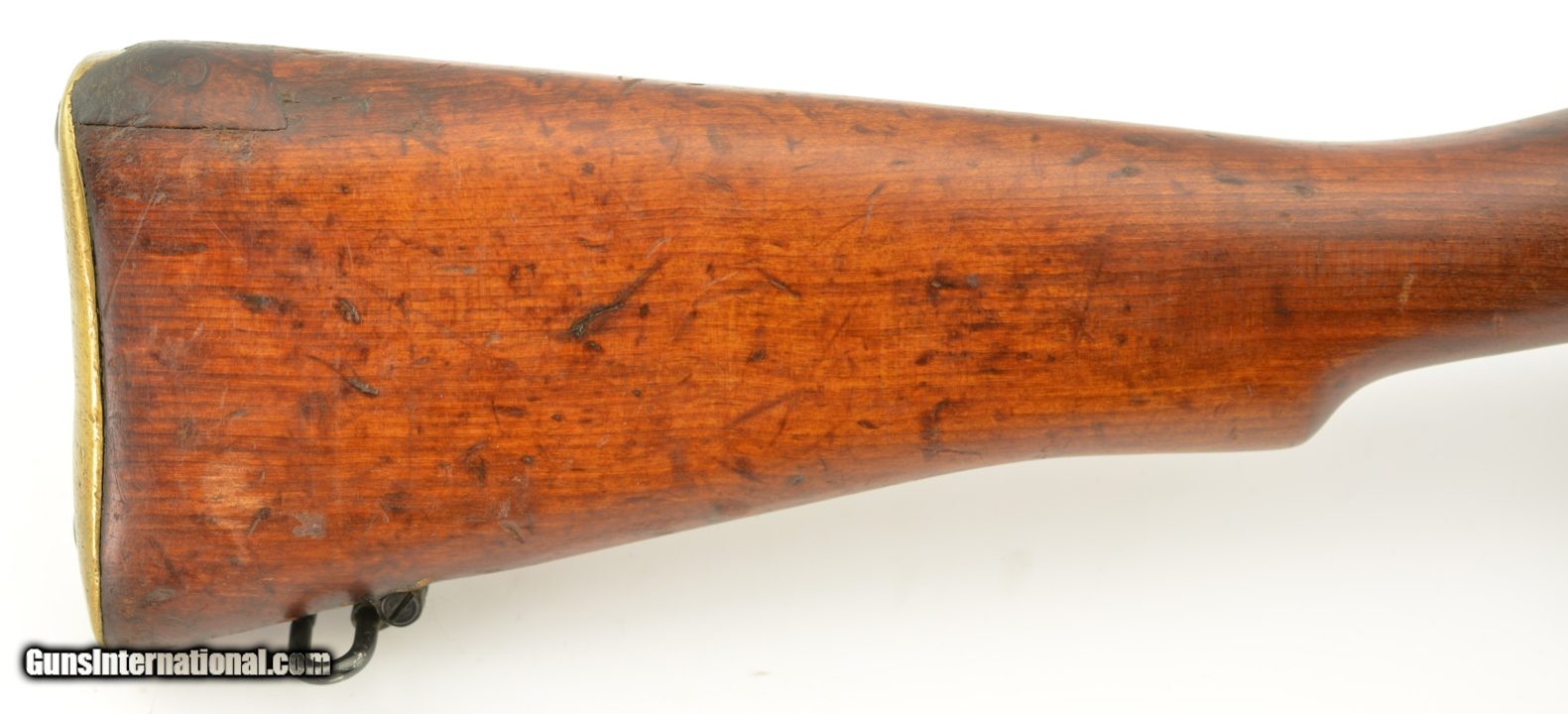 Description: Serial #2C0999, .303 British, 25" barrel with an excellent, bright bore. This is an early production, "US PROPERTY"-marked, 1942-dated rifle, made to Mk. 1 specs. The metal retains 90-92% of the original blue, with some mild fading at the muzzle, as well as along the high edges and projections. Additionally, some of the components retain their black Suncorite finish which has flaked to gray on a few spots. The matching bolt has some further fading on the handle, with streaks of blue along the body, and is fitted with a late type grooved cocking-piece. A Mk. 1 rear sight is fitted as well. The walnut buttstock, forend, and handguards are in fine shape with some minor handling marks and surface blemishes scattered about the reapplied military oil finish. Armory repairs are also present on the rear handguard. All of the markings are still visible, although some are a bit faint. A single non-matching magazine is also included, and there are small, unobtrusive import stamps at the muzzle. This is a rare, very early Savage-Stevens No. 4, and is in fine-excellent condition overall. FFL or C&R SOLD Curio/Relic: Yes |