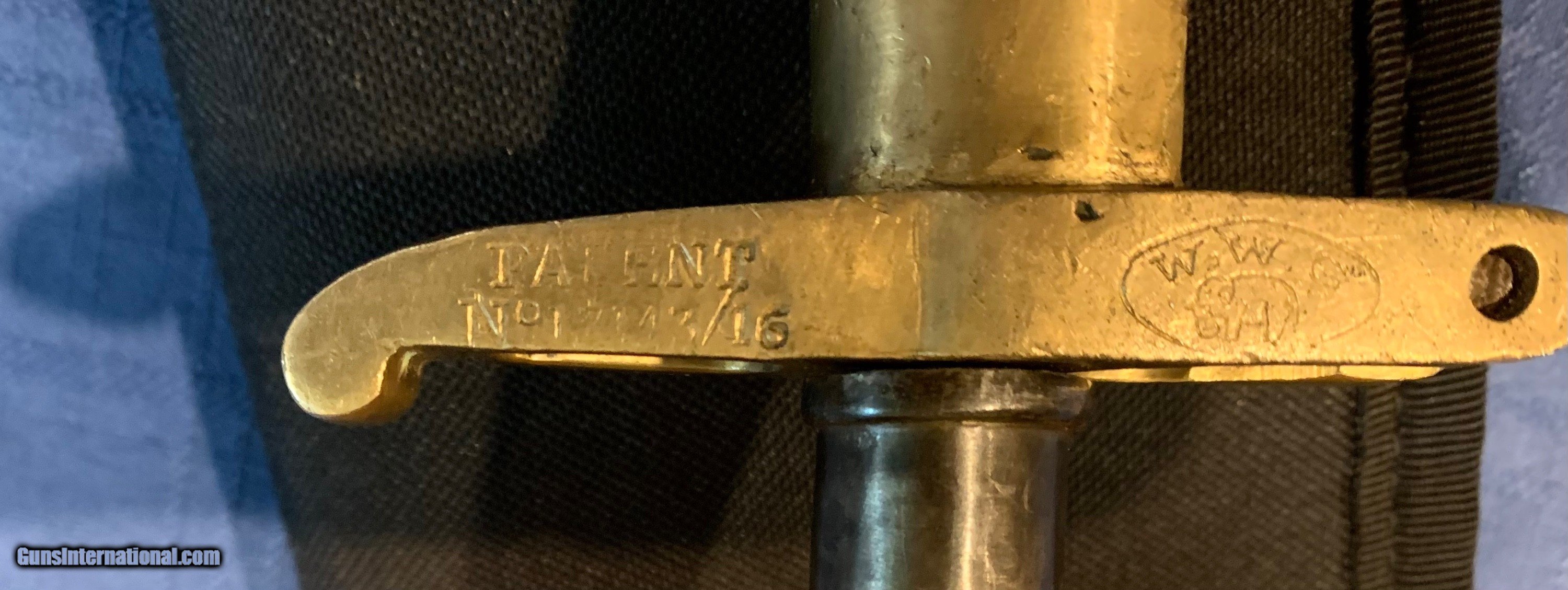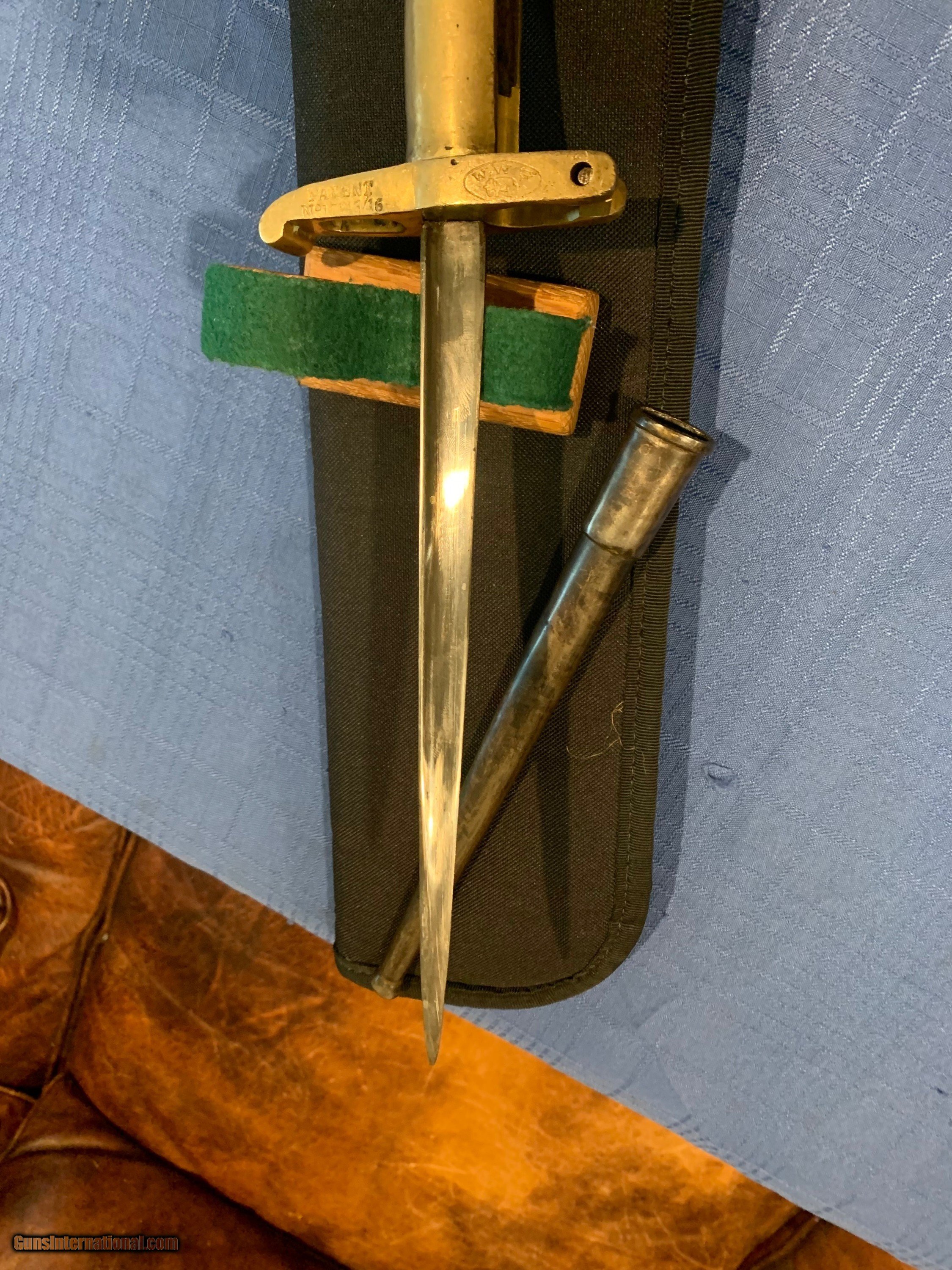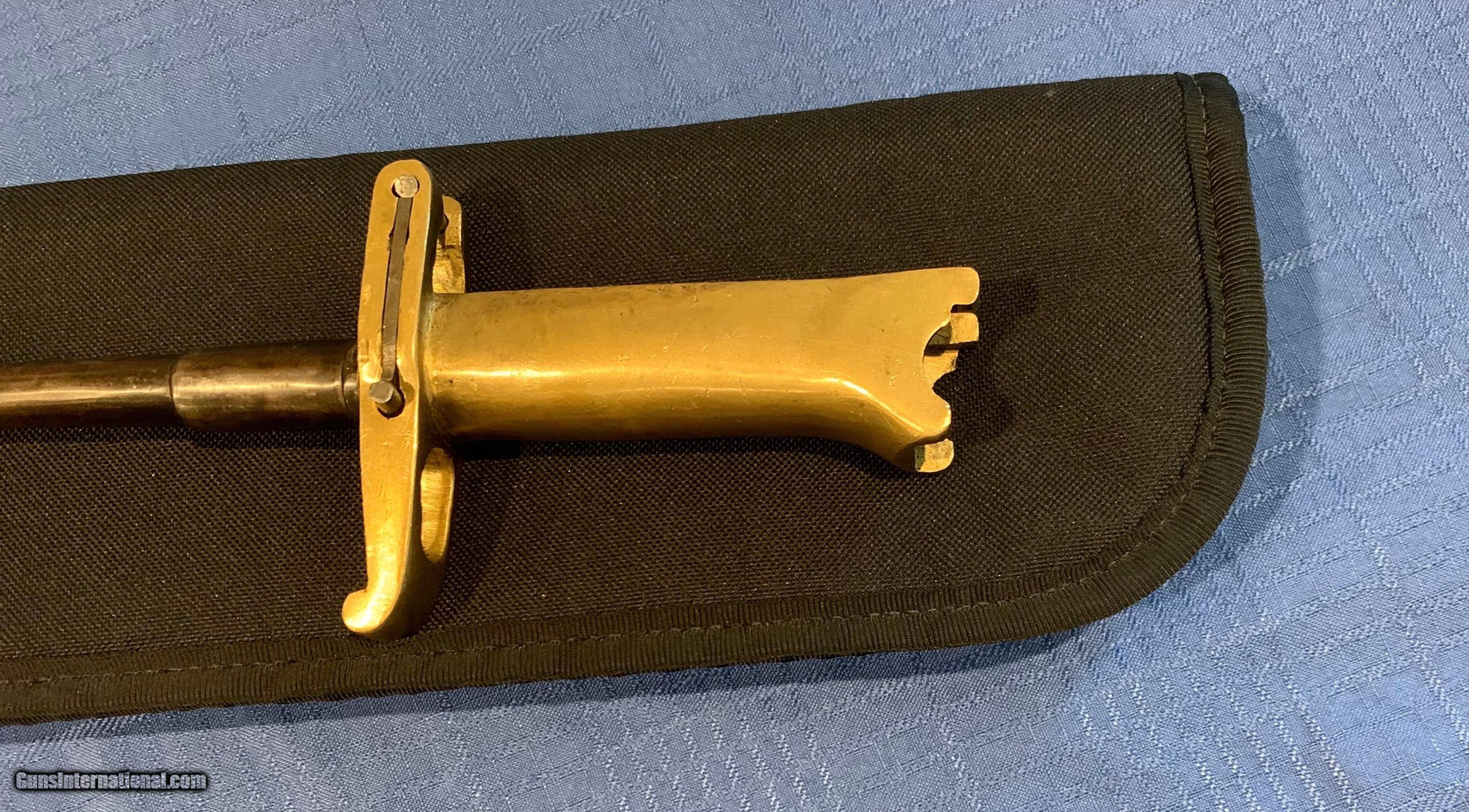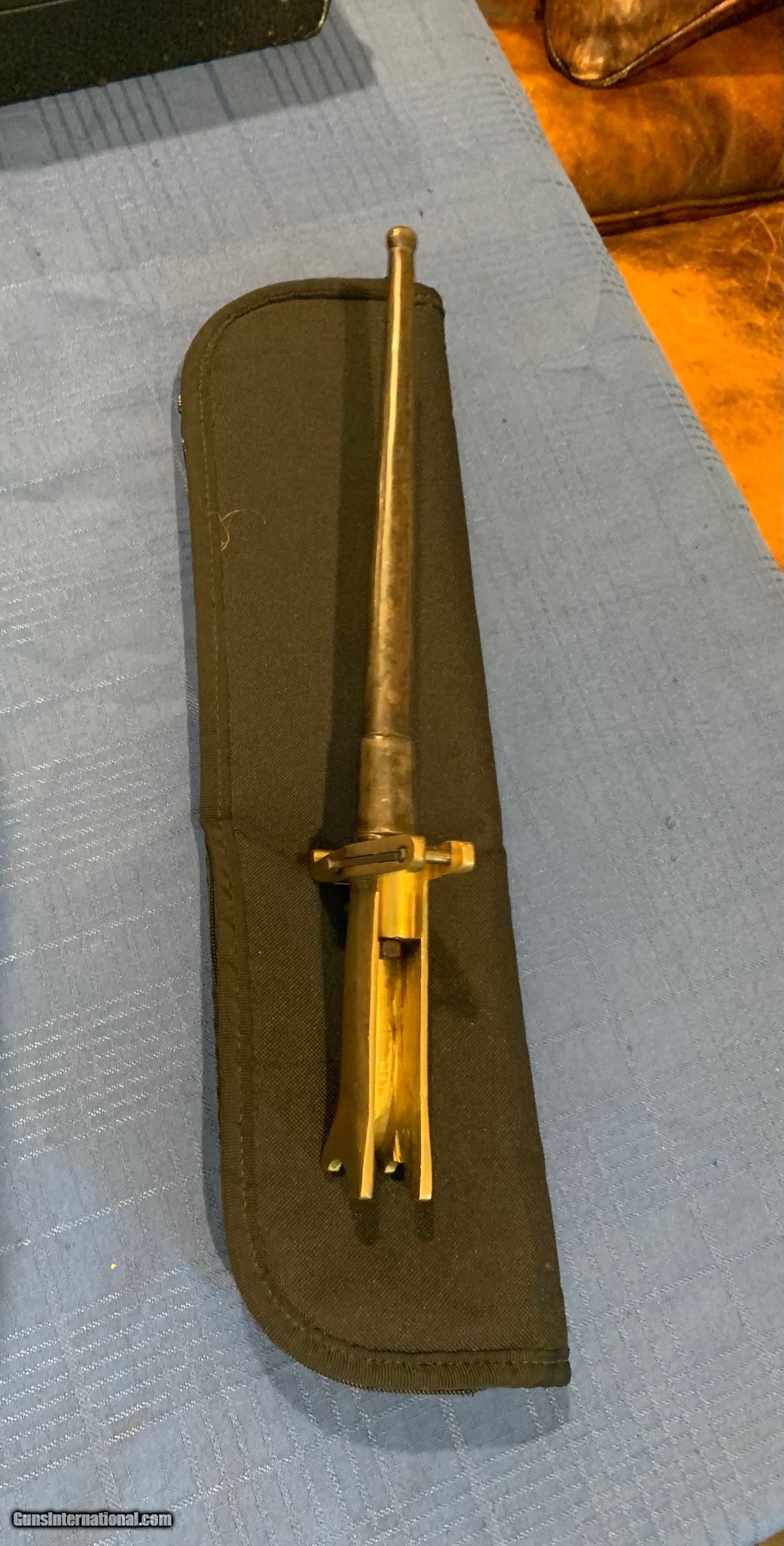 Description: Here's a very rare item ! Webley Mk 1-6 Prichard Bayonet ! Bayonet is in excellent original condition ! Original not a Reproduction. Handle is made of Brass. the blade and scabbard are made of steel ! Blade is in excellent condition ! Bayonet Overall in excellent used condition! The blade is correctly marked by maker ! Great edition to a Webley Collection! Collector Grade Condition ! Please review my photos and email me with any questions ? 3 Day Inspection as allways! Thank you for looking, Little Jo SOLD Antique: Yes Handgun Caliber: .455 Webley (.455 Webley Mk I, .455 Revolver, .455 Colt, .455 Colt Mk I, .476 Enfield, .476 Eley, .476/.455) Manufacturer: Webley Model: Prichard Bayonet Condition: Excellent |