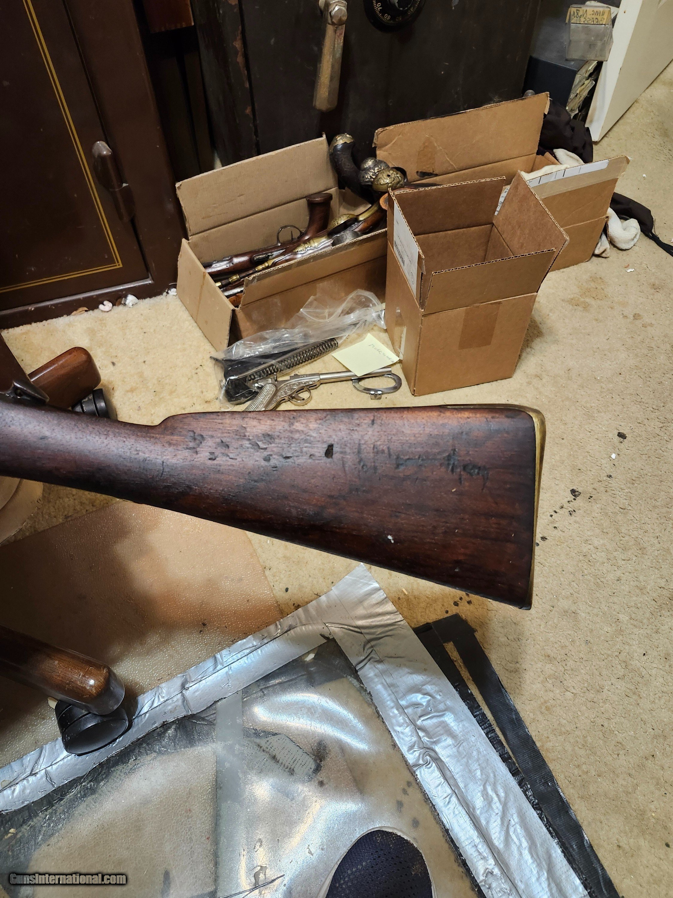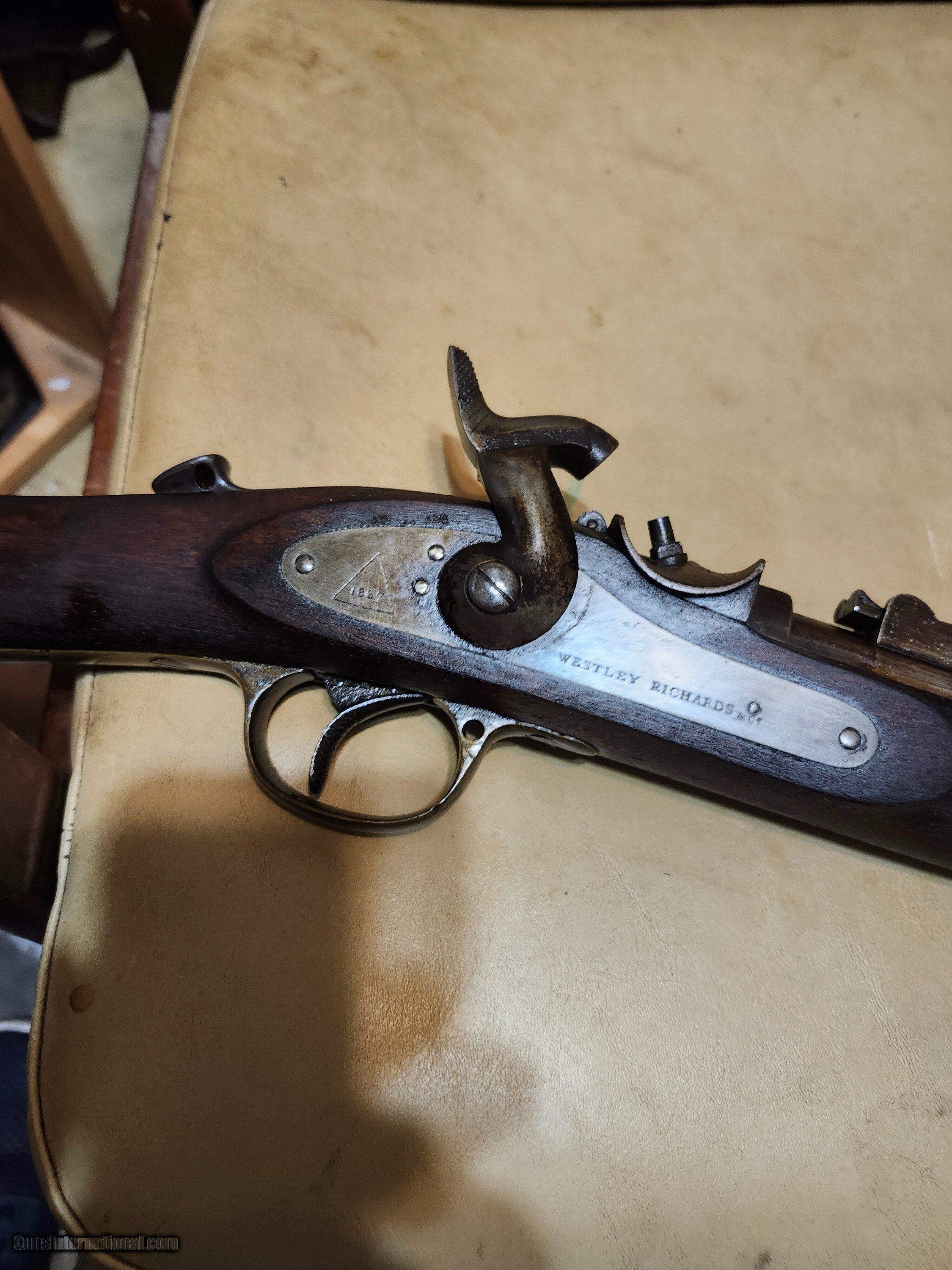 Description: replaced ram rod ./ missing trggerguard sling swivel/ ex shiney bore / works fine in dry fire / solid stock oil stained with normal handling marks / westley richards 1867 marked lock / no pitting on gun just patina finish condition////// $59 sh Antique: Yes Manufacturer: westley richards Model: money tail Price: $1,585.00 Contact Seller |