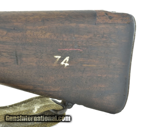 Description: Eddystone P14 .303 British caliber rifle. WWI British military rifle. Downgraded to a drill rifle. Receiver and barrel band are “D.P.” marked (Drill purpose). Not Safe To Shoot!