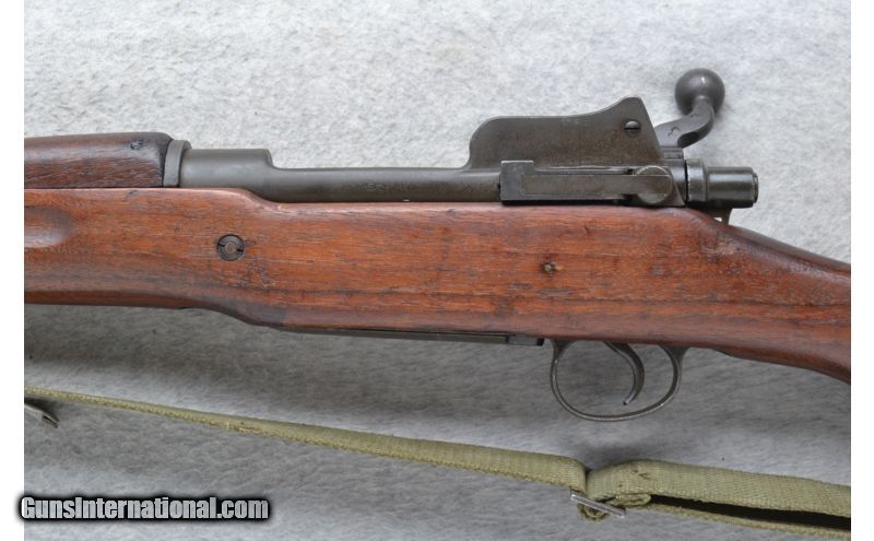 Description: This Eddy Stone U.S. Model 1917 is a right hand bolt action rifle in .30-06 Cal. It has a 26 inch barrel. A blade front sight with protective sides and a numbered flip up sliding adjustable rear sight. Thestock is a smooth hardwood semi-pistol grip butt and smooth grip two piece forearm with finger grooves and a barrel band. The trigger is grooved. It comes with a green cloth sling. DOM 1918. The M1917 Enfield was the main rifle used by the American Expeditionary Forces in Europe during WW I. SOLD Manufacturer: 1918 Caliber Info: .30-06 Cal. Chambers: Bolt Action 6 round magazine. Metal Condition: Very good with some minor handling marks. Wood Condition: Good. Has handling marks and light wear. Bore Condition: Good. Barrels: 26 inches. Triggers: Grooved. Stock: Smooth hardwood semi-pistol grip. Stock Dimensions: LOP 13 1/2 inches. Fore End: Smooth grip two piece hardwood with finger grooves and barrel band. Butt Pad: Smooth steel plate with a trap door storage compartment. Weight: 9 lbs. 10 oz. Sights: Blade front with protective sides. Numbered flip up sliding adjustable ladder rear. Extras: Green cloth sling. Item Location: Richfield, WI |