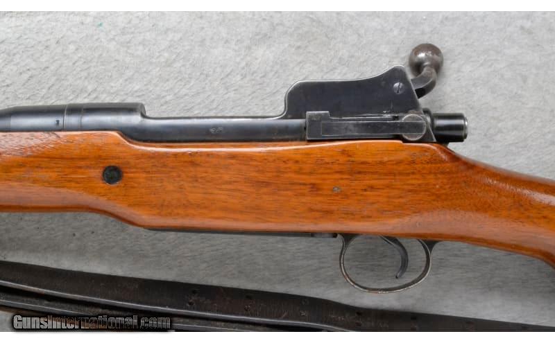 Description: This Eddy Stone U.S. Model of 1917 is a right hand bolt action rifle in .30-06 Sprg. Cal. It has a 26 inch barrel. A blade front sight with protective sides and a flip up two position adjustable ladder rear sight. The butt stock is a smooth grip hardwood. The forearm is a smooth grip hardwood with finger grooves. Serial Number 225870 (1918). Barrel is stamped E, arsenal bomb and 11-17 .30-06 Springfield SOLD Curio/Relic: Yes Chambers: Internal Magazine. Metal Condition: Very Good. Minor wear and minor freckling. Wood Condition: Very Good. Light handling marks. Has been refinished. Bore Condition: Very Good. Barrels: 26 inch. Stock Dimensions: LOP 12 3/4 inch. Fore End: Smooth grip hardwood with finger grooves. Butt Pad: KHT Sport Land rubber recoil pad. Weight: 9 lb. 2 oz. Sights: Blade front with protective sides. Flip up two position adjustable ladder rear. Item Location: Richfield, WI |