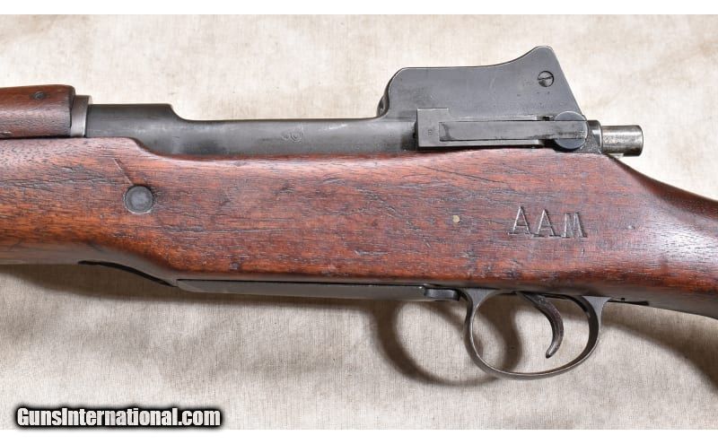 Description: Date of manufacture is Nov 1918. The barrel is marked JA and is, apparently, a replacement barrel. All the stock cartouches are sharp and clear. The stock is nice with some scratches but nothing really bad, especially for an issued military weapon which were usually pretty heavily used. .30-06 Springfield SOLD Curio/Relic: Yes Chambers: 5 rounds Metal Condition: Very good to excellent. Wood Condition: Very good. There are a number of scratches but nothing that would be severe. All cartouches are sharp and clear. Bore Condition: Shiny and bright. Barrels: 26 inches Triggers: Factory trigger. Stock Dimensions: LOP: 13-3/8 inches Fore End: Long walnut military stock with heat shield. Butt Pad: Steel plate with storage port. Weight: 9 lb - 12 oz Sights: Guarded post and peep. Item Location: Rogers |