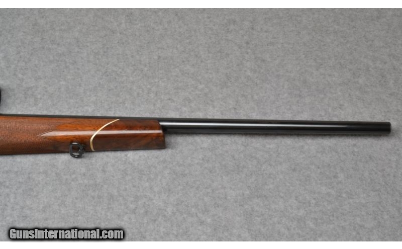 Description: Nicely done with diamond inlay and jewelled bolt SOLD Curio/Relic: Yes Manufacturer: S/N 782XXX Caliber Info: .30-06 Metal Condition: Very Good Wood Condition: Good with Handling Wear Bore Condition: Good Barrels: 22 Triggers: Non-Factory Stock: Checkered Walnut Stock Dimensions: 14" LOP Fore End: Checkered Walnut Butt Pad: Rubber Recoil Pad Weight: 8 3/4 lbs Sights: Topped with Weaver K4 60-B Item Location: Columbus, OH |