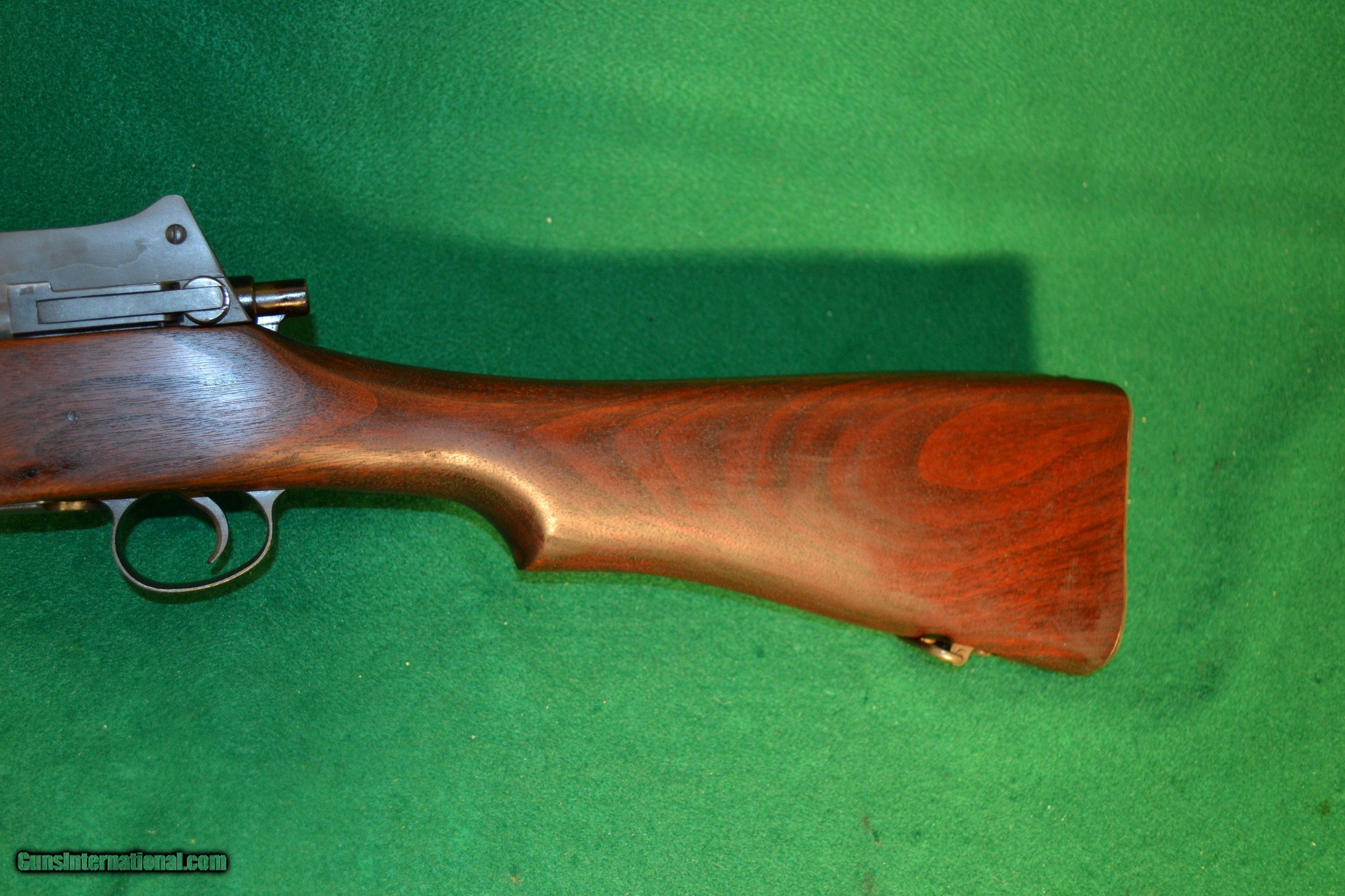 Description: Sale Pending!! This Eddystone M-1917 was mfg abt "2E - B-18". It has both excellent bluing and buttstock., Metal surfaces rate 98% with the Flaming Bomb marked " E - Bomb - 2-18" on the barrel tip. Muzzle measures "1 . The barrel measures 26 inches. The action is excellent. The Rail adjustable Rear sight is very nice.'. Markings - Bolt Has "R" and Flaming Bomb, Receiver has Flaming Bomb. Safety - "E". The Gunstock is excellent w/no cracks, dings or Gouges. Bayanet - Lug Bracket - "E". Both the Upper & Lower hanguards are both excellent. This Edystone M1917 is to me an NRA Very Good. SOLD Curio/Relic: Yes Manufacturer: Eddystone Model: M-1917 Serial Number: 317XXX Barrel Length: 26 inches Bore: Good to Avg distinct Rifling Condition: Excellent Metal Condition: Excellent Wood Condition: Excellent Bore Condition: Average Action: Bolt Stock: Walnut - Medium LOP: 13 1/2 Inches |