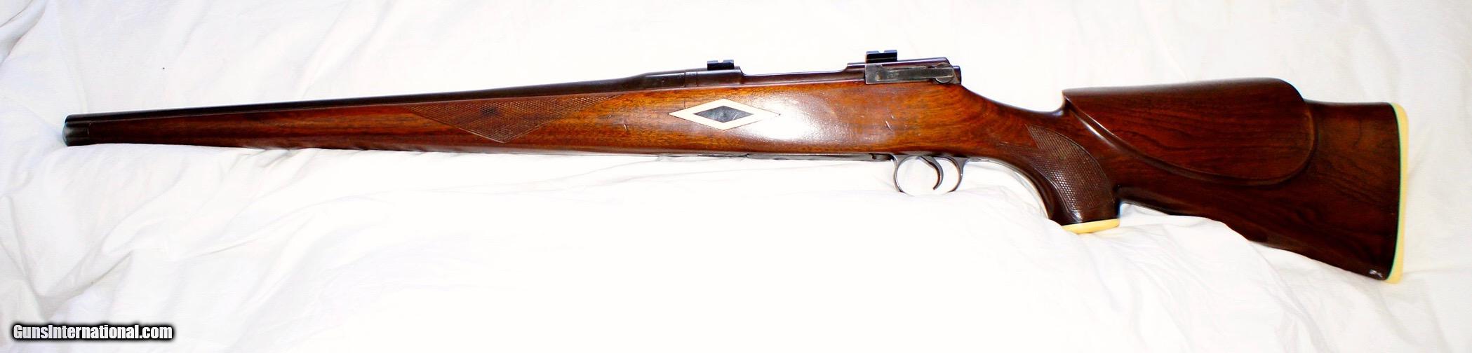 Description: Incredible Eddystone sporter with Mannlicher style stock. Custom made target stock with ivory inlays and cheek piece. Barrel to stock fit is the best I have seen. New bluing on the receiver which was also drilled and tapped for scope mounts. (Scope mounts included.) 20" Barrel still has very sharp rifling. Worked trigger. Very accurate with 30:06, especialy when using heavier 168-172 grains. I do not know if the pictures do this rifle justice, the worksmanship is of a quality rarely seen today. SOLD Curio/Relic: Yes Manufacturer: Eddystone Model: 1917 Serial Number: 1294716 Caliber Info: 30.06 |