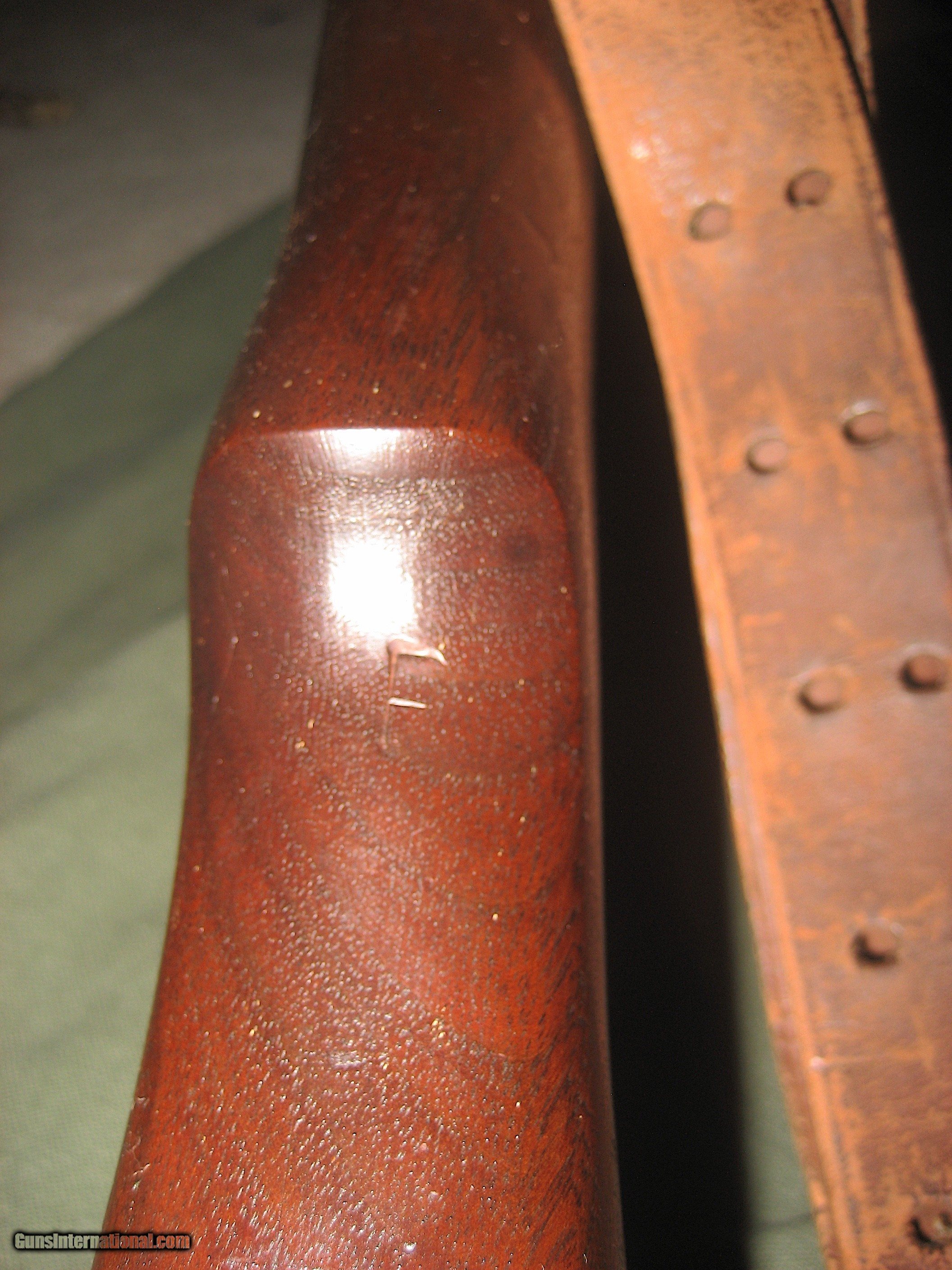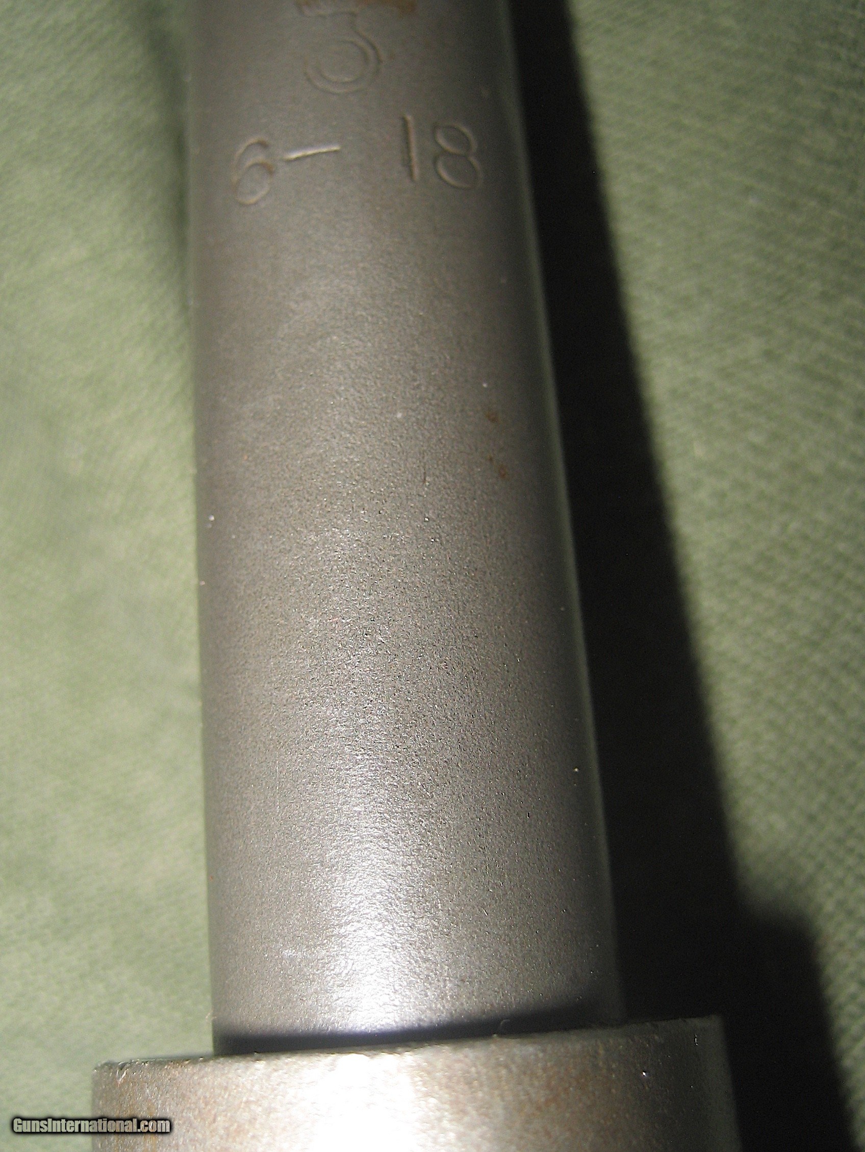 Description: Cal. .30 M1906 ball: 150 grain bullet with 2700 fps muzzle velocity Bolt action, 6-round internal box magazine, 5 rd. stripper clip loading. 9 lbs., 46.3 in., 26 in. barrel Rear sight: folding leaf with protective wings Battle sight sliding aperture on raised leaf graduated from 900-1600 yards in 50 yard increments, No windage adjustment Flaming bomb marking on right side of reciever and on barrel near front sight. Barrel marked 6-18 Front sight: blade with protective ears Barrel: five groove rifling , left hand twist, 1 in 10 rate of twist P inspection mark on pistol grip. Has grease in some areas remaining (Cosmoline?) Worn sling has illegable markings Rifle condition very good with most of original finish remaining. Barrel is shiny with very good riflings and slight darkening at muzzle. SOLD Curio/Relic: Yes Rifle Caliber: .30-06 Springfield Manufacturer: Eddystone Model: 1917 Serial Number: 696278 Manufacture Date: 1918 |