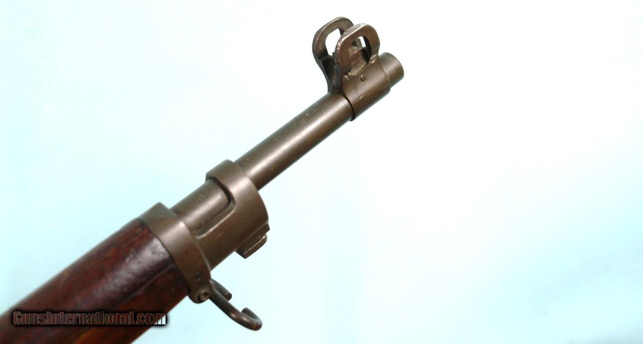 Description: EXCELLENT WWI WW1 EDDYSTONE U.S. MODEL 1917 OR P17 P-17 .30-06 CAL. RIFLE. Serial number in the early 5 digit 10xxx range with barrel date stamped “E/ORDNANCE BOMB/7-18”. Excellent plus oor better with 995 original Parkerizing and all the finish on the matching stock and forend. Rectangular stock cartouche “RIA/FK”. “IW/EAGLE HEAD/M/ORDNANCE PROOF” stamp behind trigger guard. Perfect tight working order and excellent plus bright bore. Nice looking original Model 1917 reasonably priced. $1450. SOLD Curio/Relic: Yes Rifle Caliber: .30-06 Springfield |
