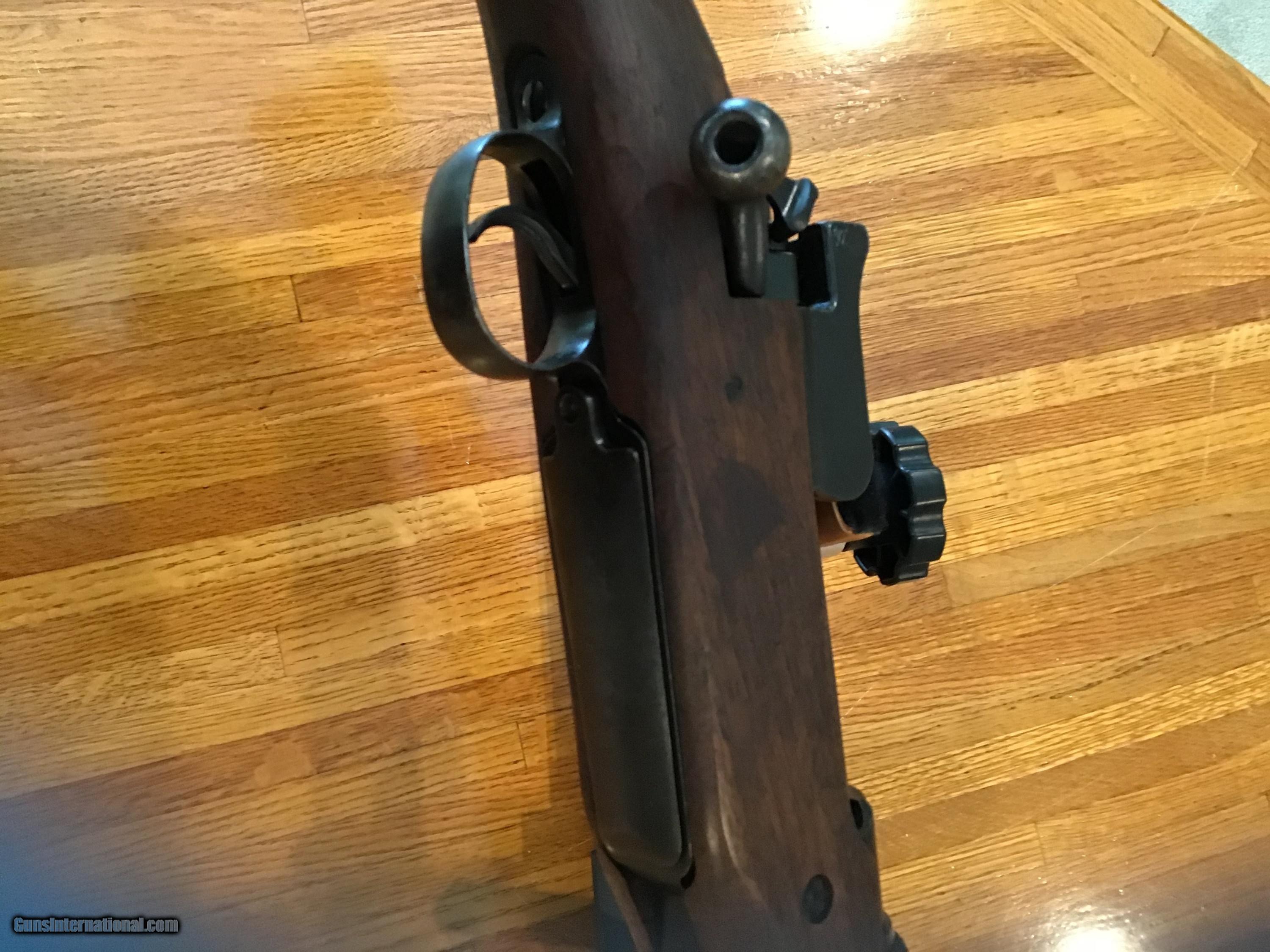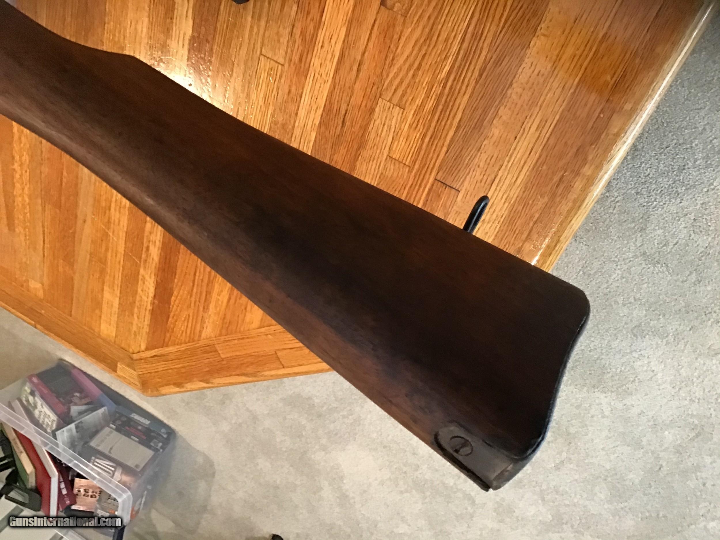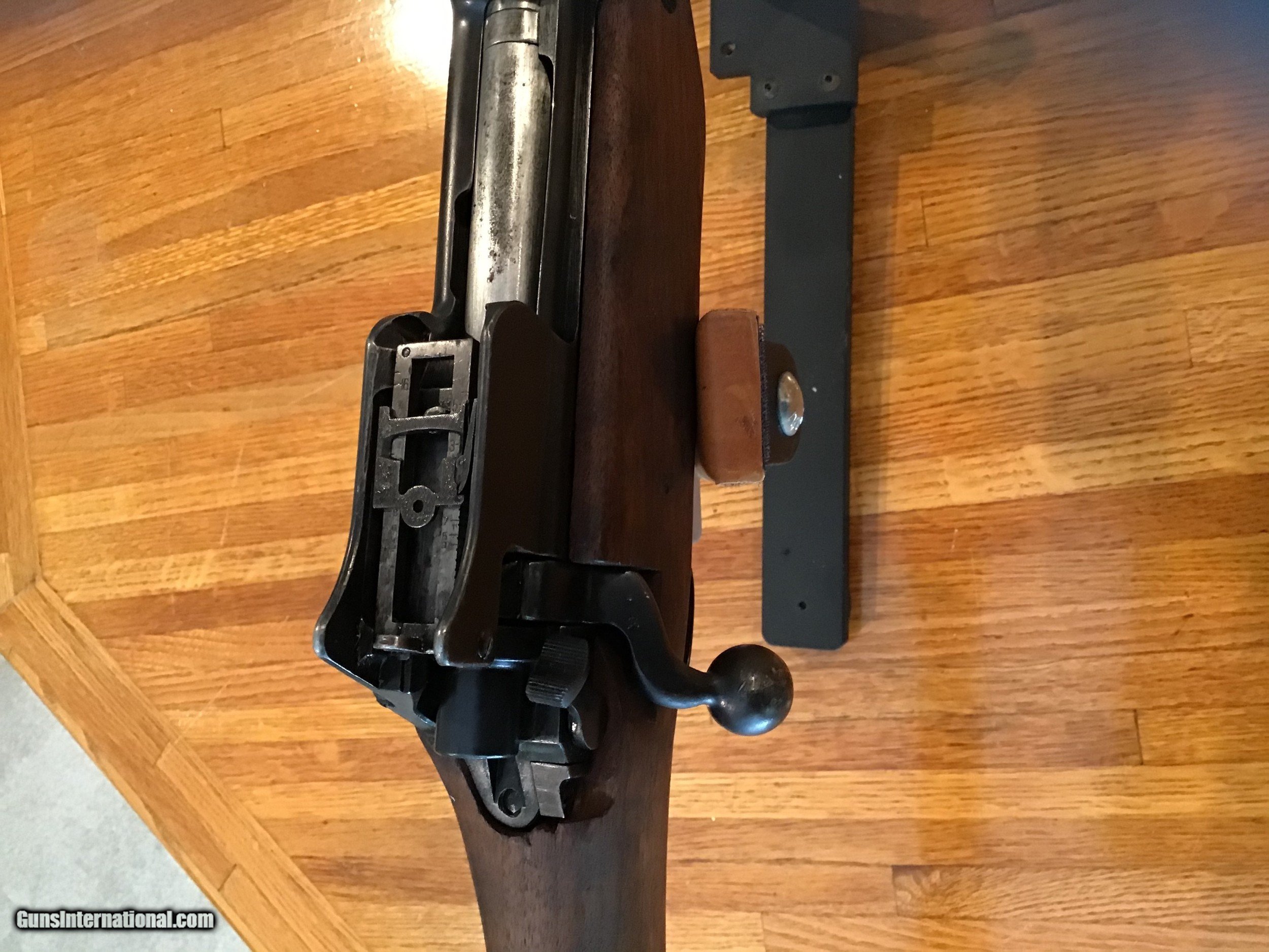 Description: This rifle is a excellent example of a Remington Model P-14 in .303 British. The original blue metal finish remains intact on the receiver and barrel with minor wear. The receiver is stamped RE inside an oval. The bore appears bright with defined rifling. The wood stock is solid without cracks and bruising. The barrel is stamped "P-14 USA behind the front sight. The serial number of this rifle indicates a 1918 build date. SOLD |