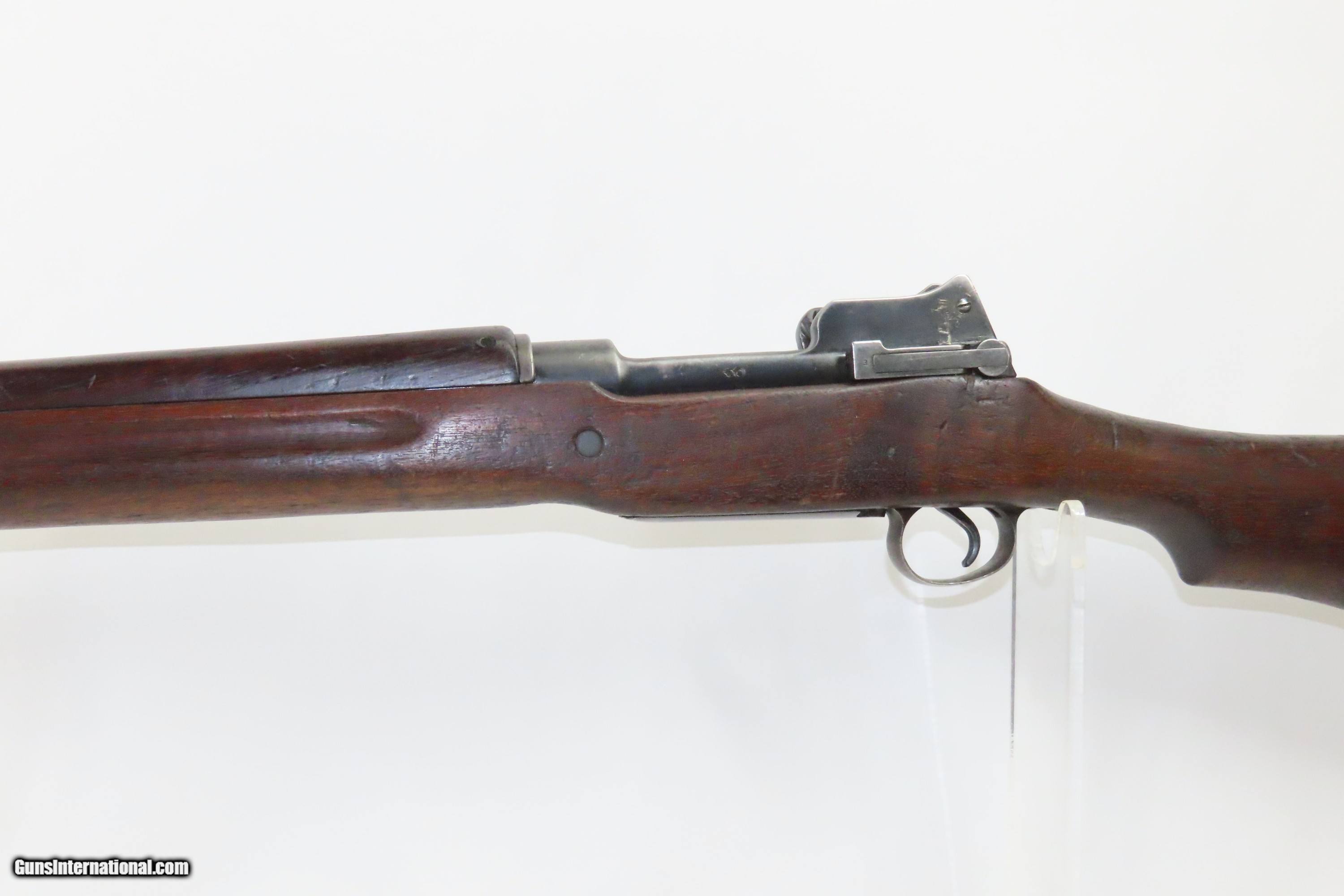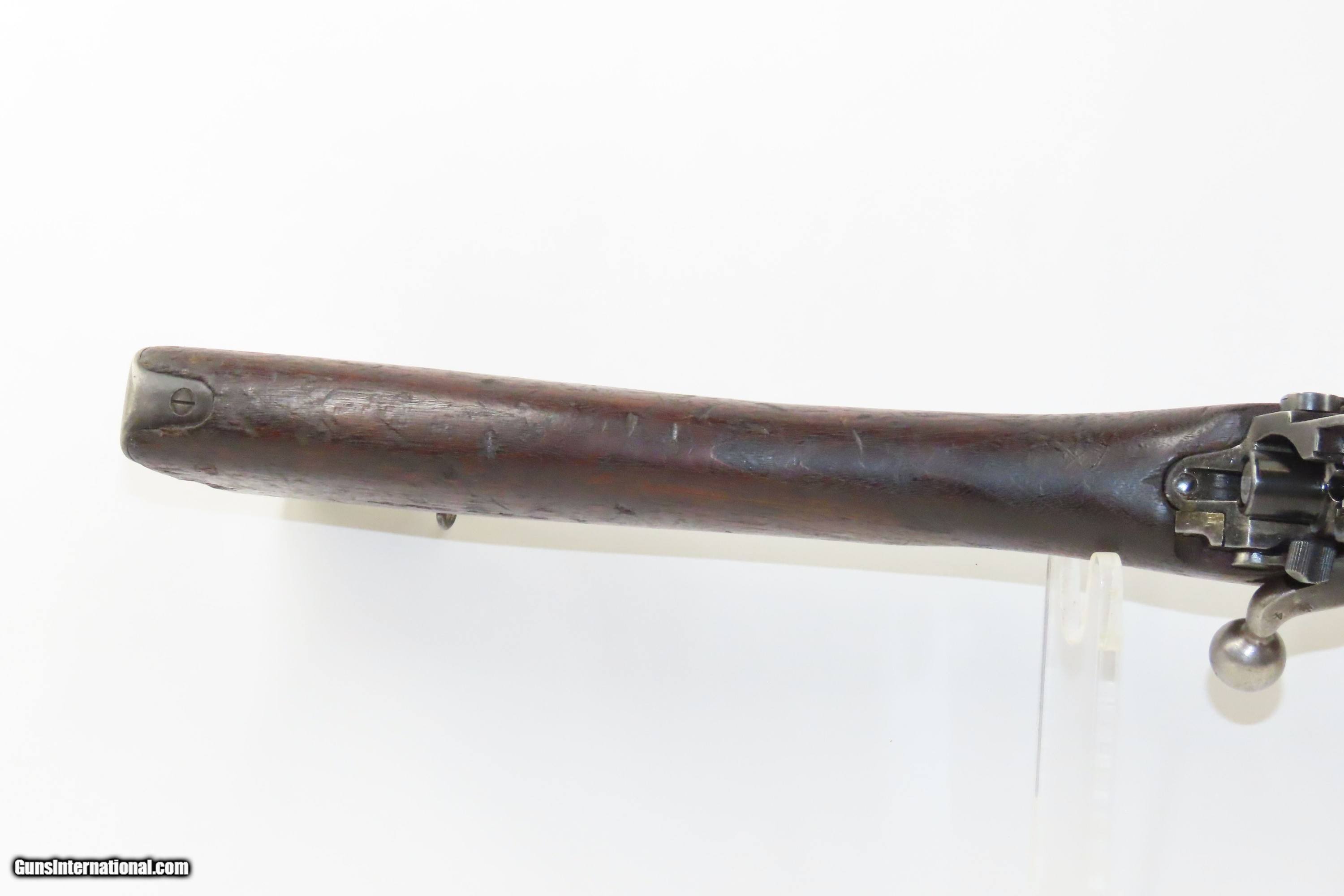 Description: ROYAL CANADIAN ENGINEERS WWI EDDYSTONE Model 1917 .30-06 C&R “RCE 3 FC” June 1918 Dated Infantry Rifle that Went to Canada! Here we present a C&R U.S. Eddystone Model 1917 Bolt Action Rifle, made in 1918 in Eddystone, Pennsylvania. This one is stamped “RCE 3 FC/218” on the right side of the butt stock for the Royal Canadian Engineers, we believe 3rd Field Company, with an inventory number of 218. There is also a “C” with a Broad Arrow within above this. Further, we believe that these were transferred out of Canadian hands in the post-war era and into the Danish military. The numbers on the bolt and the replacement front sight are evidence of this. The Eddystone Model 1917 was an adaptation of Britain’s Enfield Pattern 1914 that both Remington, Eddystone (a subsidiary of Remington), and Winchester were producing during the Great War. This was prior to direct American intervention, which occurred in April of 1917, in the worldwide conflict. When the U.S. entered the war, they too needed all the small arms production they could muster for the war effort. Rather than retooling these factories to produce the American Model 1903, the U.S. Ordnance Department simply elected to adapt the Enfield Pattern 1914 to American specifications, primarily chambering the rifle for .30-06 Springfield, creating the U.S. Model 1917. These went to arm the American Expeditionary Force in Europe during WWI. The Eddystone Arsenal was a Baldwin Locomotive Works subsidiary located in Eddystone, Pennsylvania that produced military hardware for the Allies of World War I. As orders from combatants exceeded the production capacity of Baldwin's Philadelphia factory, this manufacturing facility was built in Eddystone, Pennsylvania. When the first world war ended, this manufacturing complex was used for locomotive manufacturing as Baldwin’s Eddystone Plant. The overall condition is very good. The action is excellent. The bore is bright with sharp rifling. The stock shows use and has a painted section at the front; solid throughout. Import marked on the right side of the barrel behind the rear sight. This firearm is classified as a Curio & Relic. Barrel is 26 inches. Caliber: .30-06 Springfield Overall condition as seen in photos. Very Fast. Very Safe. FREE SHIPPING. Will need to be sent to your local FFL or C&R licensee. This firearm is classified as a Curio & Relic. Guaranteed AUTHENTIC & Includes CERTIFICATE OF AUTHENTICITY. ancestryguns $1700 #233435 SOLD Antique: Yes |