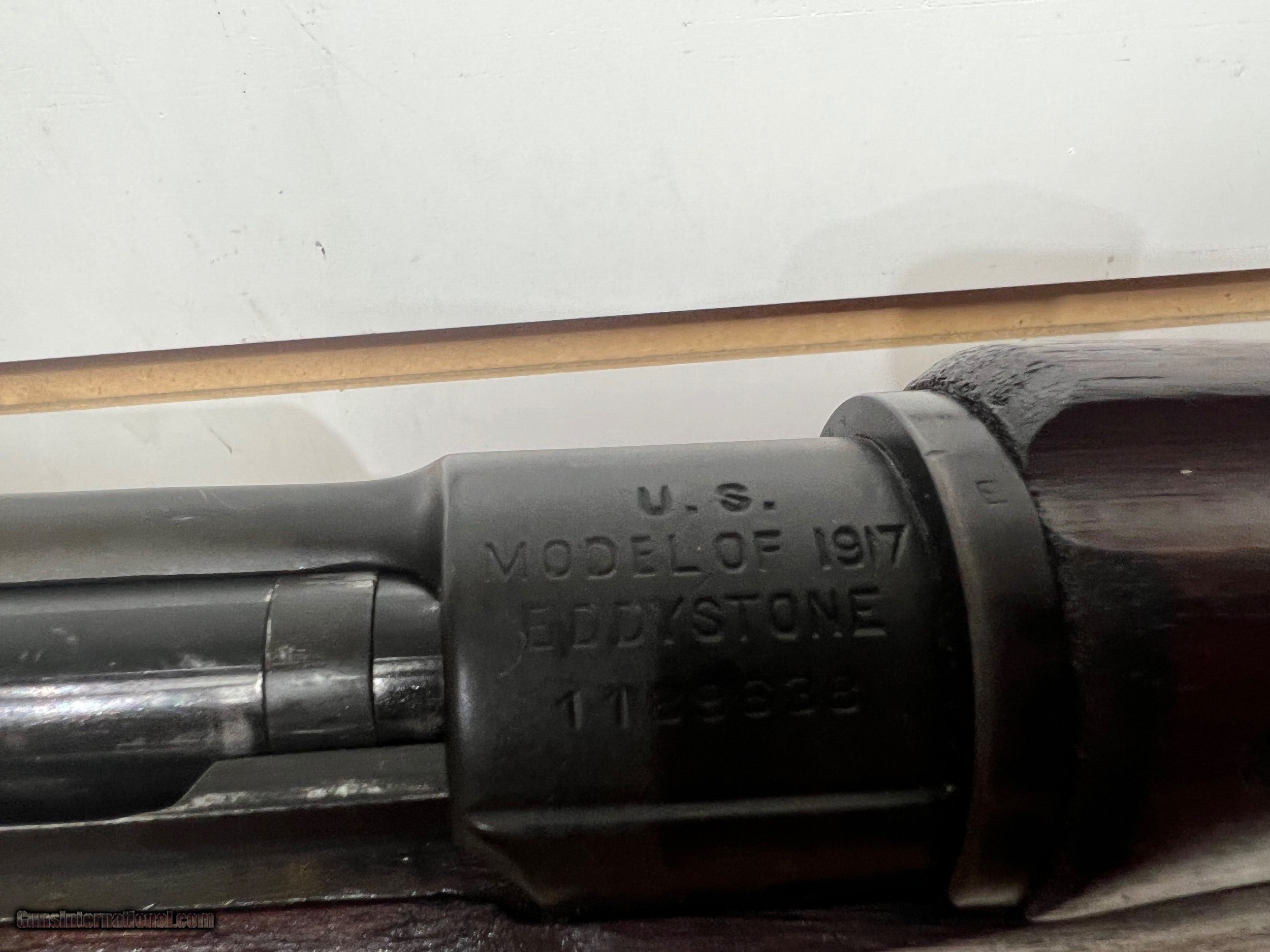 Description: Used US Army Model 1917 Eddystone 30-06 26" barrel leather strap good working condition Buyer pays shipping Millers Gun Center Located in New Castle, Delaware "Home of TAX-Free shopping" No Credit Card Fees SOLD Serial Number: 1189638 |