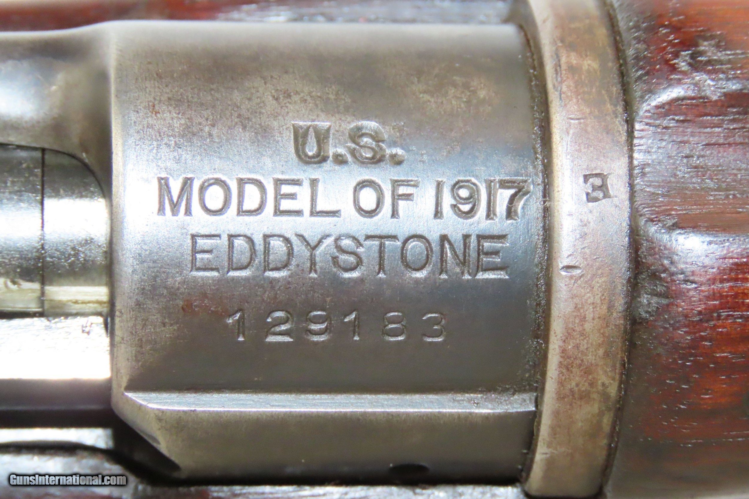 Description: WORLD WAR I Era U.S. EDDYSTONE Model 1917 Bolt Action C&R MILITARY Rifle 1917 FLAMING BOMB Marked WWI .30-06 American Rifle Here we present a C&R U.S. Eddystone Model 1917 Bolt Action Rifle, made in October of 1917 in Eddystone, Pennsylvania. The Eddystone Model 1917 was an adaptation of Britain’s Enfield Pattern 1914 that both Remington, Eddystone (a subsidiary of Remington), and Winchester were producing during the Great War. When the U.S. entered the war, they too needed all the small arms production they could muster for the war effort. Rather than retooling these factories to produce the American Model 1903, the U.S. Ordnance Department simply elected to adapt the Enfield Pattern 1914 to American specifications, primarily chambering the rifle for .30-06 Springfield, creating the U.S. Model 1917. These went to arm the American Expeditionary Force in Europe during WWI. The Eddystone Arsenal was a Baldwin Locomotive Works subsidiary located in Eddystone, Pennsylvania that produced military hardware for the Allies of World War I. As orders from combatants exceeded the production capacity of Baldwin's Philadelphia factory, this manufacturing facility was built in Eddystone, Pennsylvania. When the first world war ended, this manufacturing complex was used for locomotive manufacturing as Baldwin’s Eddystone Plant. The top of the barrel is marked “U.S./MODEL OF 1917/EDDYSTONE”. The flaming bomb appears on the bolt handle and the left side of the receiver. Other parts feature acceptance marks. The barrel is dated “10-17”. The stamped markings on the right side of the stock offers us a clue to at least part of its career. British broad arrow marked. The “COTC OAS 128” is from the Canadian Officers Training Corps, probably listing which school, and a rack number for the rifle. Eddystone made a total of 1,181,908 rifles. This was more than the production of Remington (545,541 rifles) and Winchester (465,980 rifles) combined. The overall condition is very good. Original finish. The action is excellent. The bore is in good shape with strong rifling. The walnut stock is solid. The stacking swivel is absent. A great piece! This firearm is classified as a Curio & Relic. Barrel is 26 inches. Caliber: .30-06 Springfield Overall condition as seen in photos. Very Fast. Very Safe. FREE SHIPPING. Will need to be sent to your local FFL or C&R licensee. This firearm is classified as a Curio & Relic. Guaranteed AUTHENTIC & Includes CERTIFICATE OF AUTHENTICITY. ancestryguns $2400 #220486 SOLD Curio/Relic: Yes |