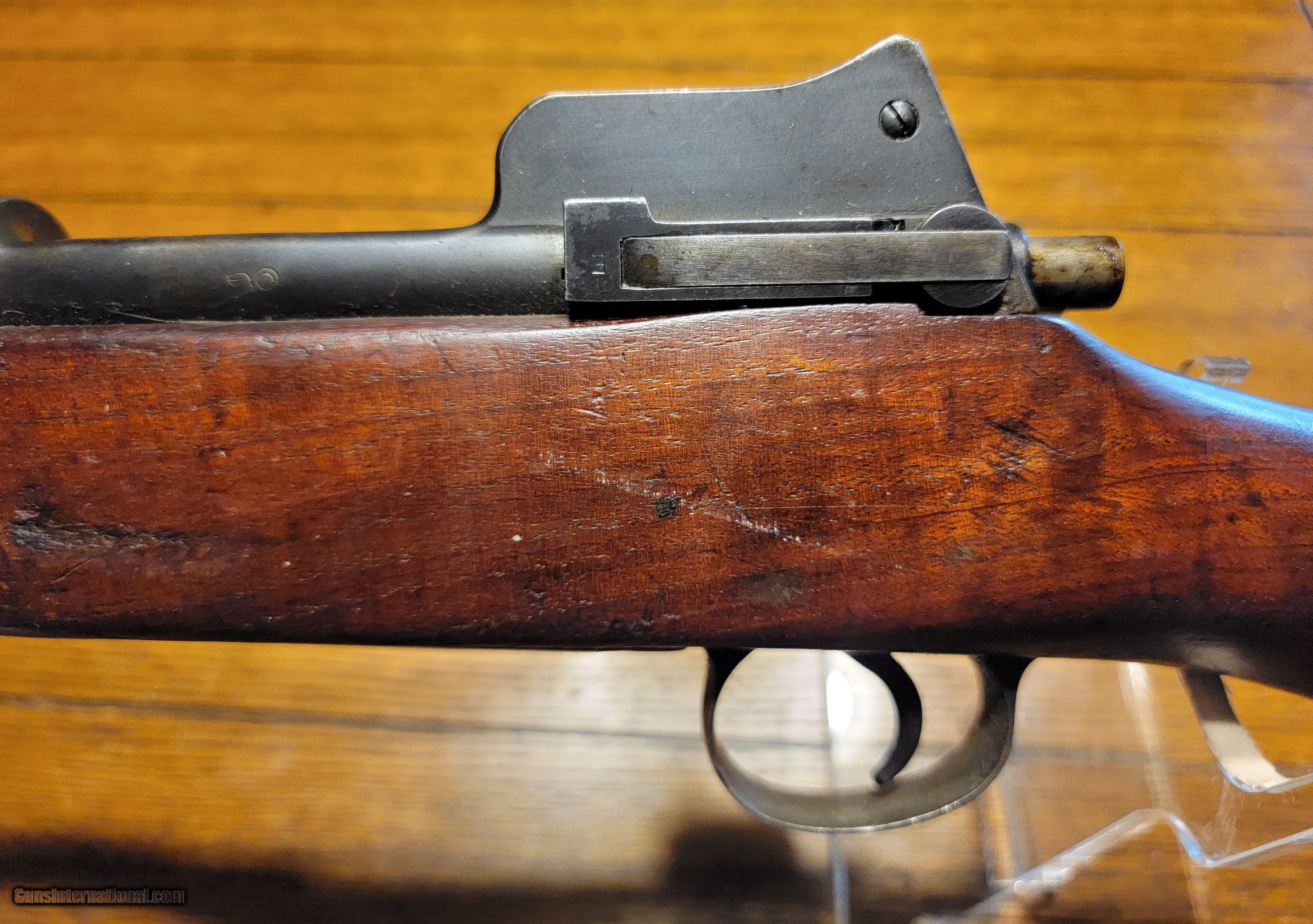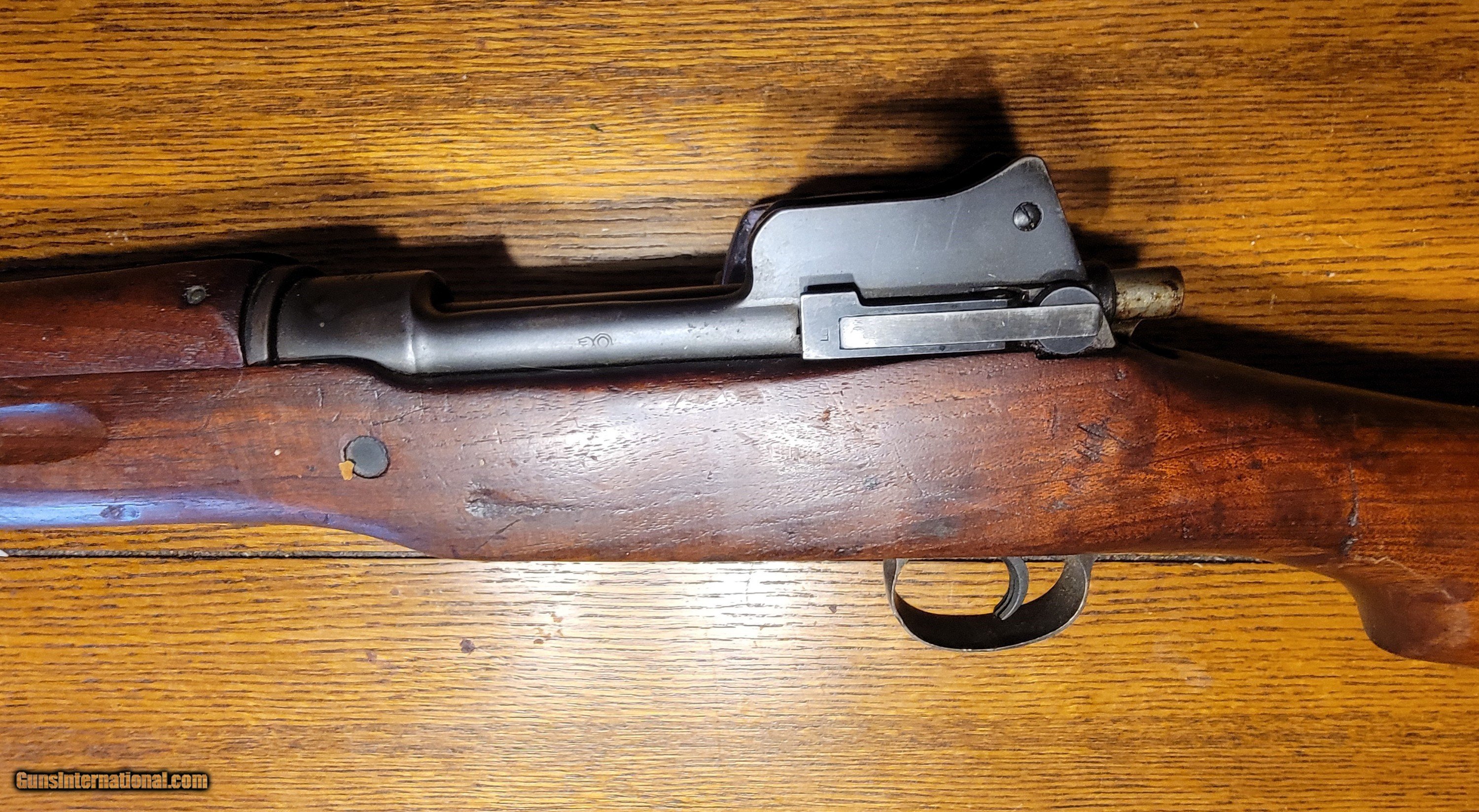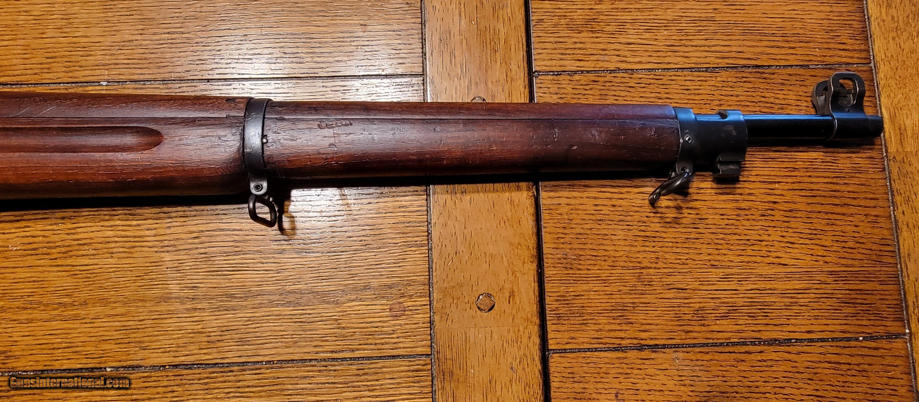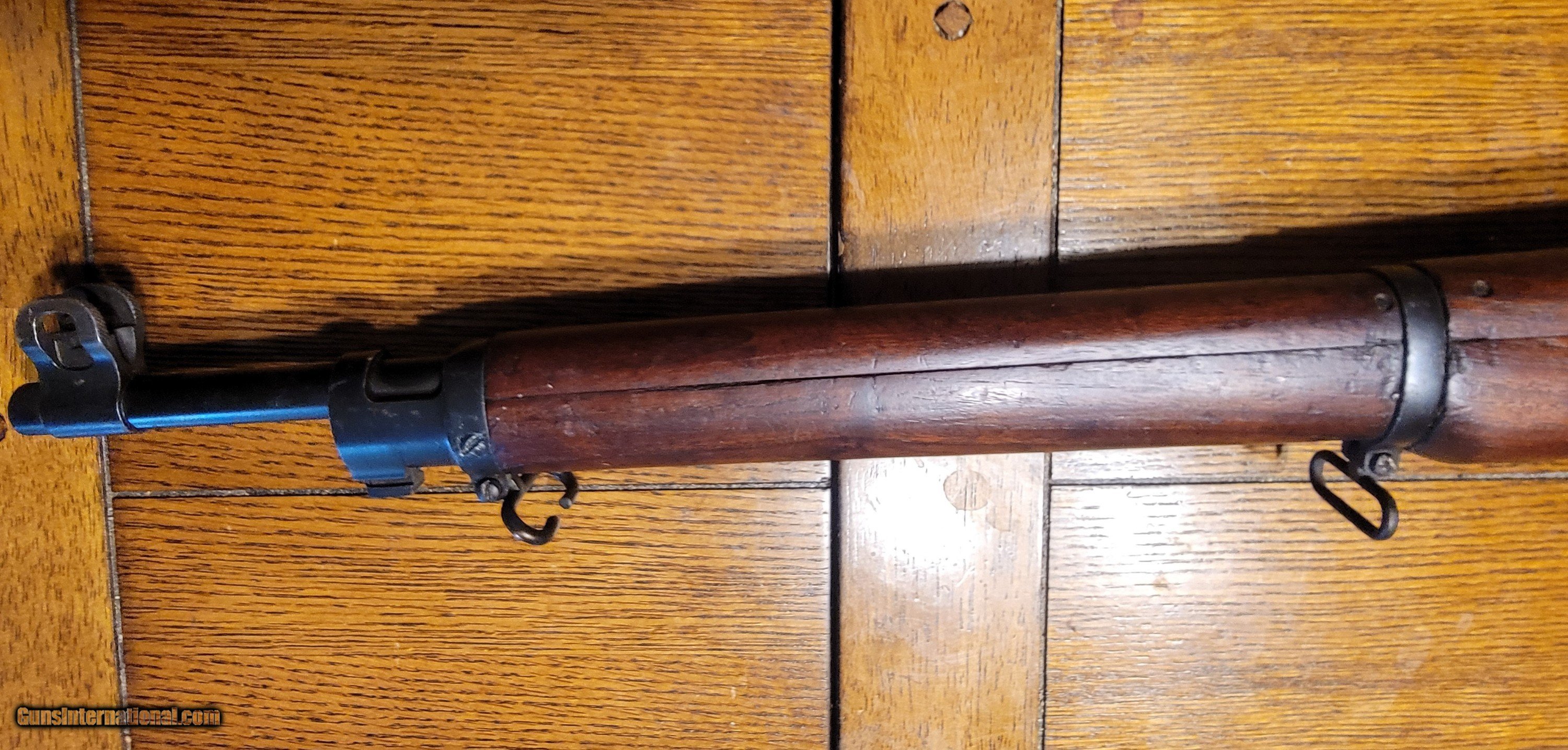 Description: SOLD This is a nice example of a US WWI Battle Rifle. According to historical records, Sgt. Alvin York used a 1917 Enfield, but not this one! I purchased this rifle in 1974. I shot it shortly after the purchase and found it very accurate. I cleaned it; it has been in my gun room for 50 years. The rifle is in the original issue configuration with no known alterations. The barrel is dated Flaming Bomb1-18. The walnut stock is very nice and has a great grain pattern. Retains 90-95%+ original blued finish, and all metal is in good condition, with no pitting or corrosion. Mechanically, it is perfect. The bore is good with distinct rifling. The stock is marked E for Eddystone, and the rifle has multiple eagle head inspector marks from Eddystone assembly. I would consider a full or partial trade for a Colt or S&W 1917 ACP revolver, Early Colt New Service .4 Colt, Enfield or Webley WWII revolvers, Remington 51 7.65, German-manufactured Walther PP or PPK 7.65, Colt 1903 7.65, WWII Walther P38 or other interesting historical pieces in comparable condition. SOLD Curio/Relic: Yes Rifle Caliber: .30-06 Springfield Manufacturer: US GOVERNMENT EDYSTONE Model: US MODEL1917 Serial Number: 30756X Condition: Very Good -Excellent Metal Condition: Very Good-Excellent Wood Condition: Very-Good-Excellent Bore Condition: Clean Sharp Rifling Action: Bolt Action Triggers: Grooved Stock: Walnut Semi pistol grip Butt Pad: Metal LOP: 13 Finish: Bluing 90-95%+ Weight: 9.2 lbs Sights: Rear aperture/ladder Manufacture Date: 1918 |