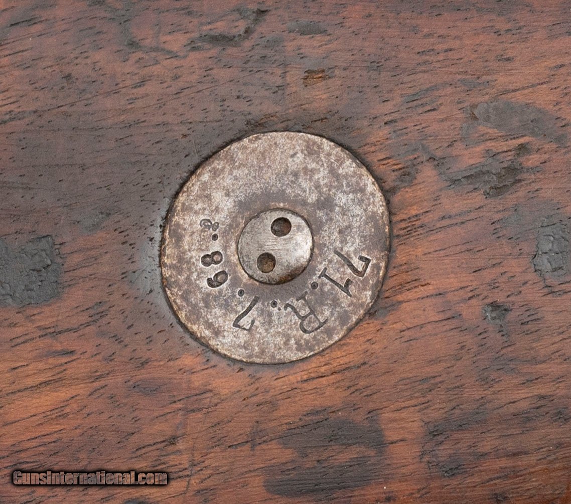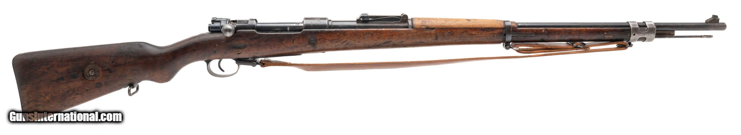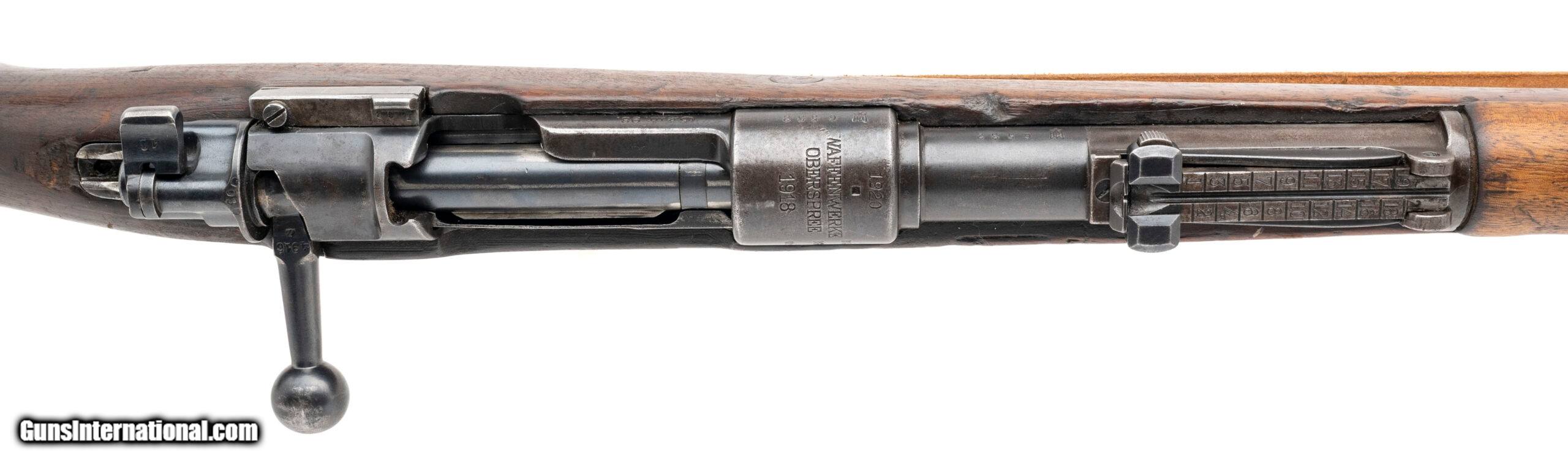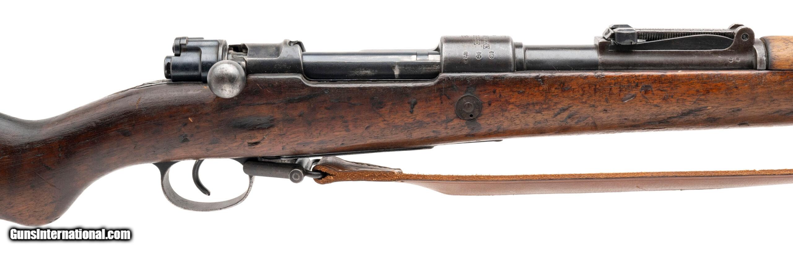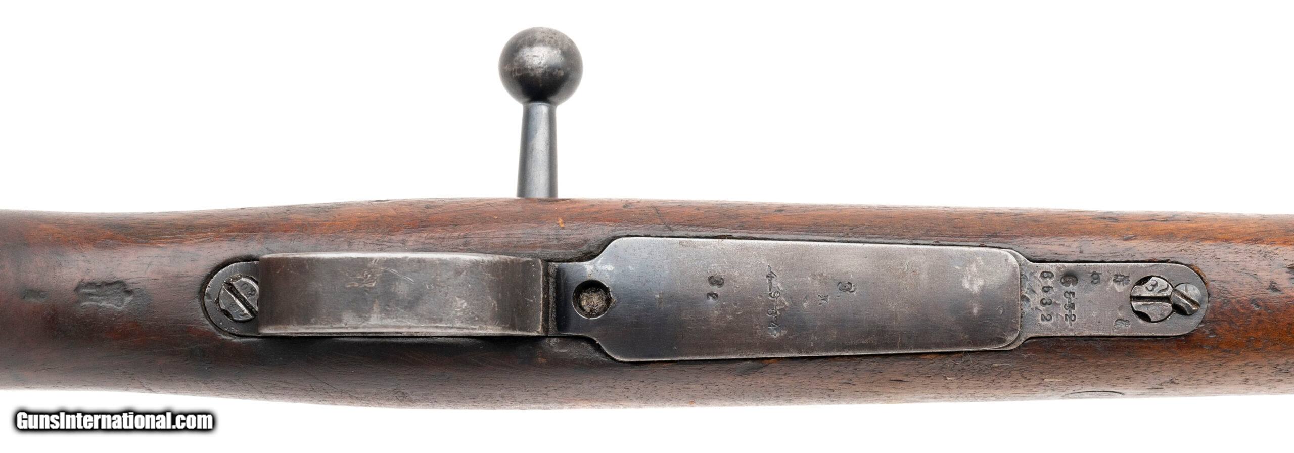 Description: "Serial No. 6532, manufactured in 1918, 8mm Mauser, 29½" round barrel. Bolt is non-matching. Metal has developed an even dull grey patina throughout. Receiver is double-dated “1920" and “1918," the later marking signifying reissue for German military use following the First World War. Stock exhibits honest handling wear from wartime and postwar service, and retains its unit disc marked “71.R.7.68." Rear sight has been arsenal upgraded. Action is smooth and functions correctly. A well-preserved and historically significant example of a Weimar-period reissued Gewehr 98, representing Germany’s transitional armament following the Treaty of Versailles. Curio/Relic: Yes Price: $1,595.00 Contact Seller |