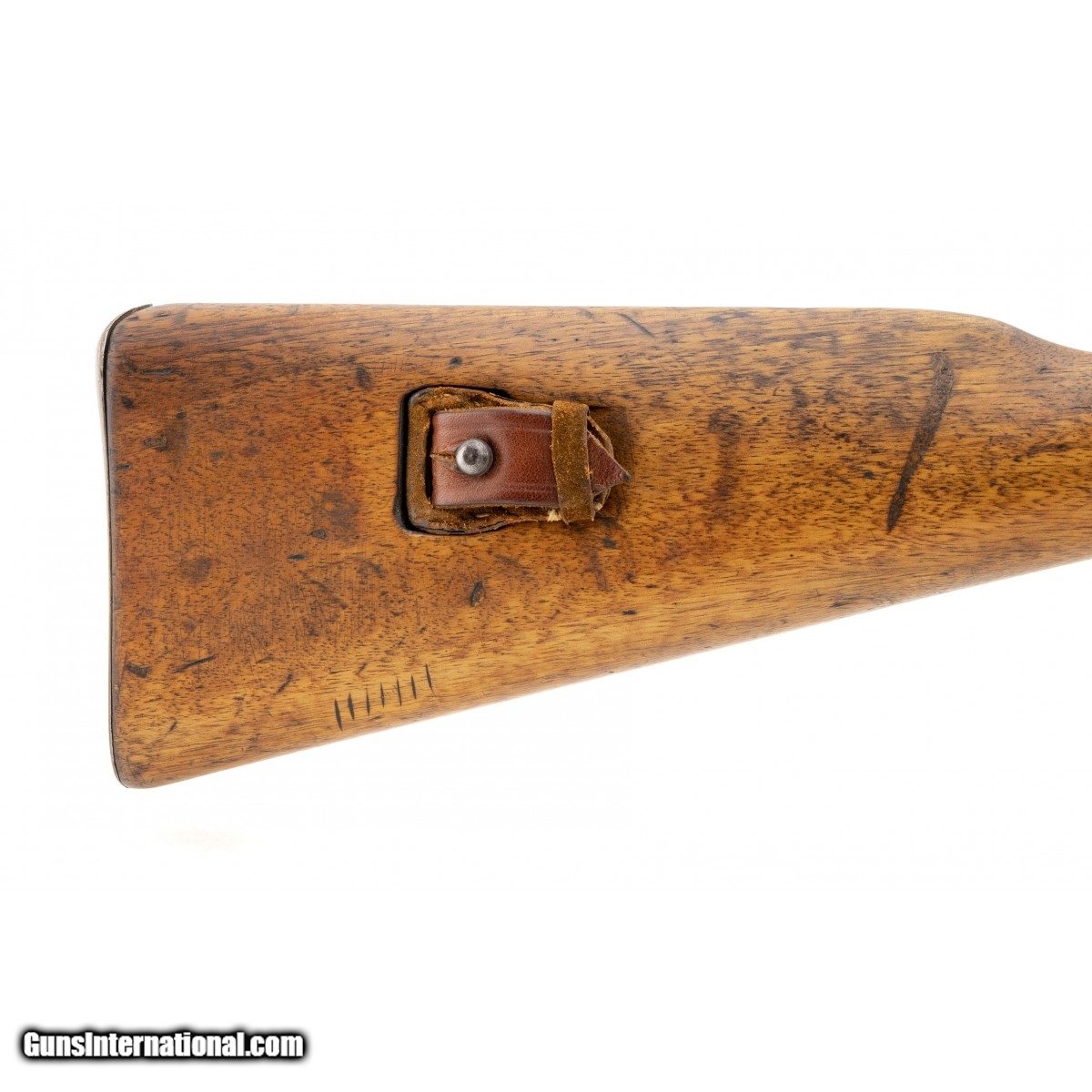 Description: " Serial No. 3357, made in 1896 by Erfurt, 8x57mm,18"" barrel. Receiver has been upgraded for the spitzer round noted by the ""S"". Bore is bright with some minor frosting visible in the grooves. Serial numbers are matching, stock has been lightly sanded down at some point. A peep sight has been added to the bolts rear. The front band has a regimental stamp ""U.12.2.74"", these carbines saw action up until the end of the War! SOLD Curio/Relic: Yes |