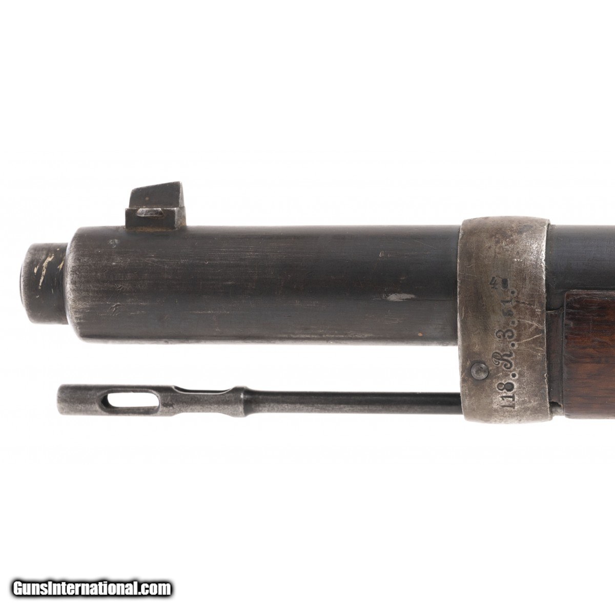 Serial No. 5240D, made in 1891 by Erfurt, 8x57mm, 29"" length barrel. Overall good condition with Turkish sight added, this gun was probably sent to the Turks in WWI. Stock shows dings and scratches. Bore shows strong rifling with minor areas of frosting in the grooves. Regimental markings are stamped on the barrel band