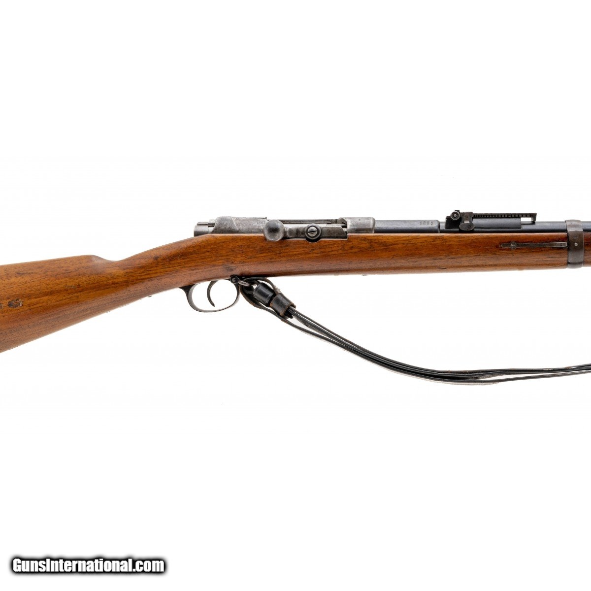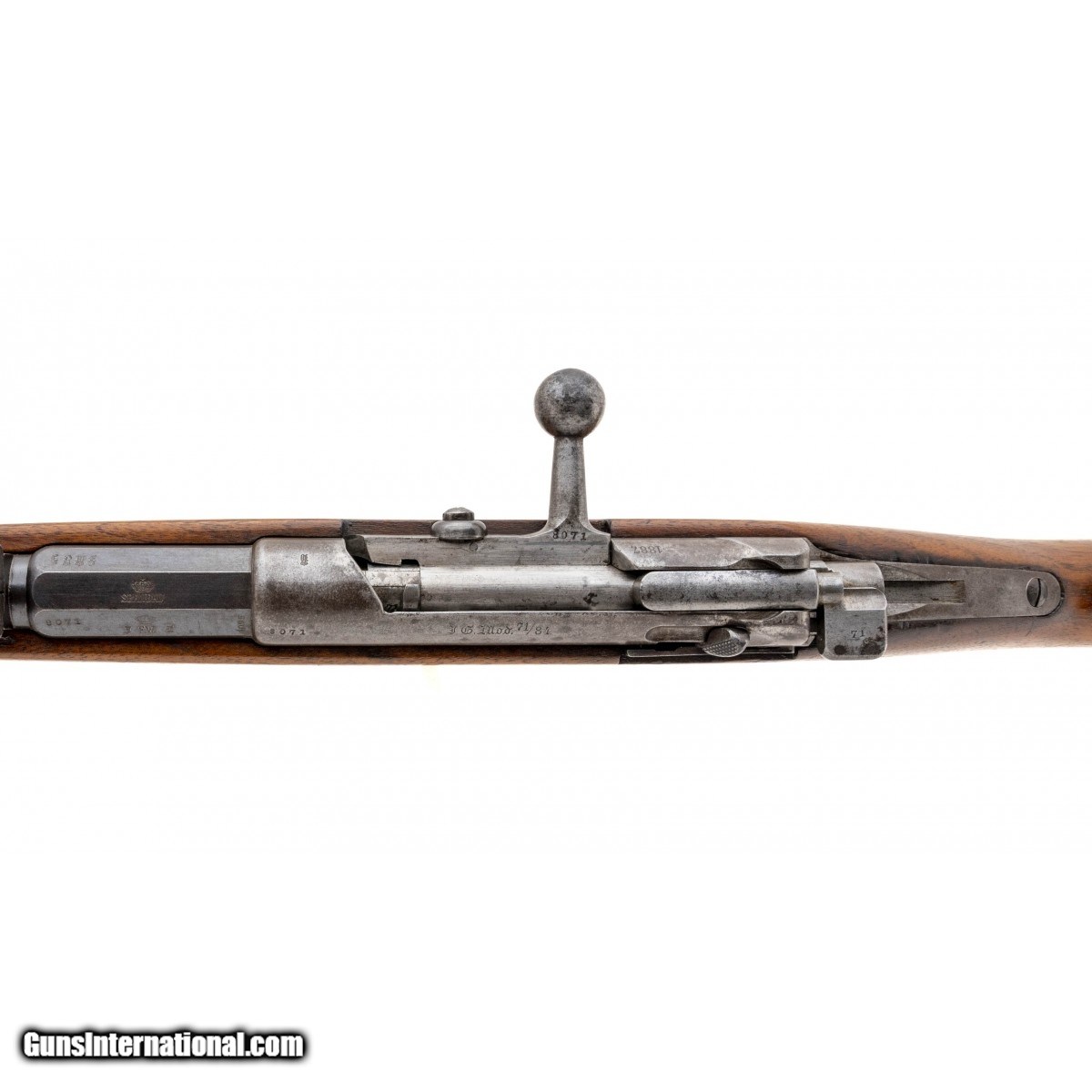 Description: " Serial No. 8071, made in 1887 by Spandau, 11mm, 32"" proofed barrel. Serial numbers are matching, bore is good with some areas frosting visible in the grooves. Barrel has approximately 90% blue starting to turn. Receiver is a light grey patina with scattered surface oxidation noted. Stock is in very good plus condition with imperial stamps visible on right side. Overall a very good looking example SOLD Antique: Yes |